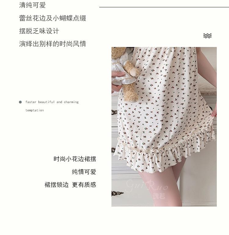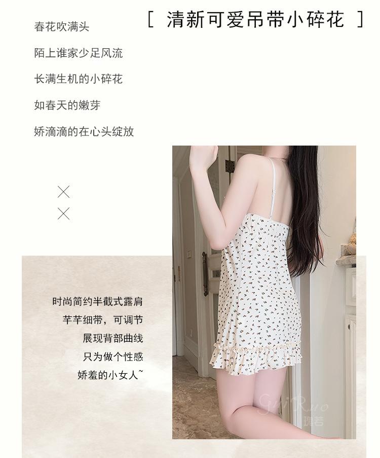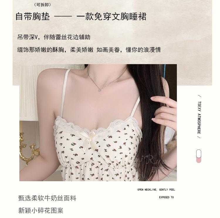 Pijama de Seda de Hielo Marca Dz Guiruo Deseo Puro Dulce Floral Pasión Tentación Más Almohadilla para el Busto Set Camisón con Tirantes 5294