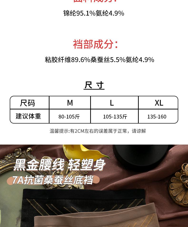Bragas Moldeadoras de Cintura Alta Control de Abdomen para Mujer Negro Dorado Entrepierna Antibacteriana 7A de Seda de Morera Moldeadoras Levanta Glúteos Cintura de Avispa
