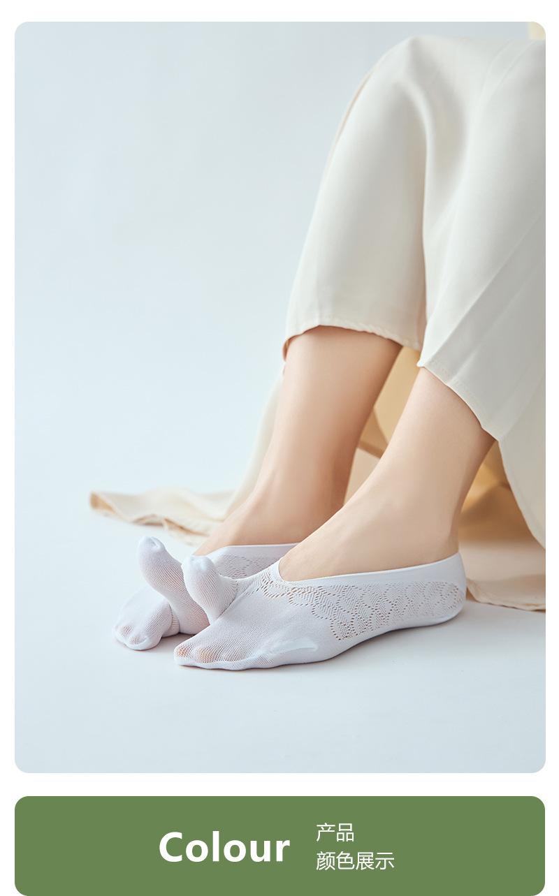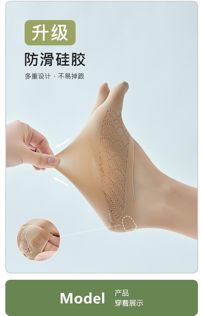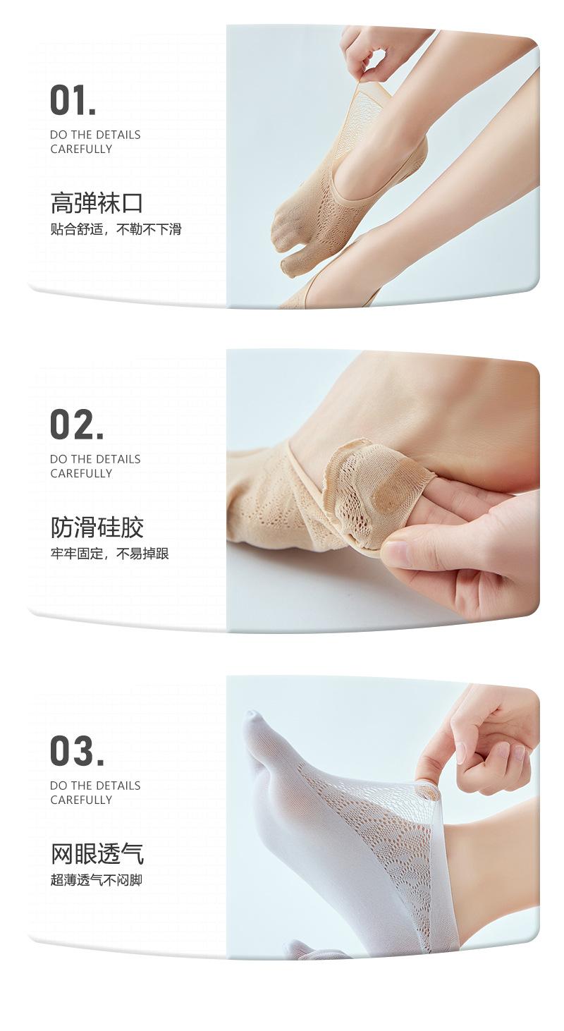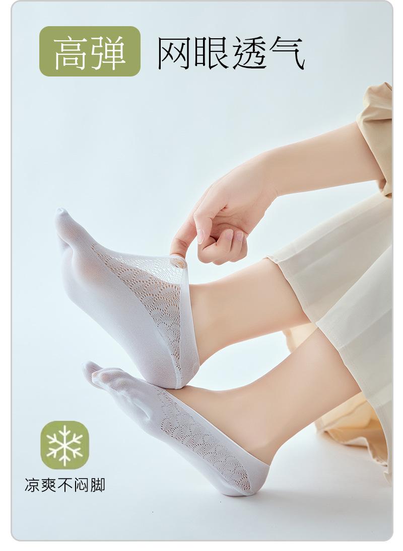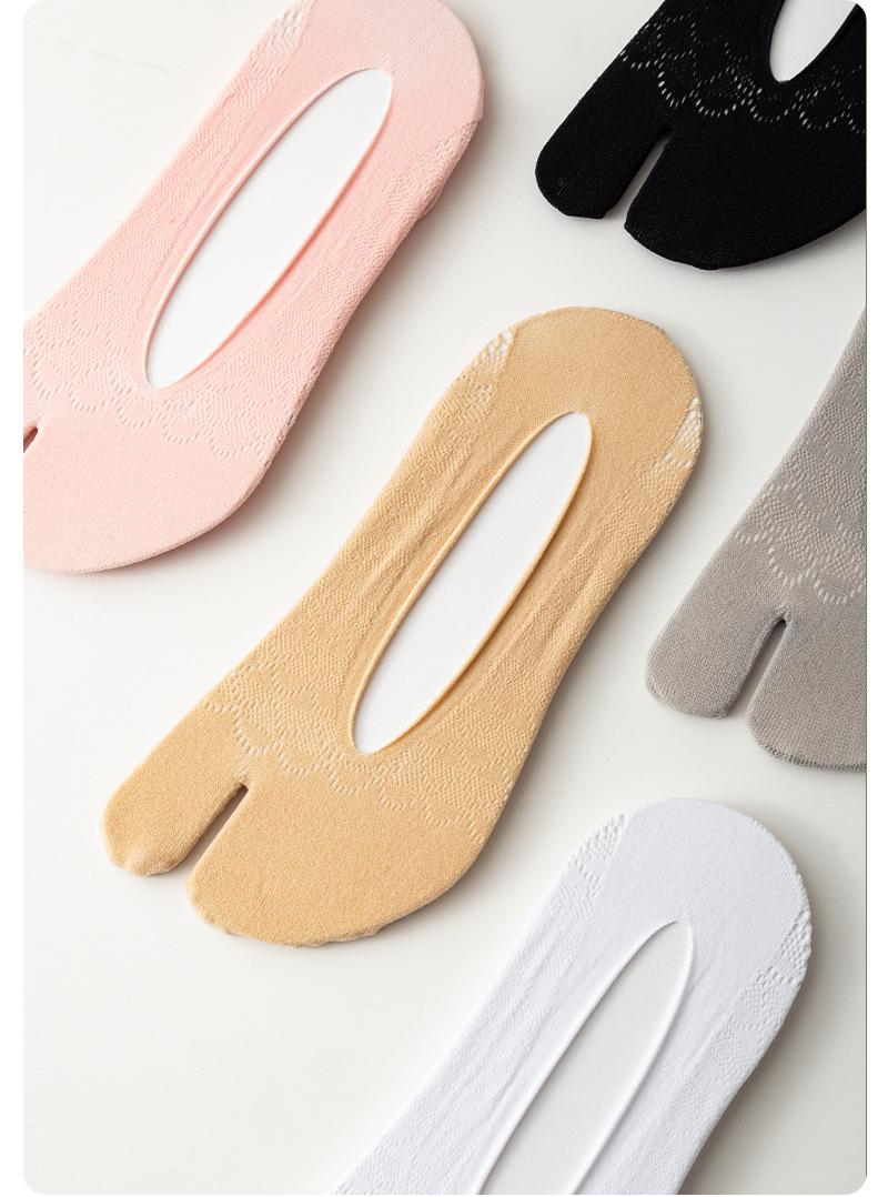 Medias finas de seda dulce de verano para mujer, de malla de silicona, absorción del sudor, transpirables, calcetines de dedo gordo, invisibles sin espalda, de nailon, calcetines de barco de dos dedos