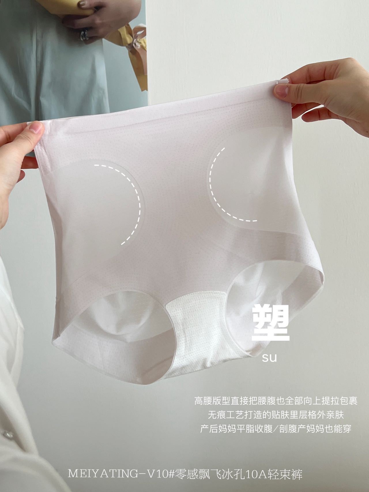 Pantalones ligeros 10A Zero-Sense Floating Ice Hole, sin costuras, cómodos y transpirables con entrepierna de seda de morera, control de abdomen, levantamiento de glúteos, ropa interior de cintura alta para mujer