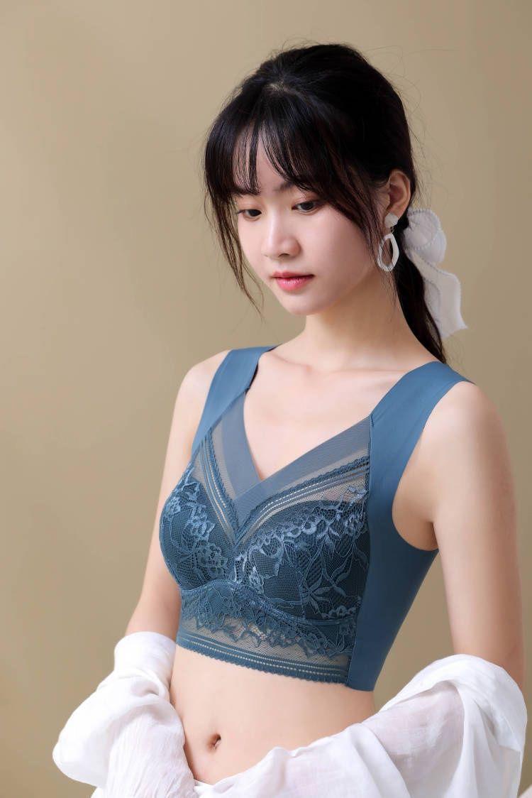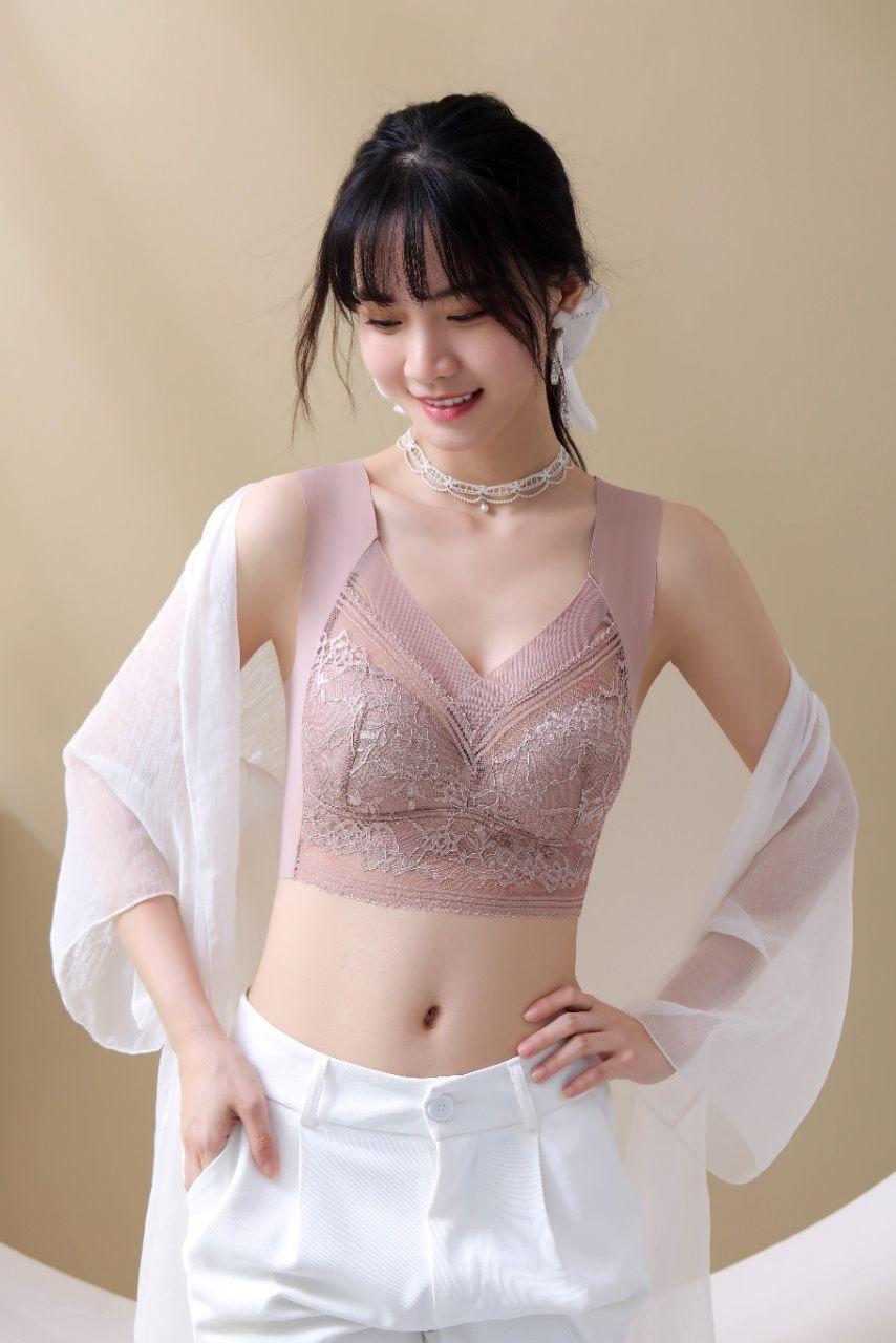 Sujetador Deportivo Popular de Encaje de Seda de Hielo para Mujer Copa Completa Sin Aros Espalda Hermosa Reductor de Busto Sin Costuras Push-Up para Mujer