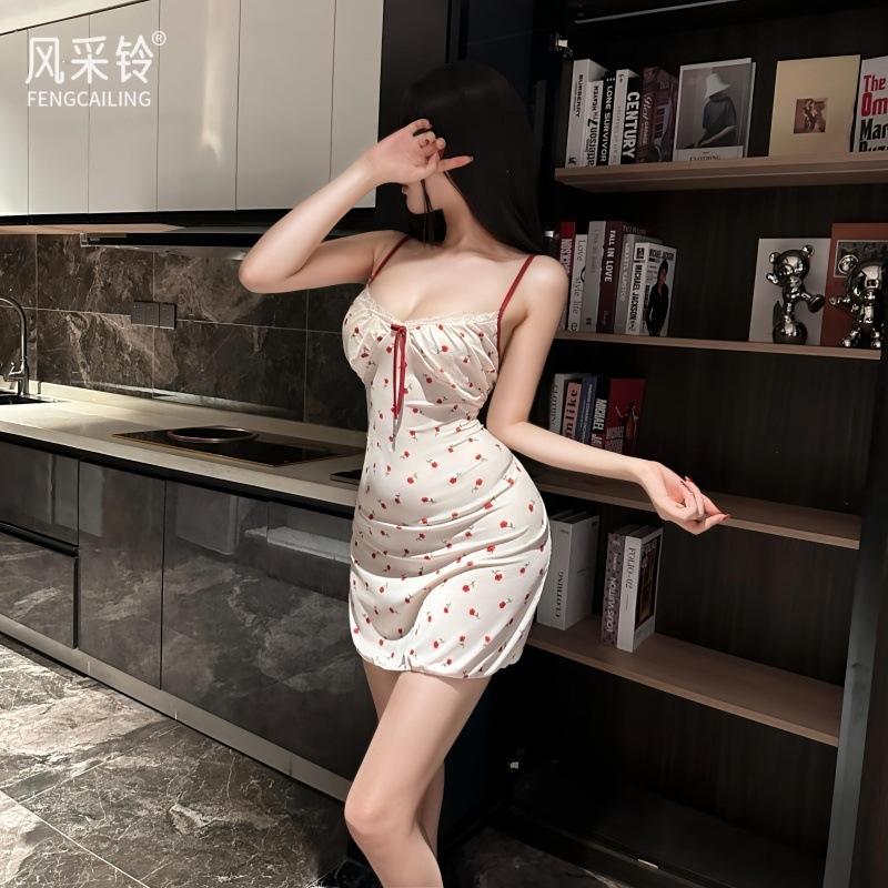 Pijama Sexy de Tirantes de Encaje Floral, Dulce y Fresco, Camisón Estampado con Almohadillas para el Busto, Ropa para el Hogar, Ropa Interior Sexy para Mujer