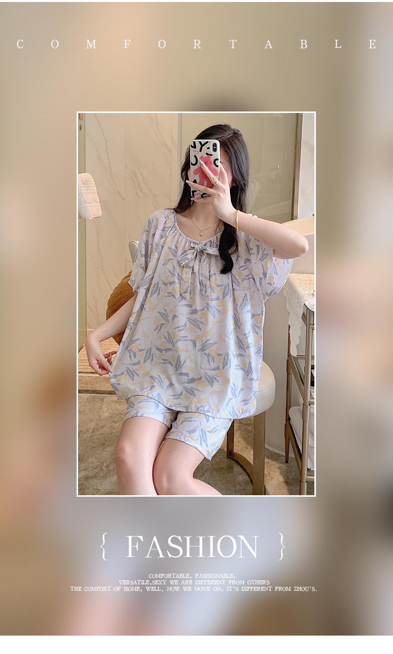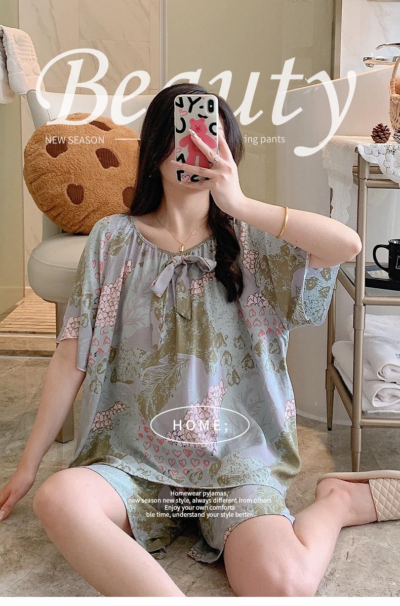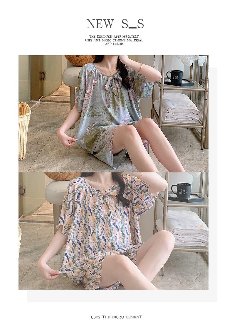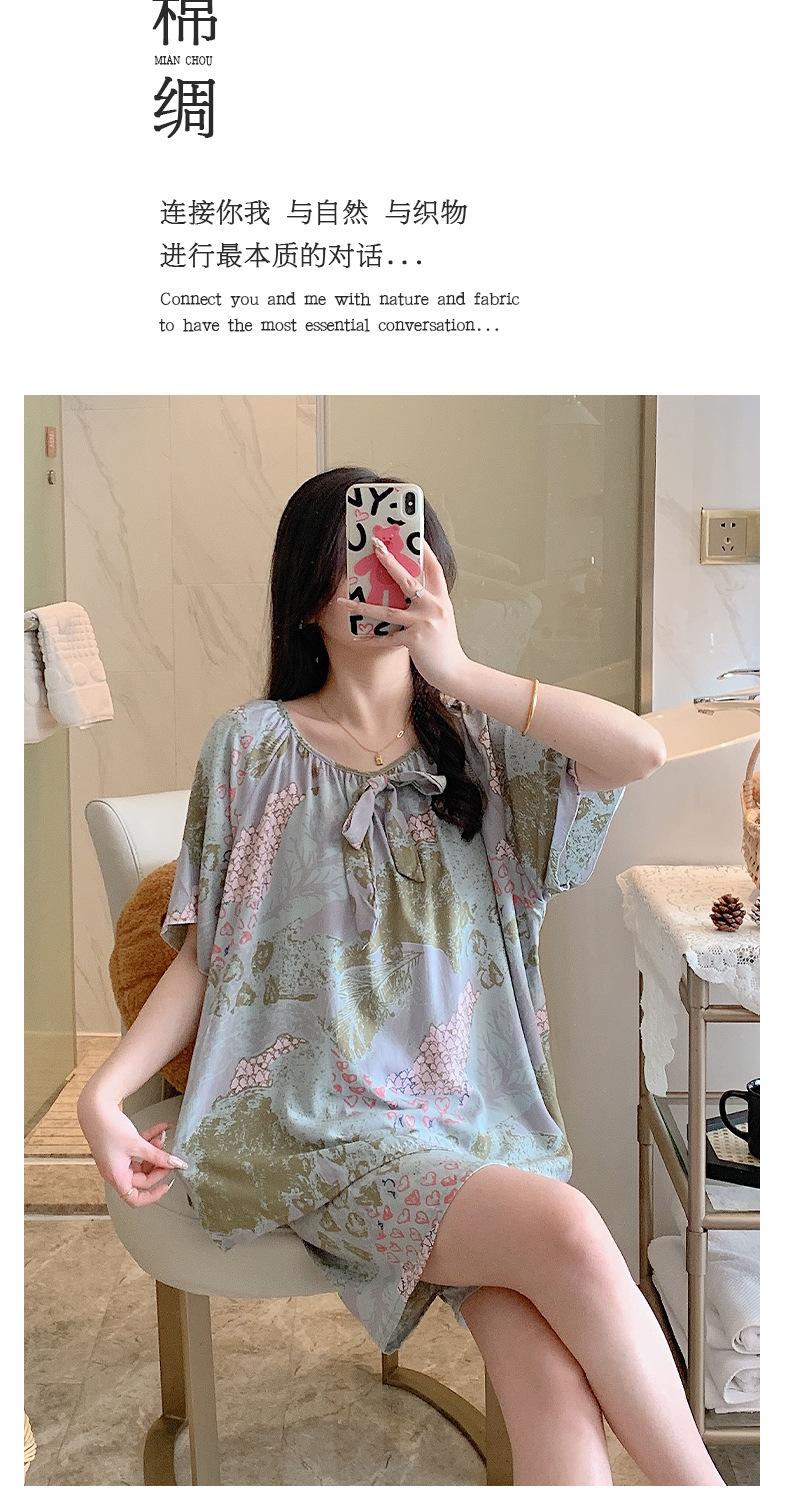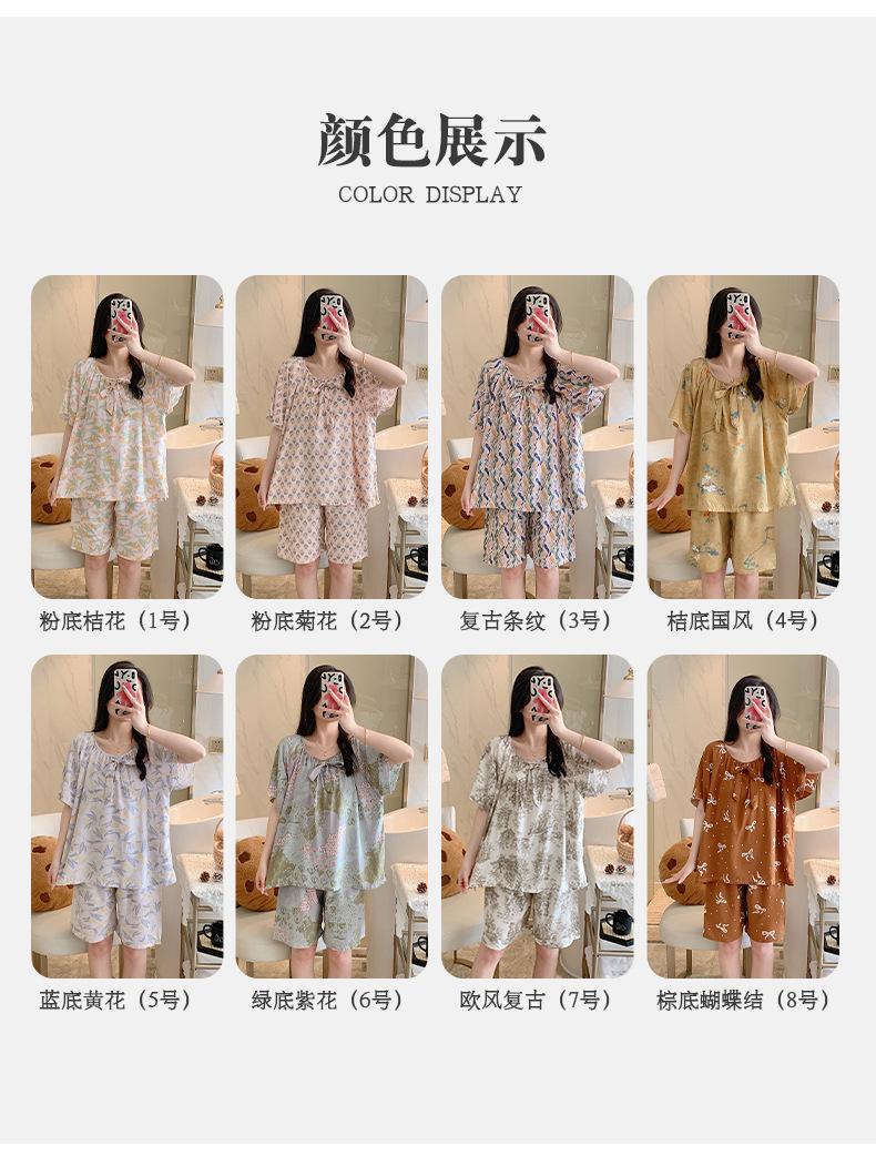 Pijama de Verano de Manga Corta para Mujer, Pijama Fino de Algodón Seda, Ropa para el Hogar Holgada de Talla Grande, Traje de Algodón Seda para Mujer para Usar Afuera