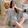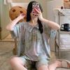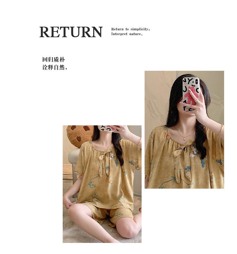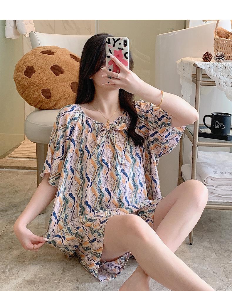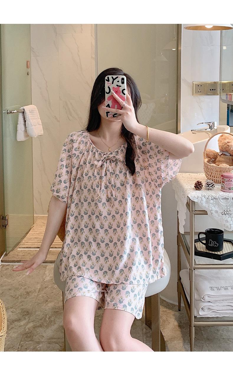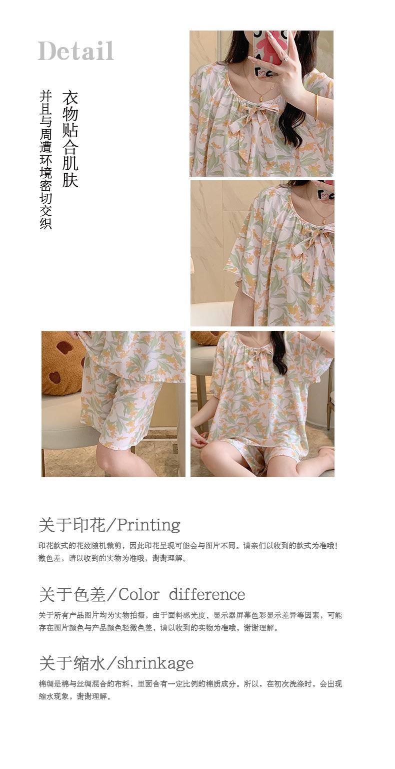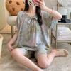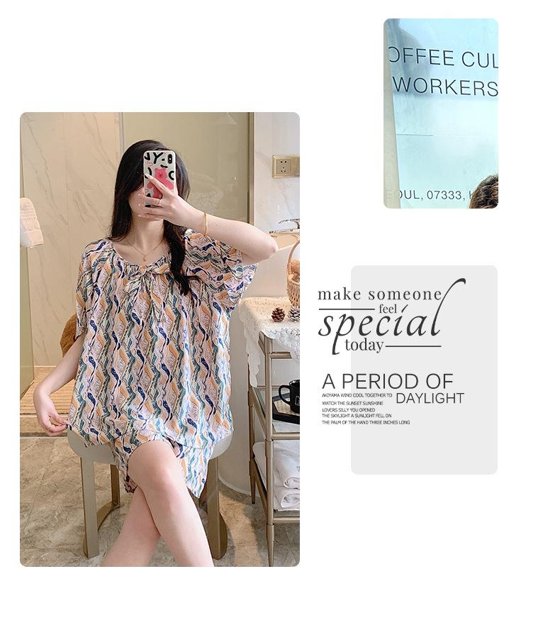 Pijama de Verano de Manga Corta para Mujer, Pijama Fino de Algodón Seda, Ropa para el Hogar Holgada de Talla Grande, Traje de Algodón Seda para Mujer para Usar Afuera