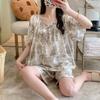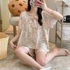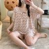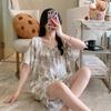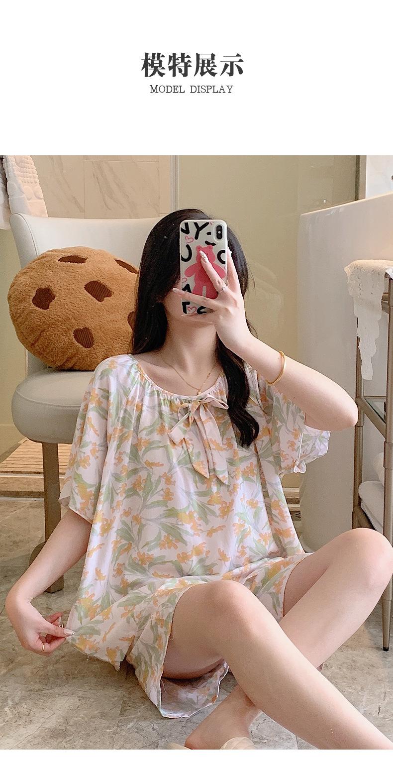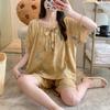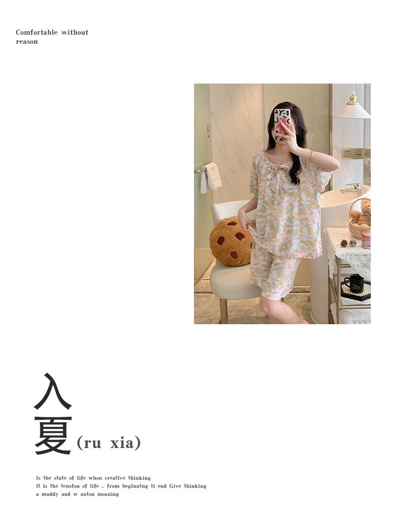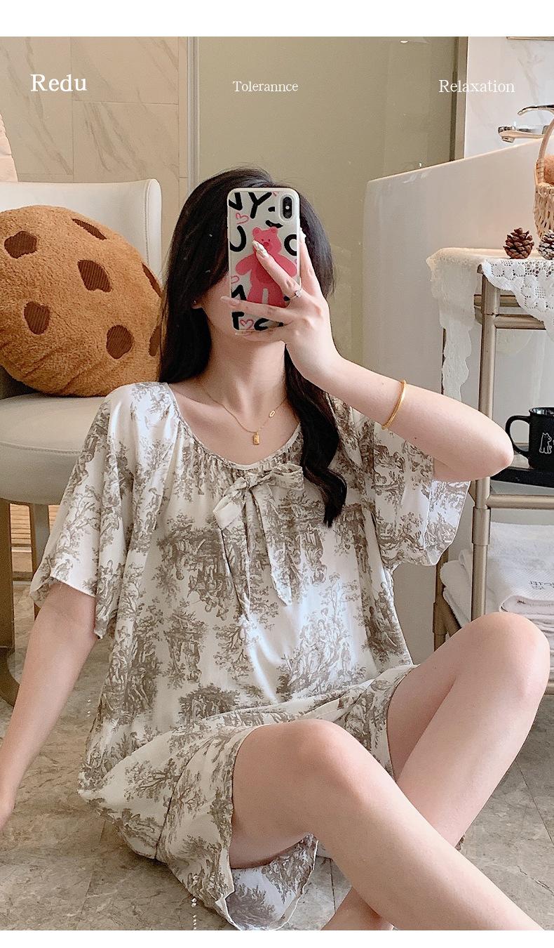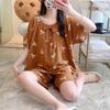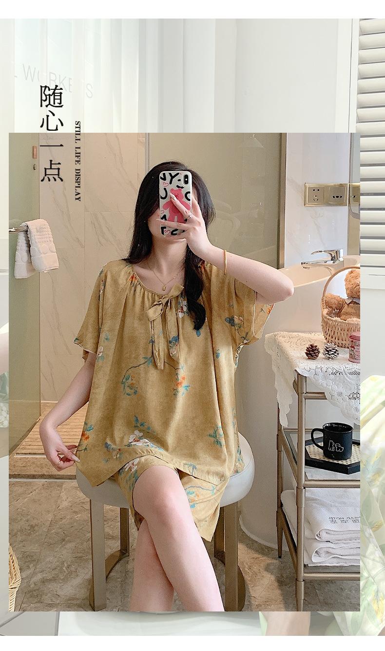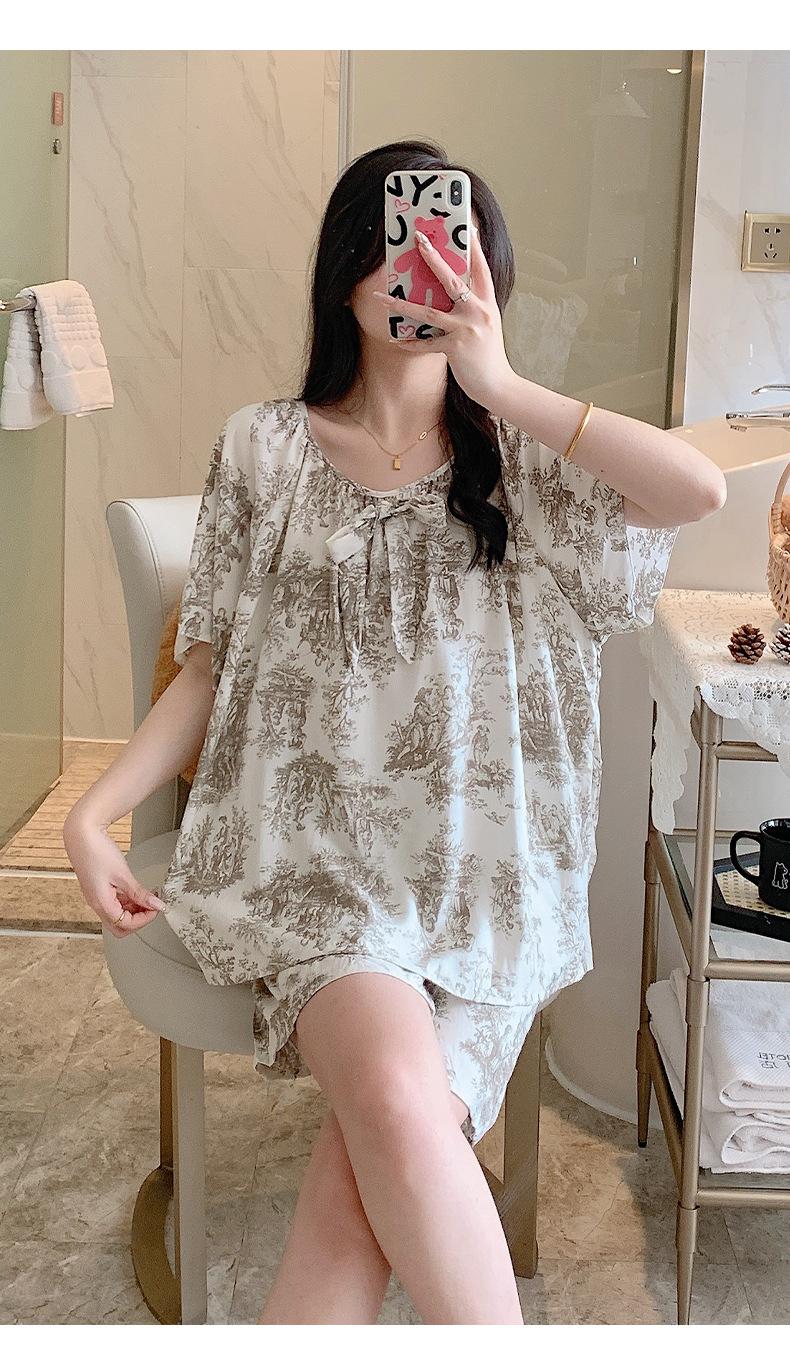 Pijama de Verano de Manga Corta para Mujer, Pijama Fino de Algodón Seda, Ropa para el Hogar Holgada de Talla Grande, Traje de Algodón Seda para Mujer para Usar Afuera