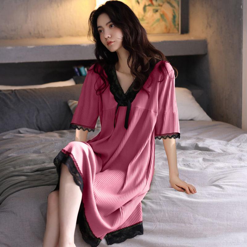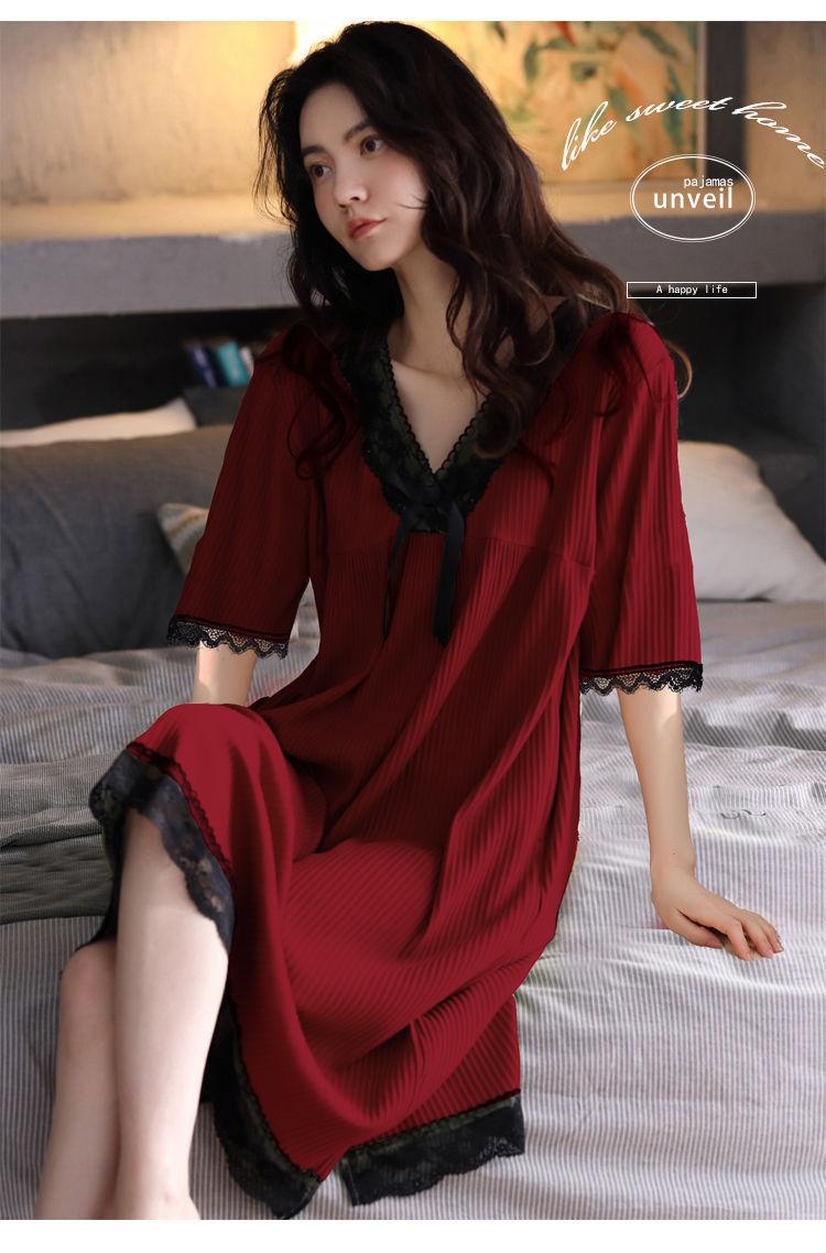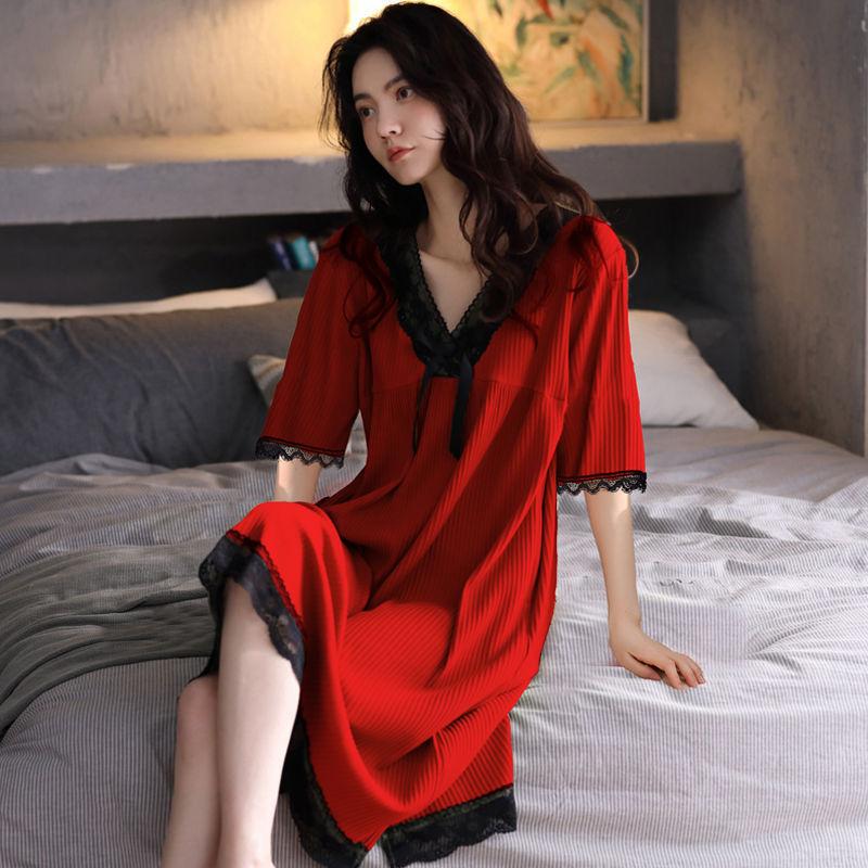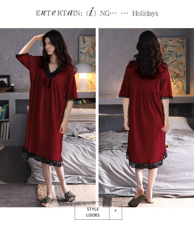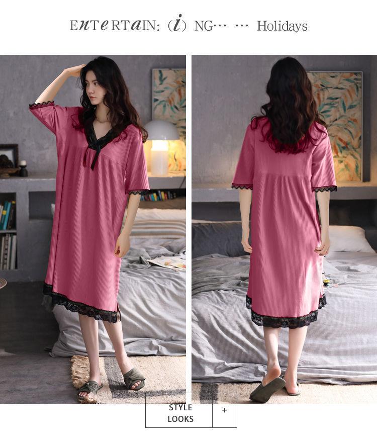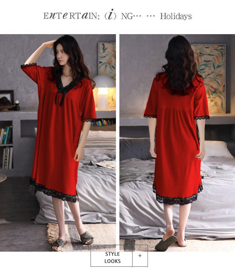 Pijamas de Algodón Puro para Mujer Verano de Alta Gama Manga Corta Holgado Camisón Verano Largo hasta la Rodilla Talla Grande Conjunto de Ropa para el Hogar Se Puede Usar Afuera