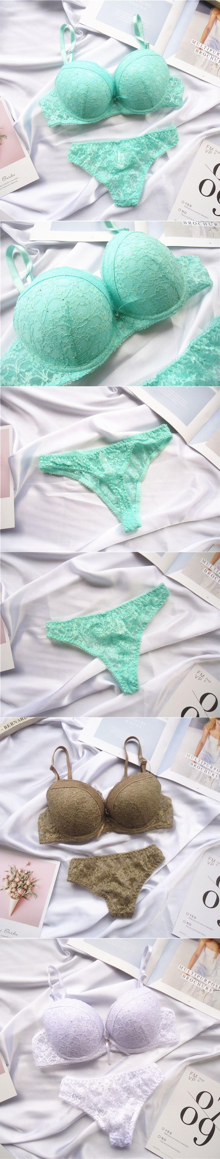 Encantador y Lindo Conjunto de Sujetador Sexy de Encaje Push-Up Fino para Niña 95De