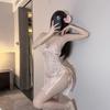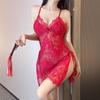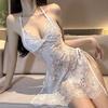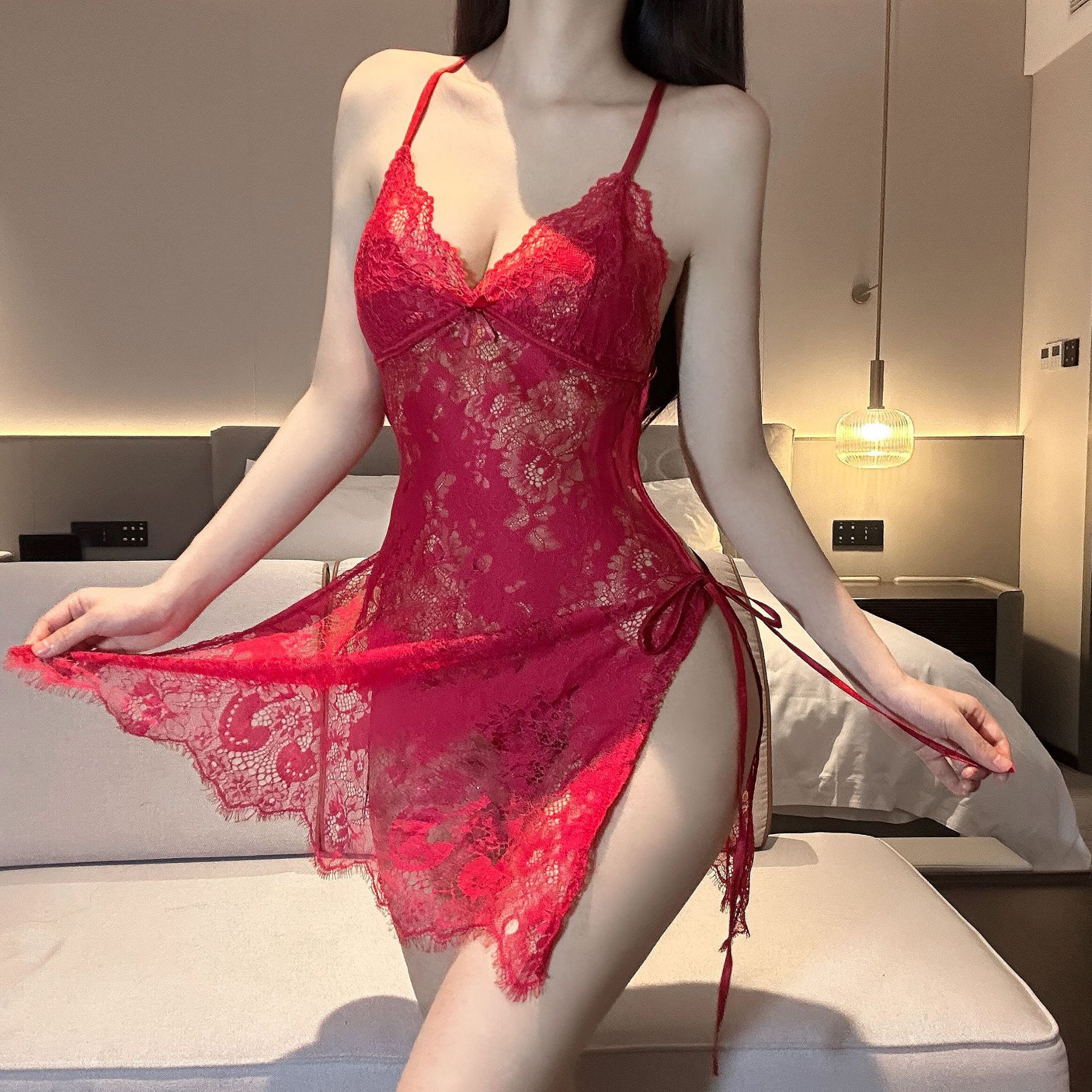 Camisola Sexy de Encaje Transparente con Escote en V Profundo Ropa de Dormir para Mujer con Camisola sin Espalda Vestido de Noche Conjunto para el Hogar X76