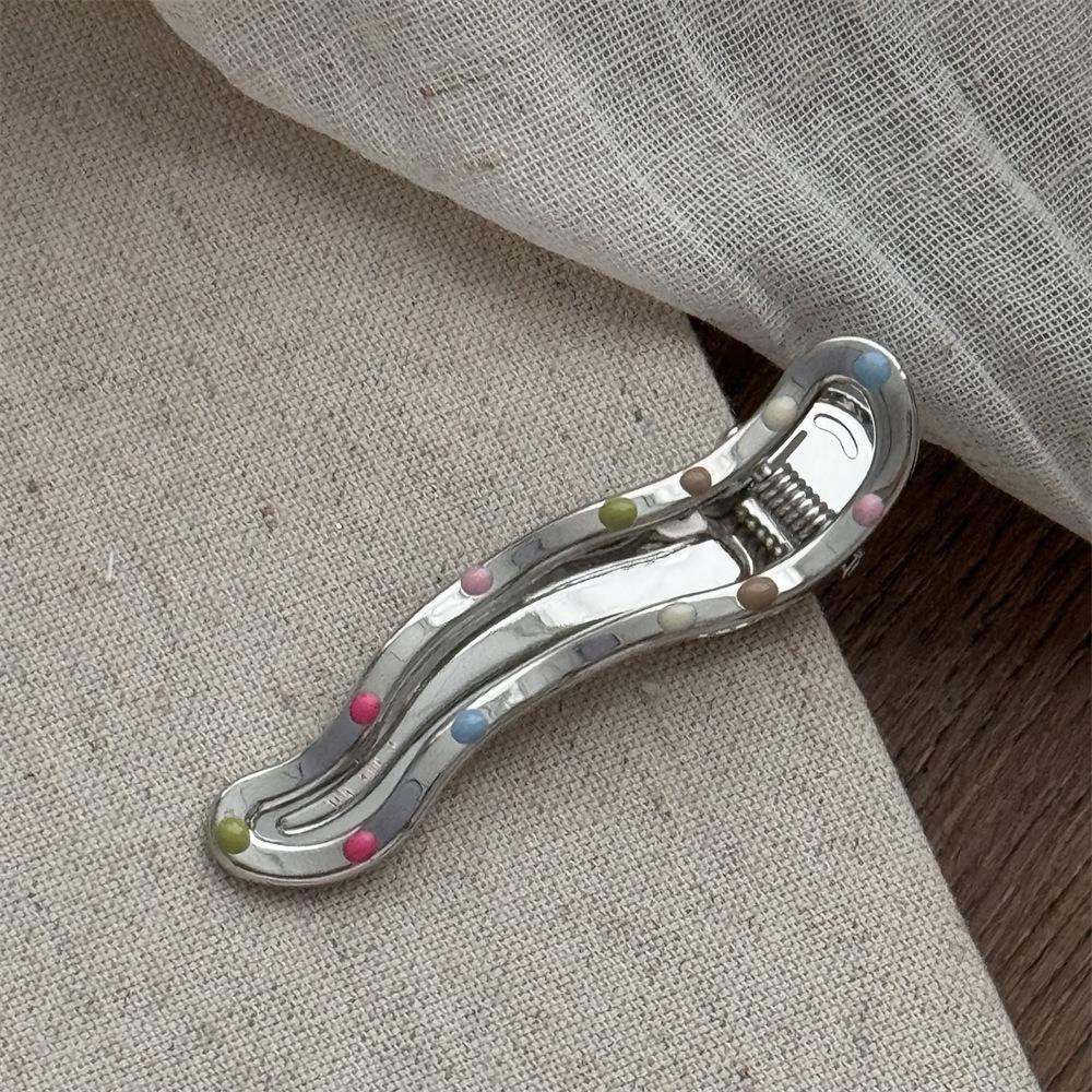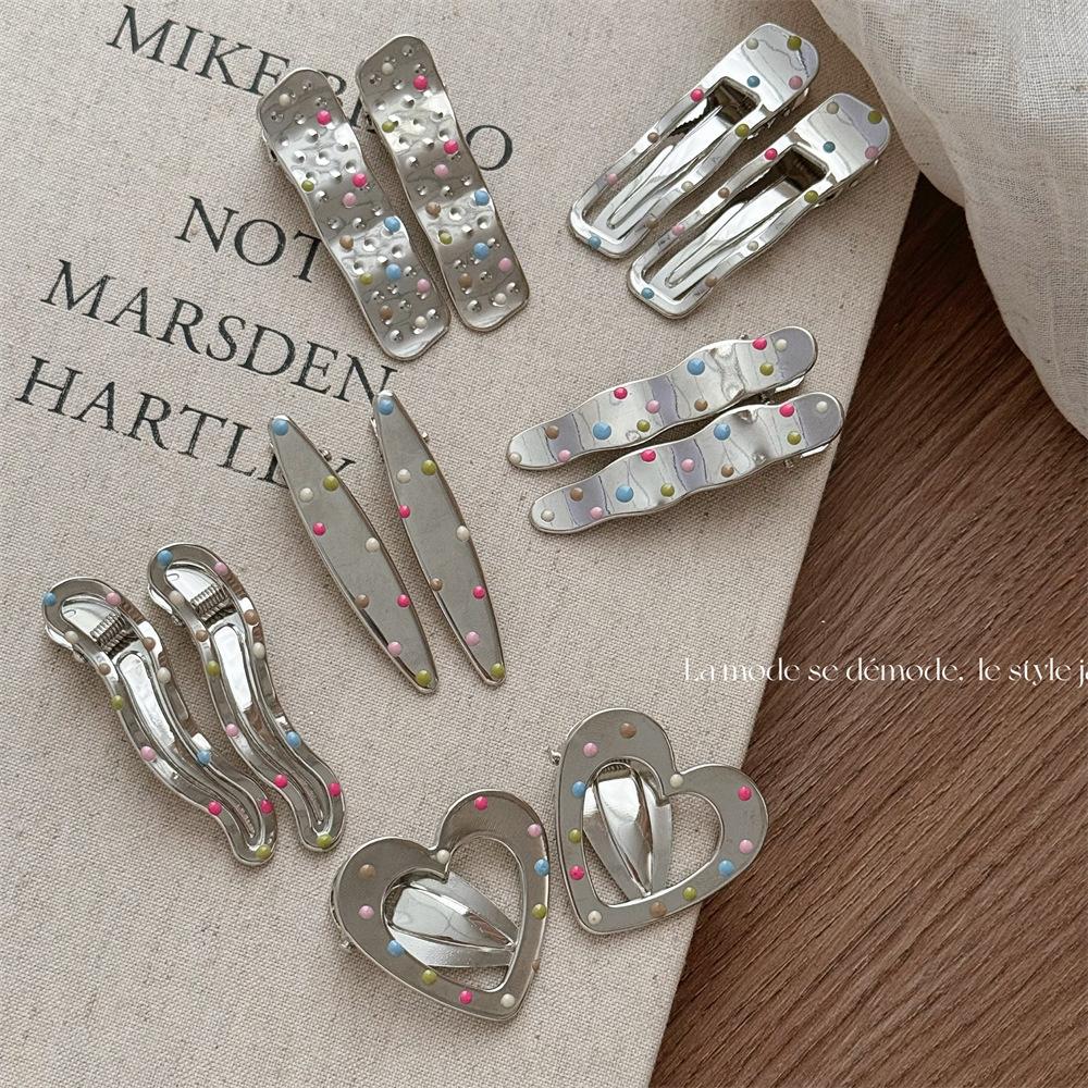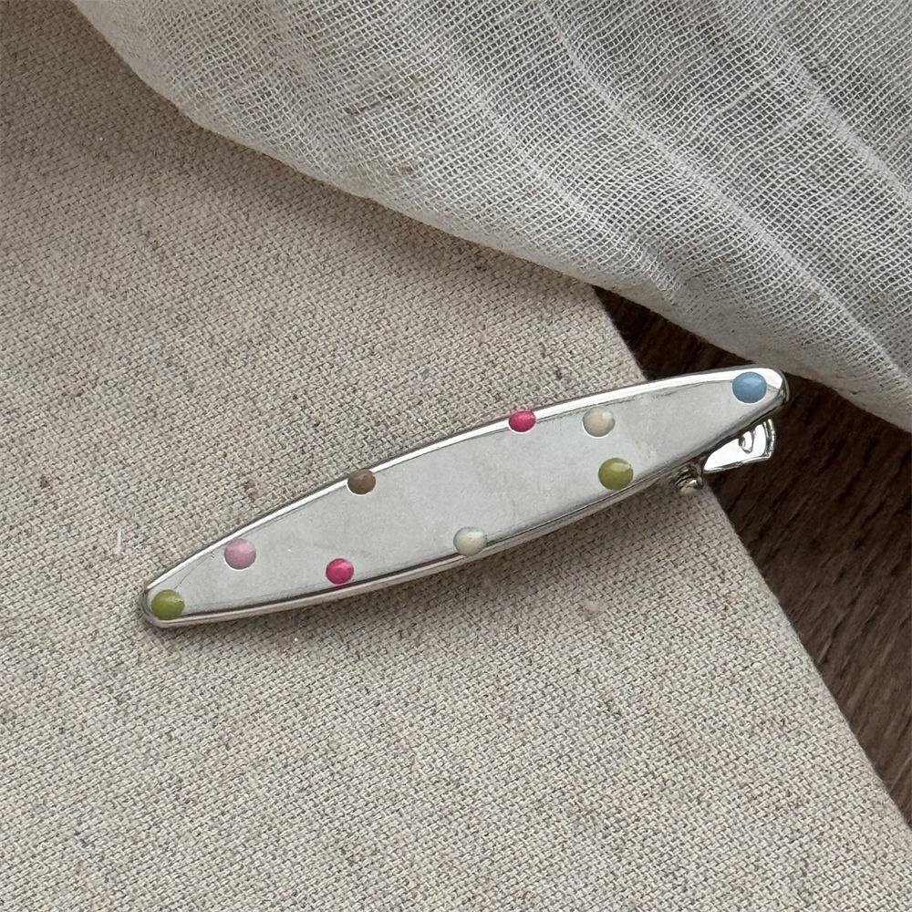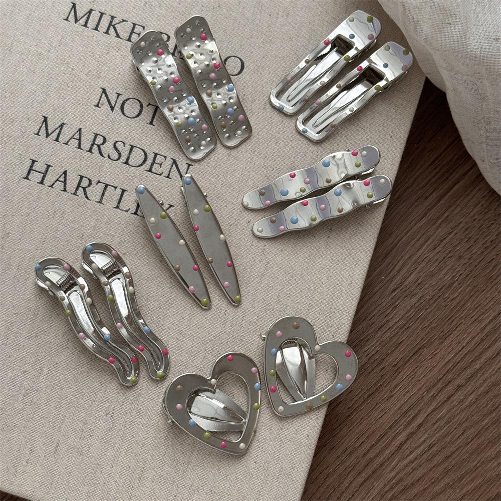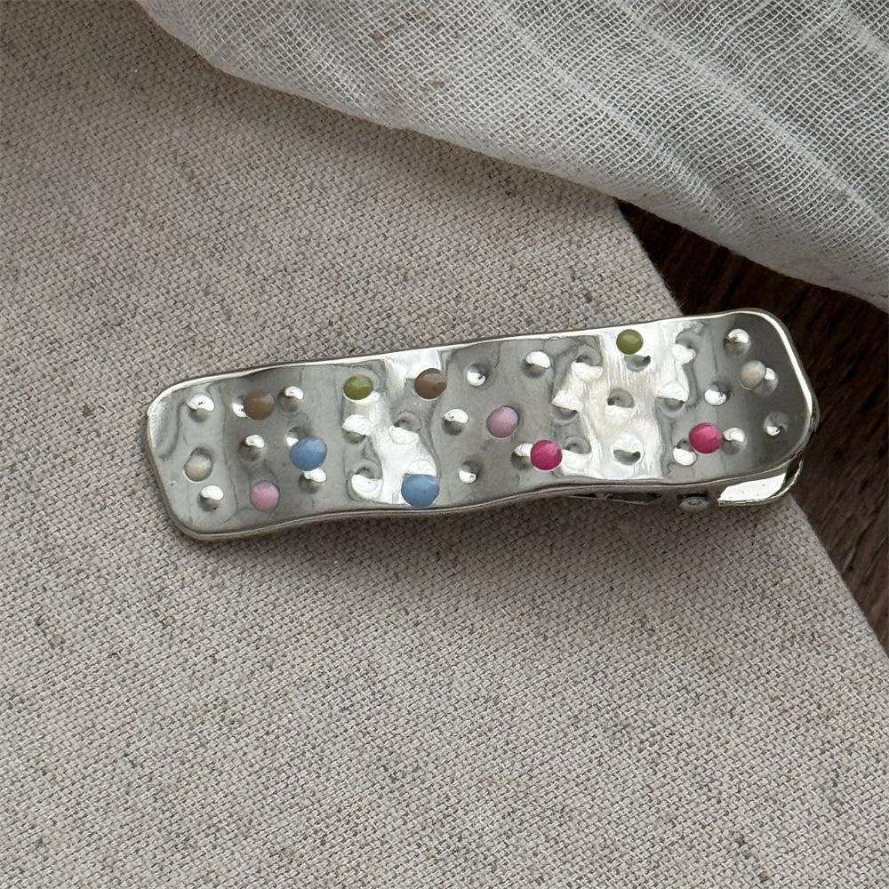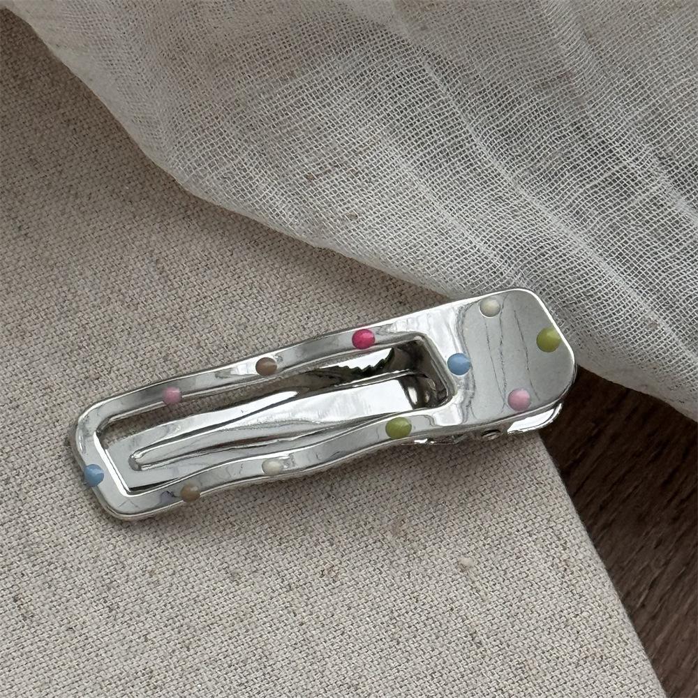 Horquilla de metal plateada con puntos de colores para mujer, con clip lateral y forma de gota de agua, para maquillaje, para el flequillo frontal.