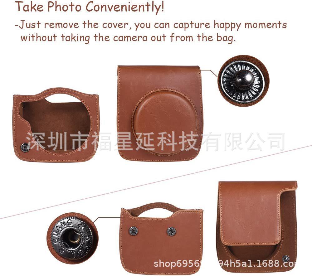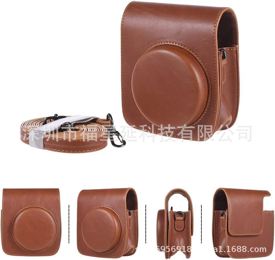Bolsa para cámara polaroid instax mini 90 funda de cuero funda protectora funda de cristal bolsa de hombro marrón