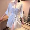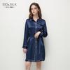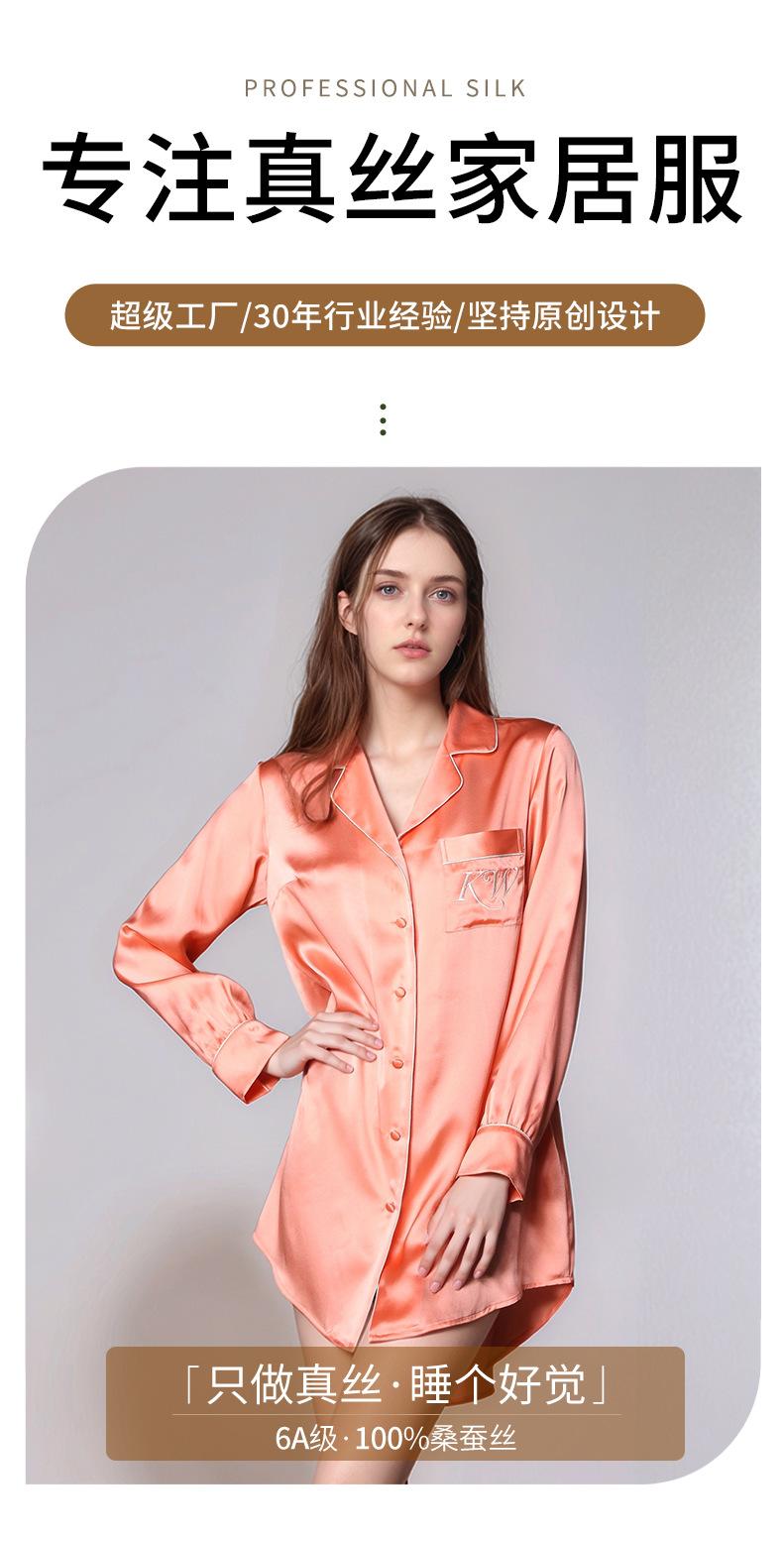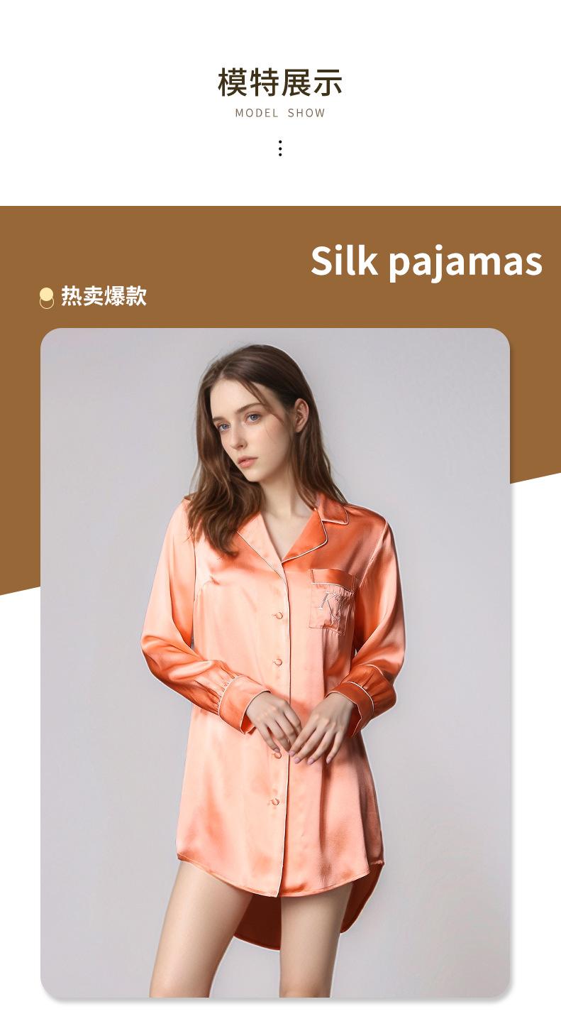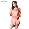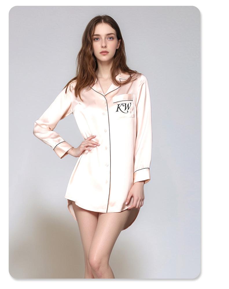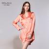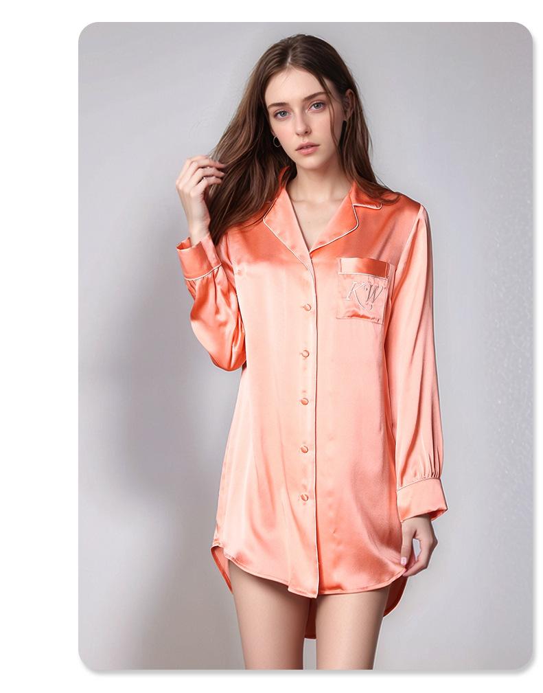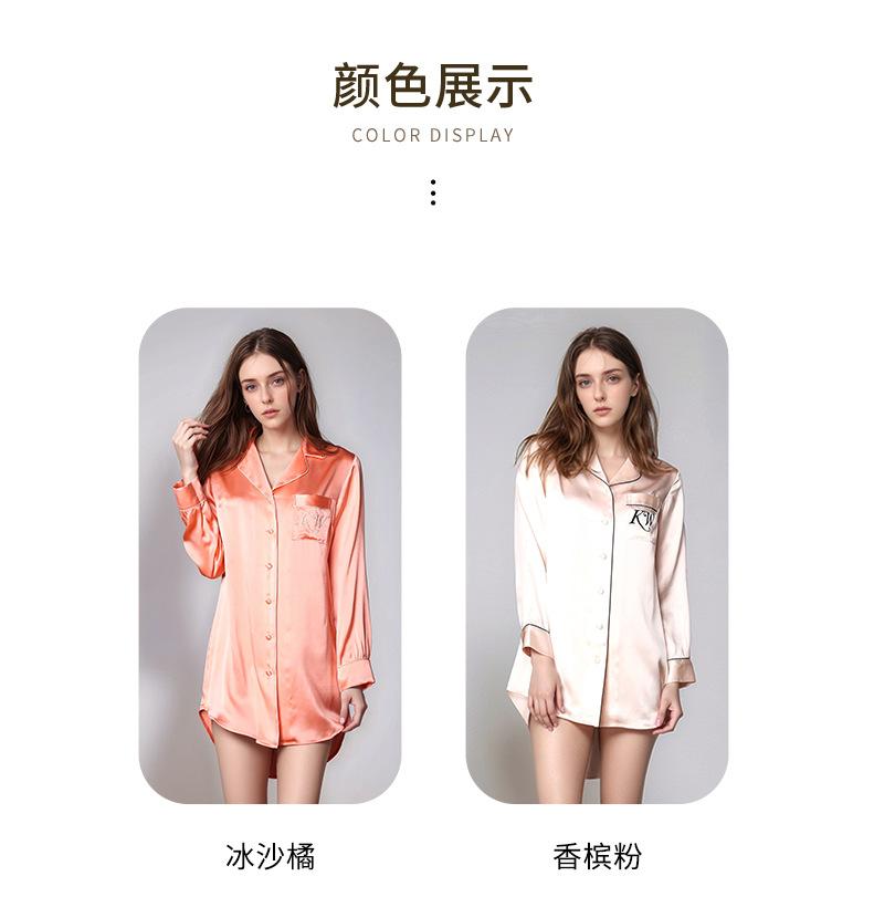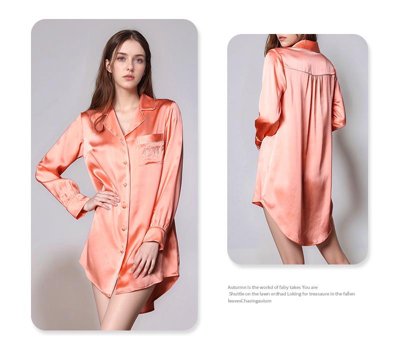2025 Nuevo Camisón de Verano de Seda para Mujer 100% Seda de Morera Vestido Camisero de Manga Larga Sexy Ropa de Casa Falda Corta