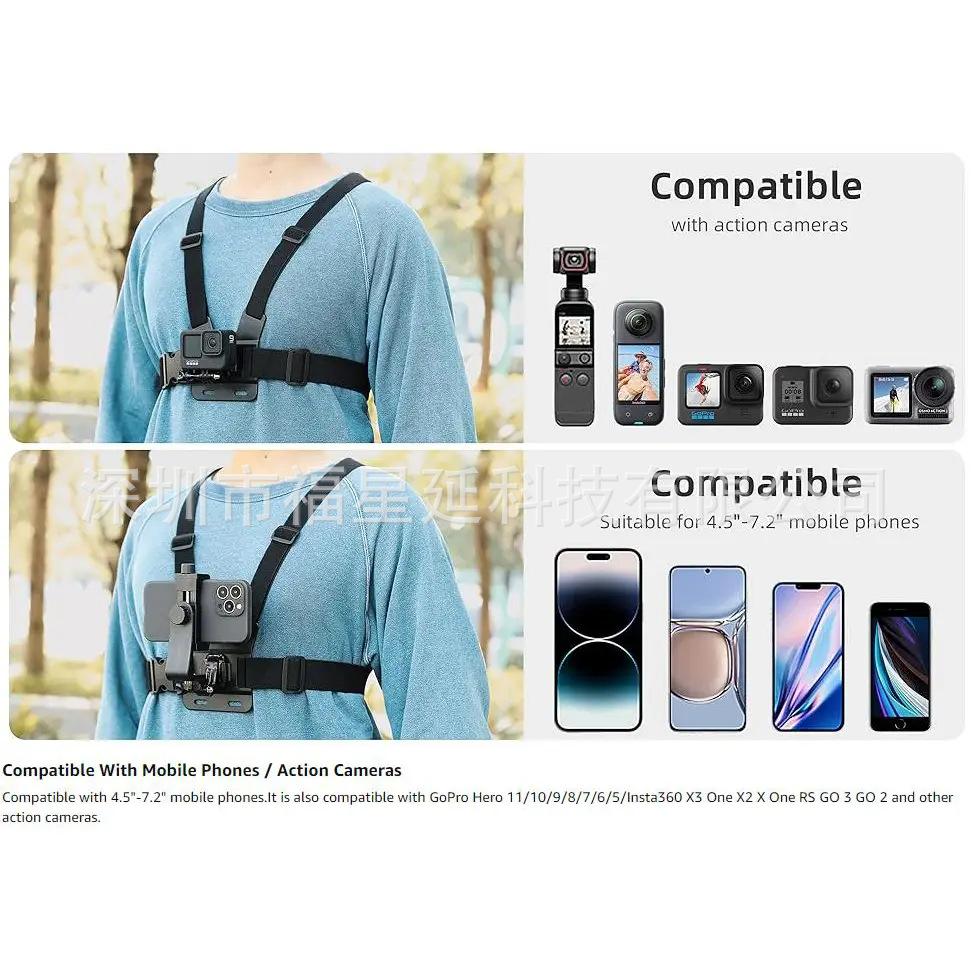 Correa de pecho para cámara deportiva GoPro12/11 10, clip para teléfono móvil 360, traje de correa para el hombro