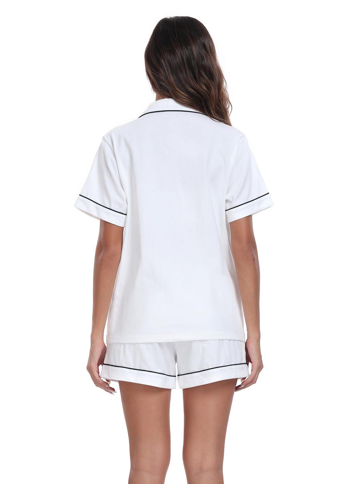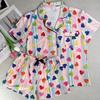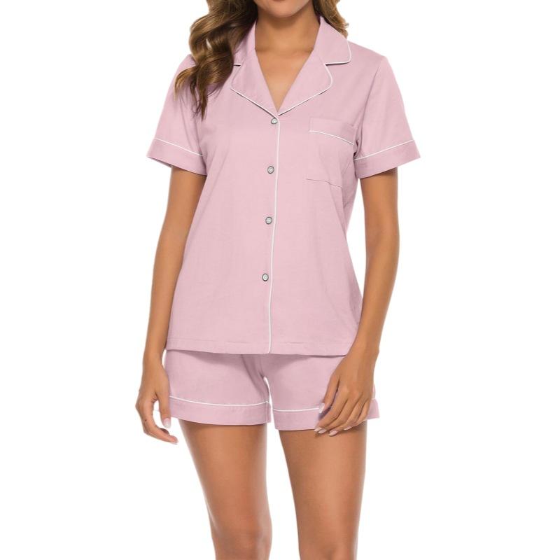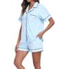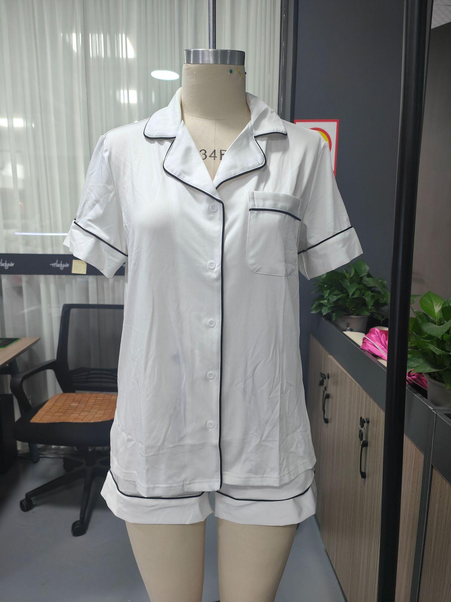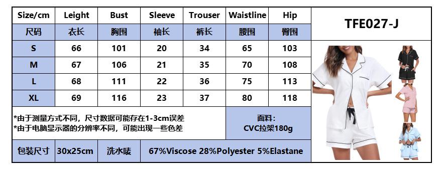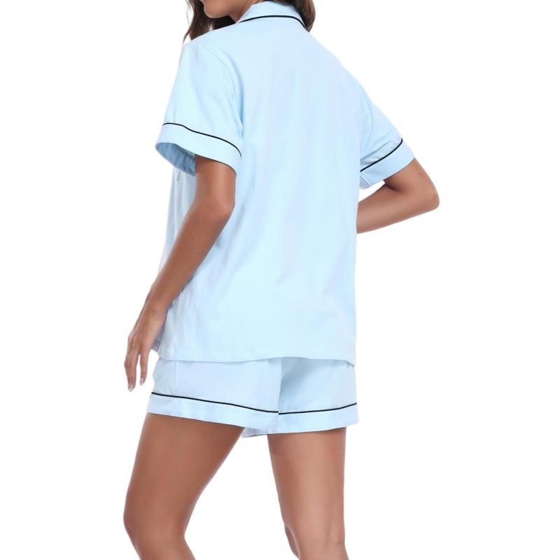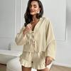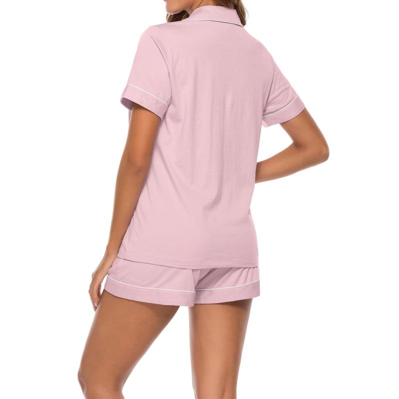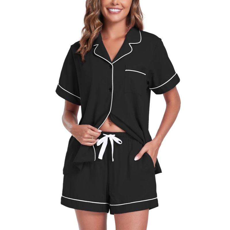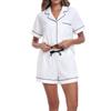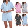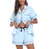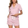 Pijamas Europeos y Americanos Transfronterizos para Mujer Verano Solapa Cárdigan Manga Corta Shorts Conjunto para Estar en Casa Amazon Estilo Europeo y Americano