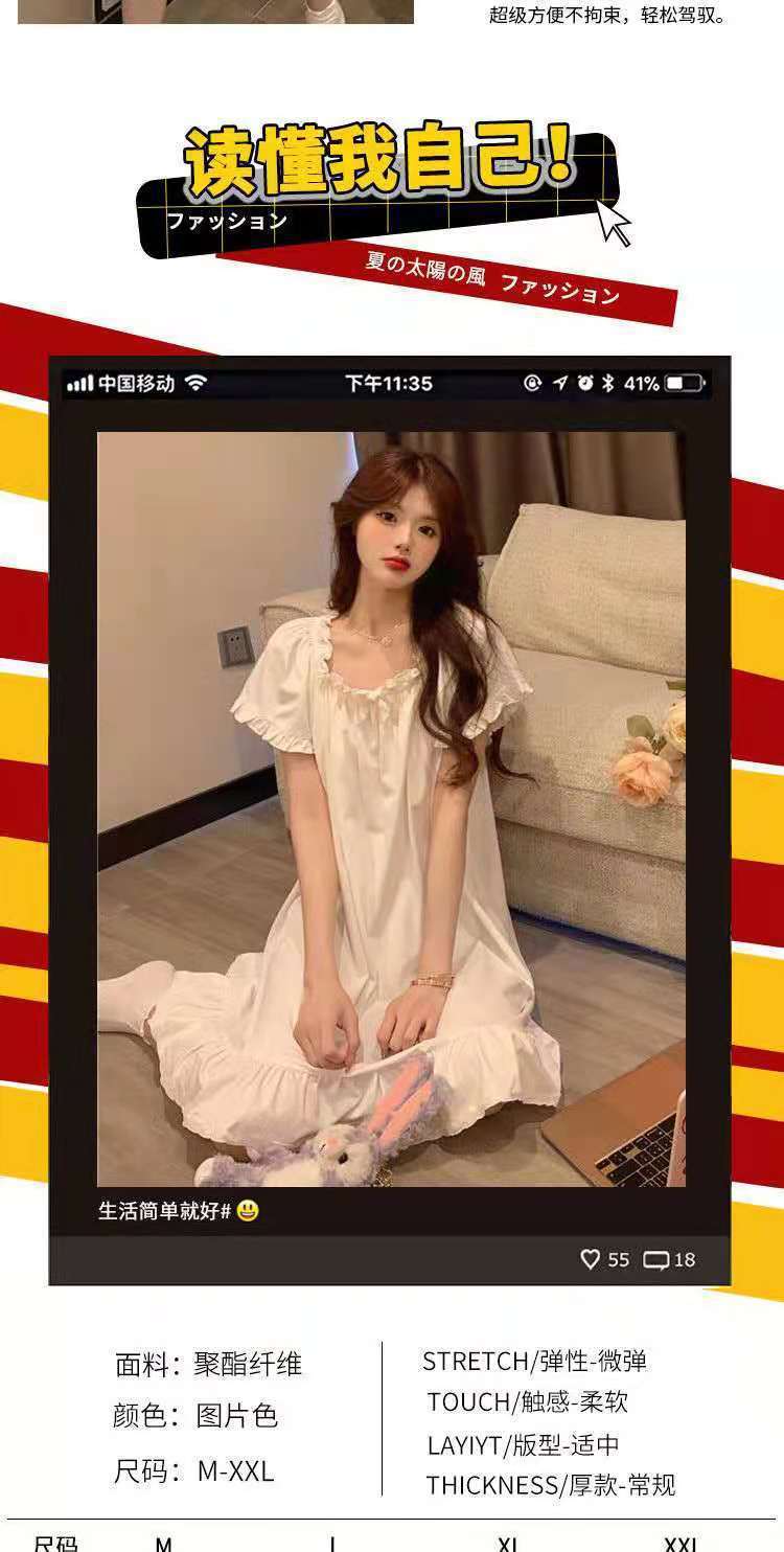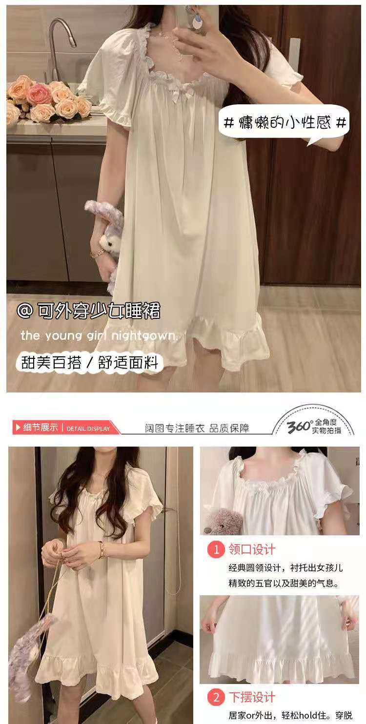 Pijama estilo Ins para mujer verano camisón dulce manga corta delgado estilo princesa estudiante lindo popular vestido ajustado