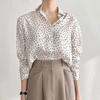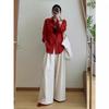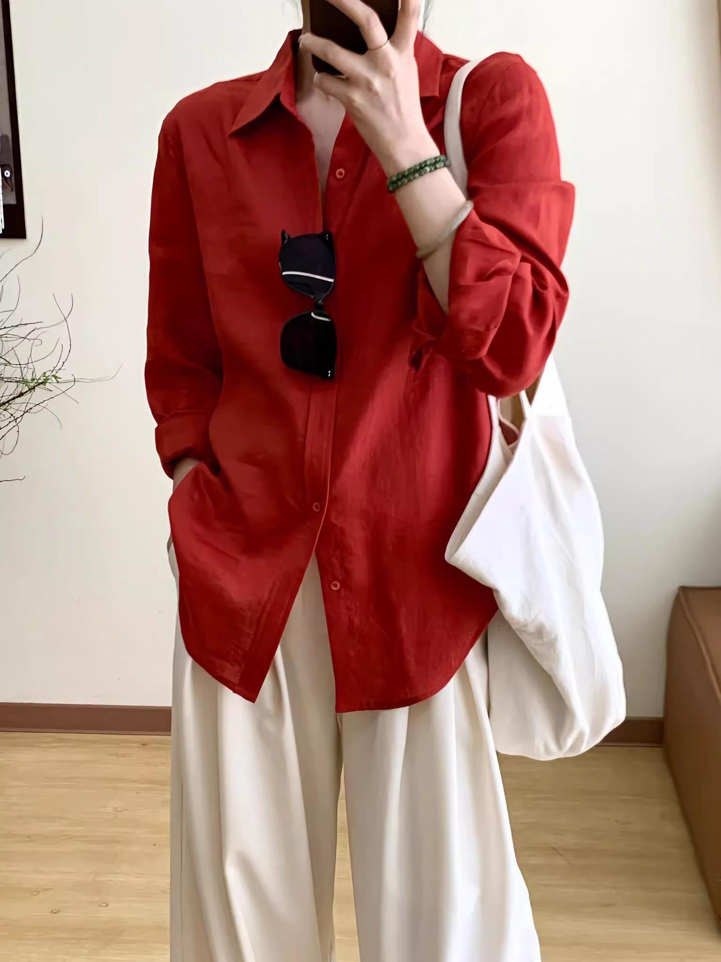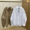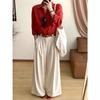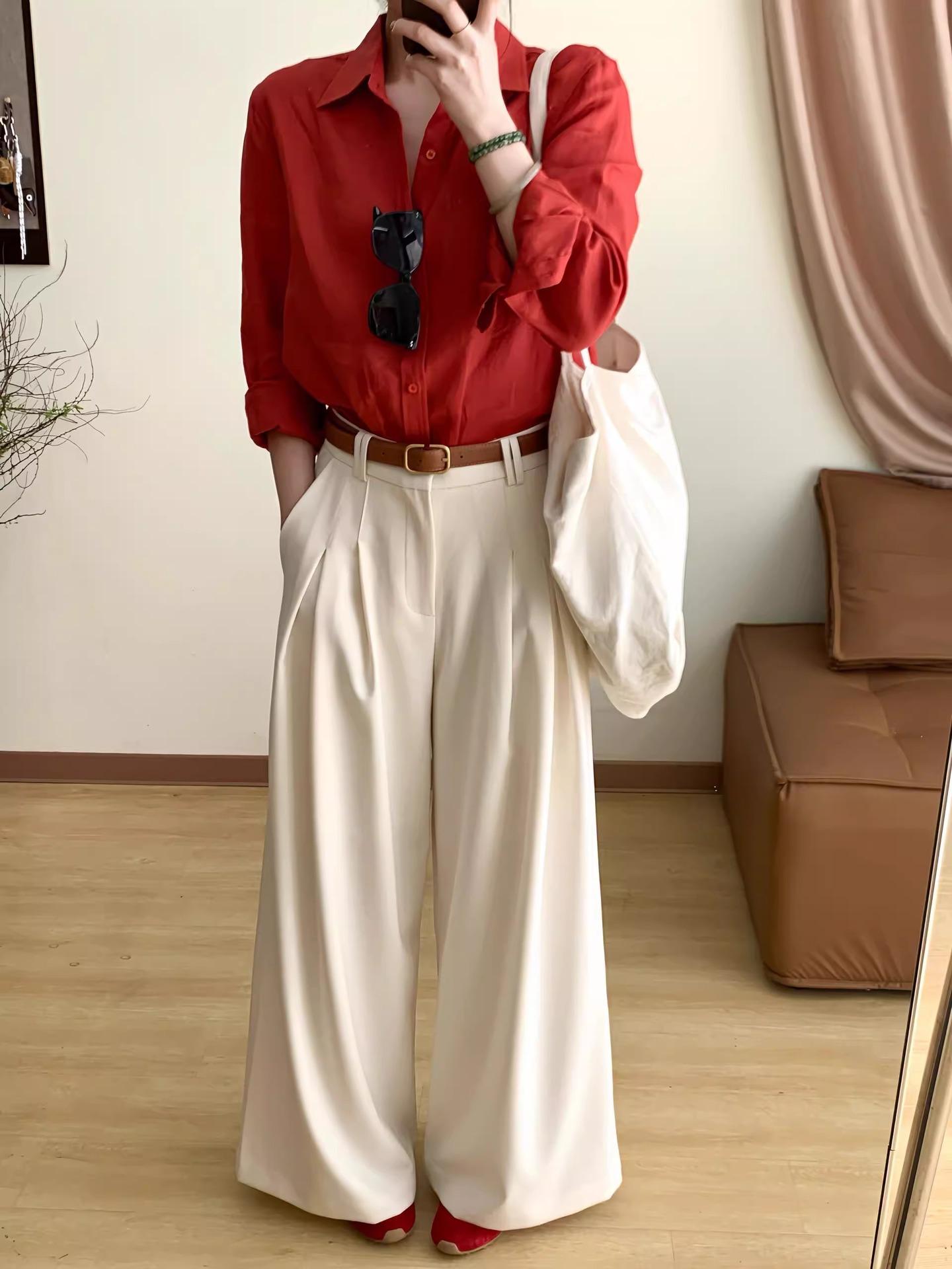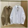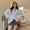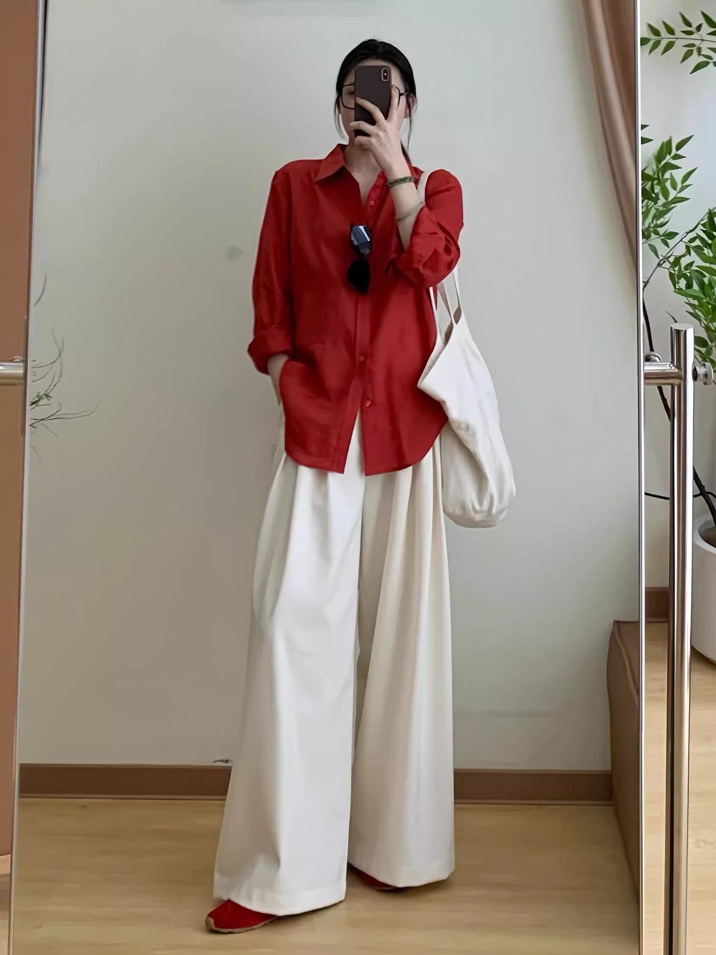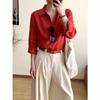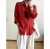 Camisa de Viaje Blanca y Roja Estilo Coreano para Mujer Primavera y Verano 2025 Nuevo Estilo Solapa Holgada de Gama Alta Camisa de Manga Larga