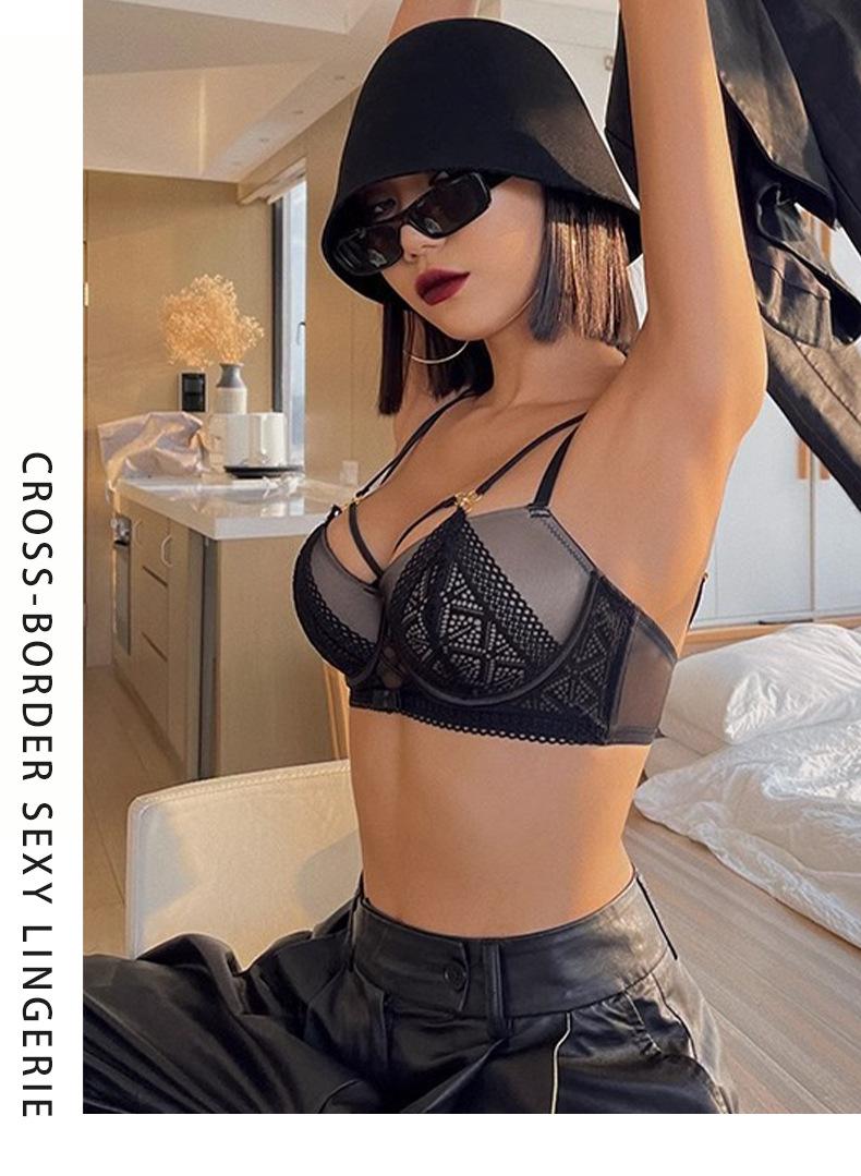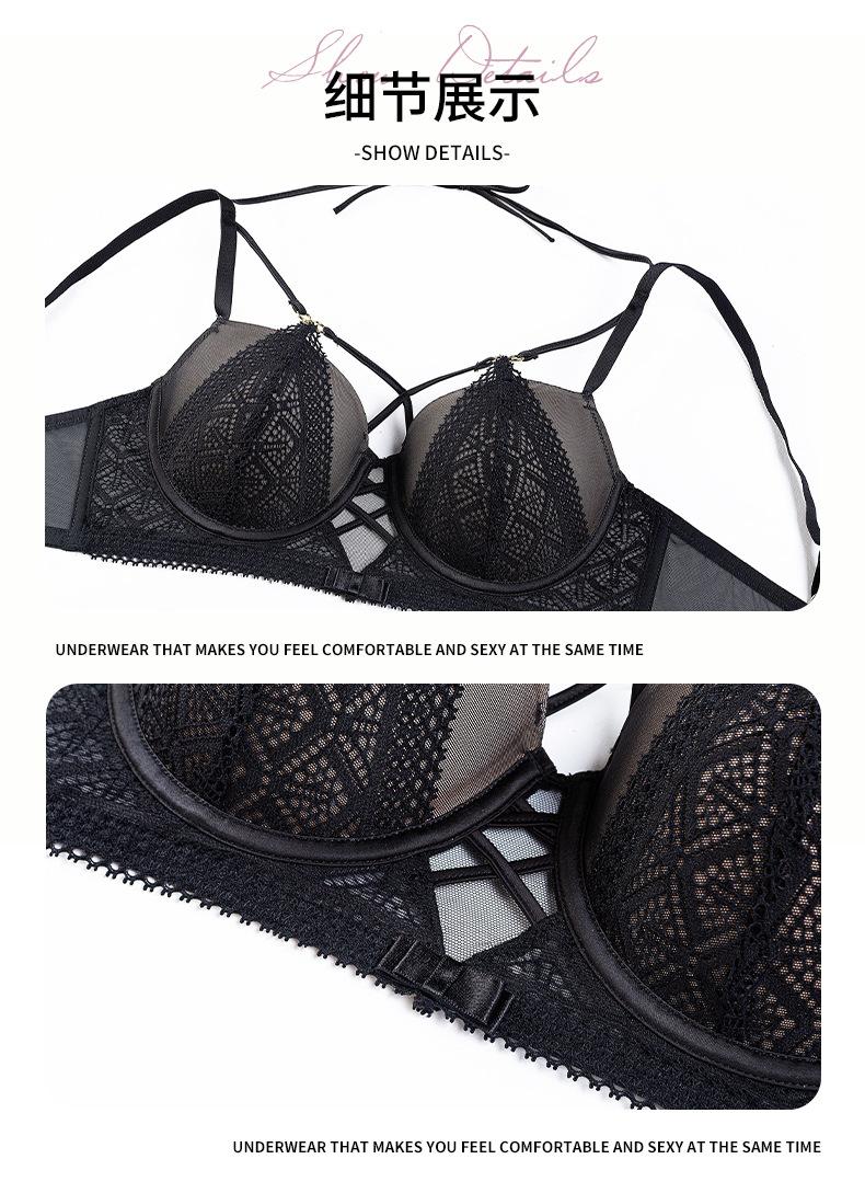 Lencería Francesa Europea y Americana Transfronteriza, Diseño Femenino de Tirantes de Encaje, Set de Brasier Push-Up Anti-Flacidez para Busto Grande