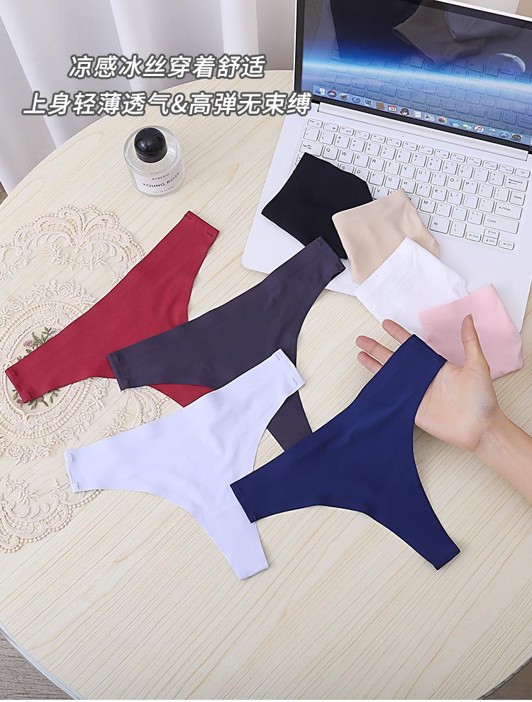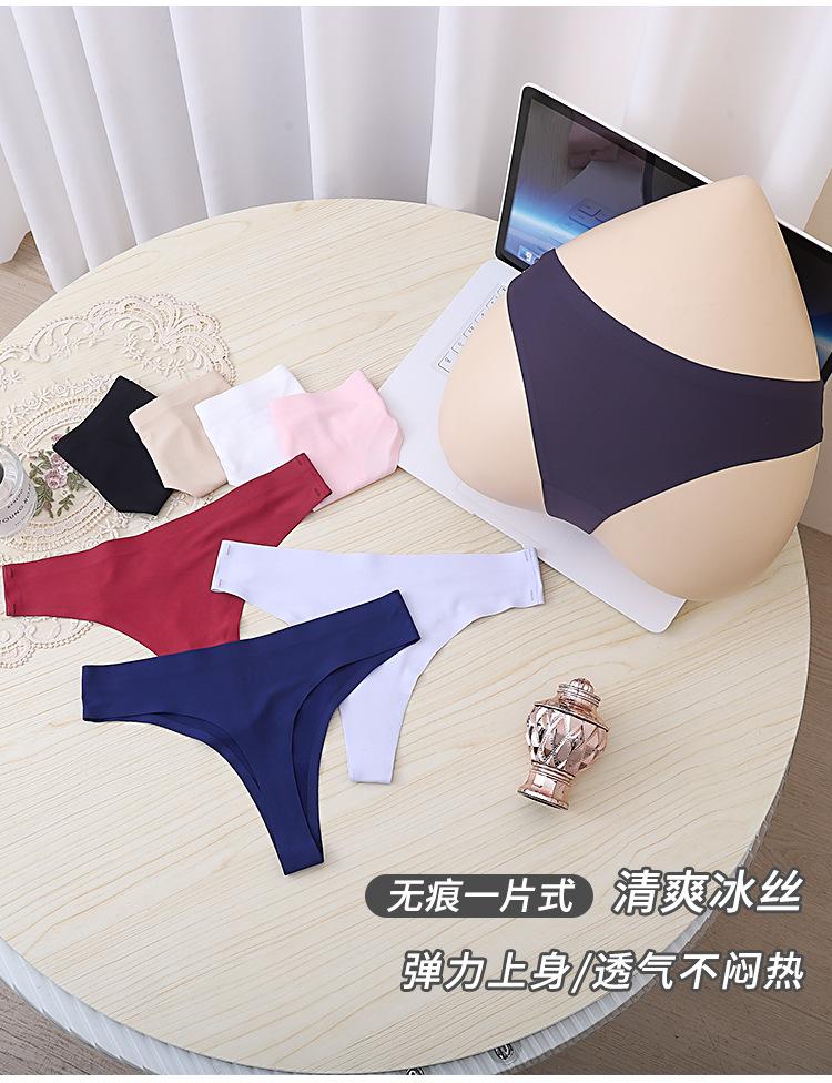 Amazon Europa y Estados Unidos transfronterizo sin costuras de una pieza seda de hielo ropa interior para damas transpirable yoga niñas tanga invisible