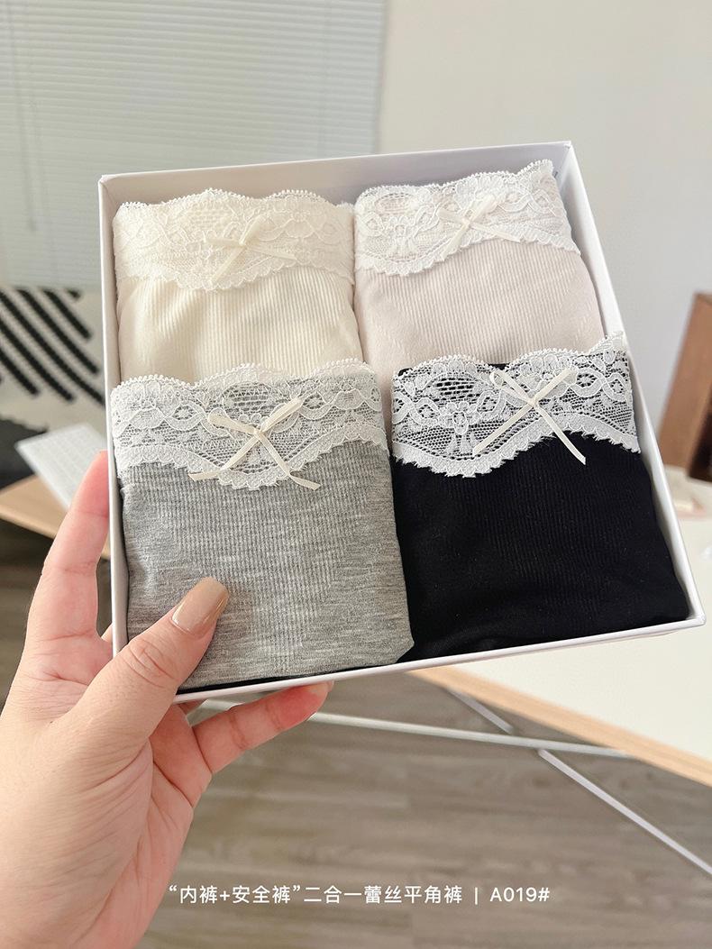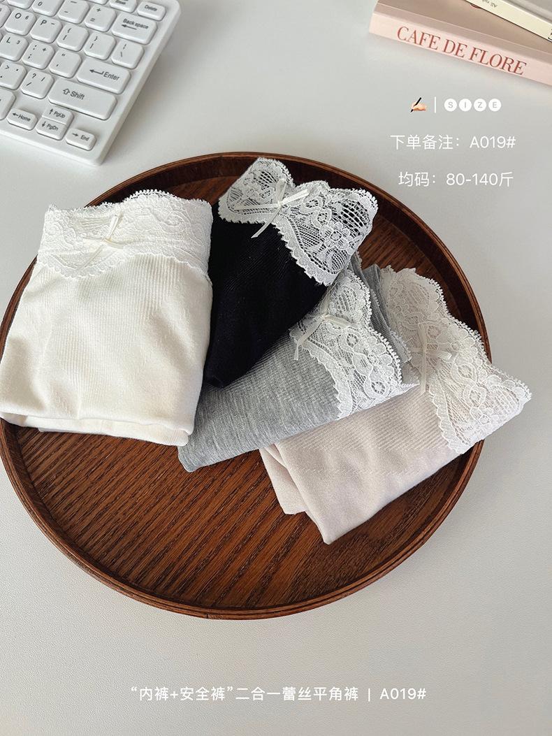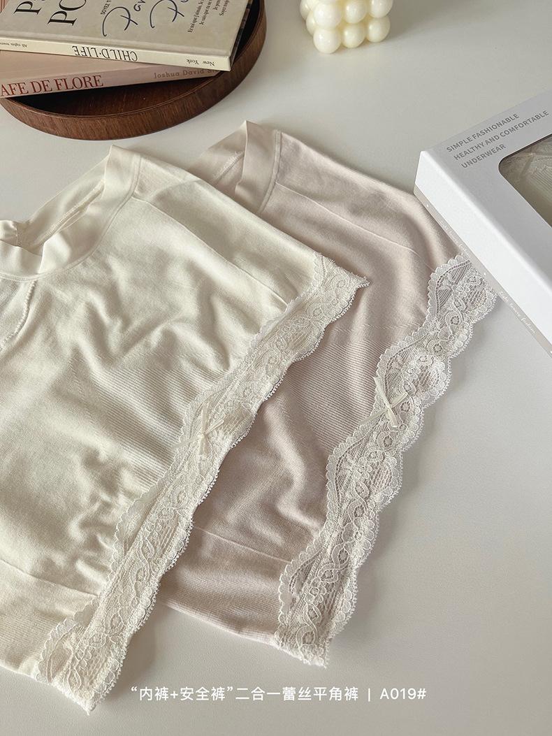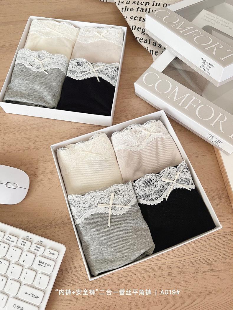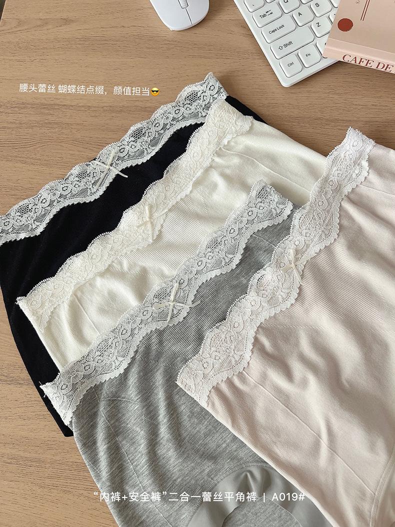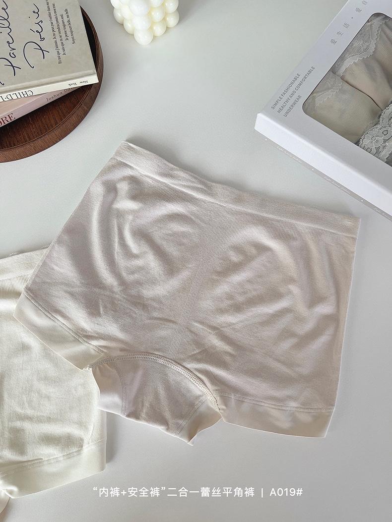 Paquete de 4 A019 Bóxers de Encaje Sin Costuras que Abrazan la Cadera para Verano para Niñas Leggings Dos en Uno para Mujer