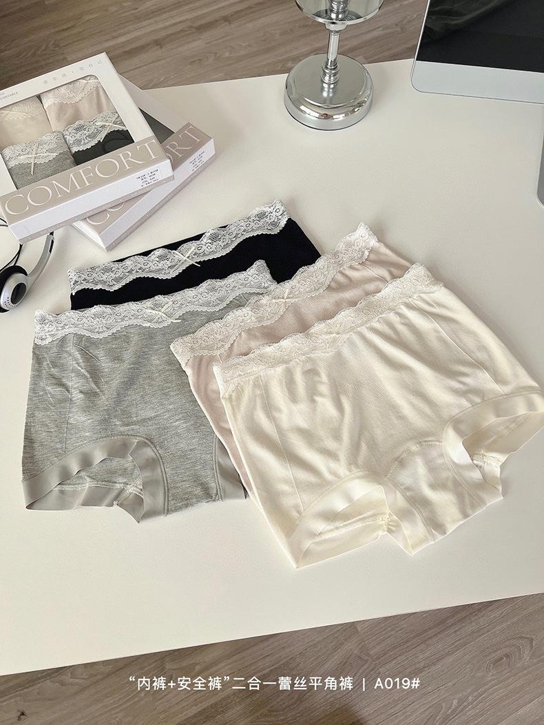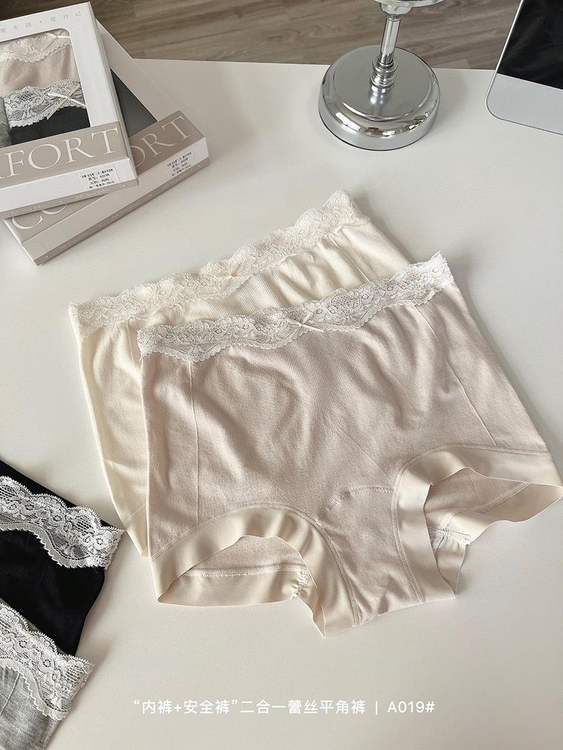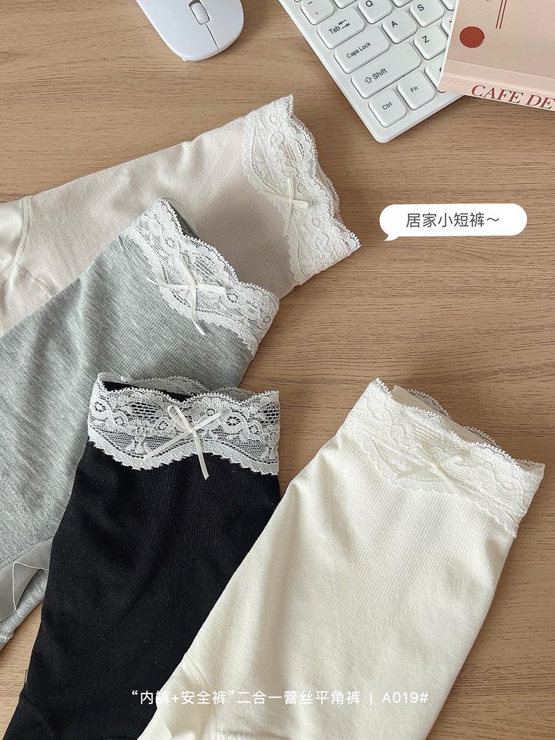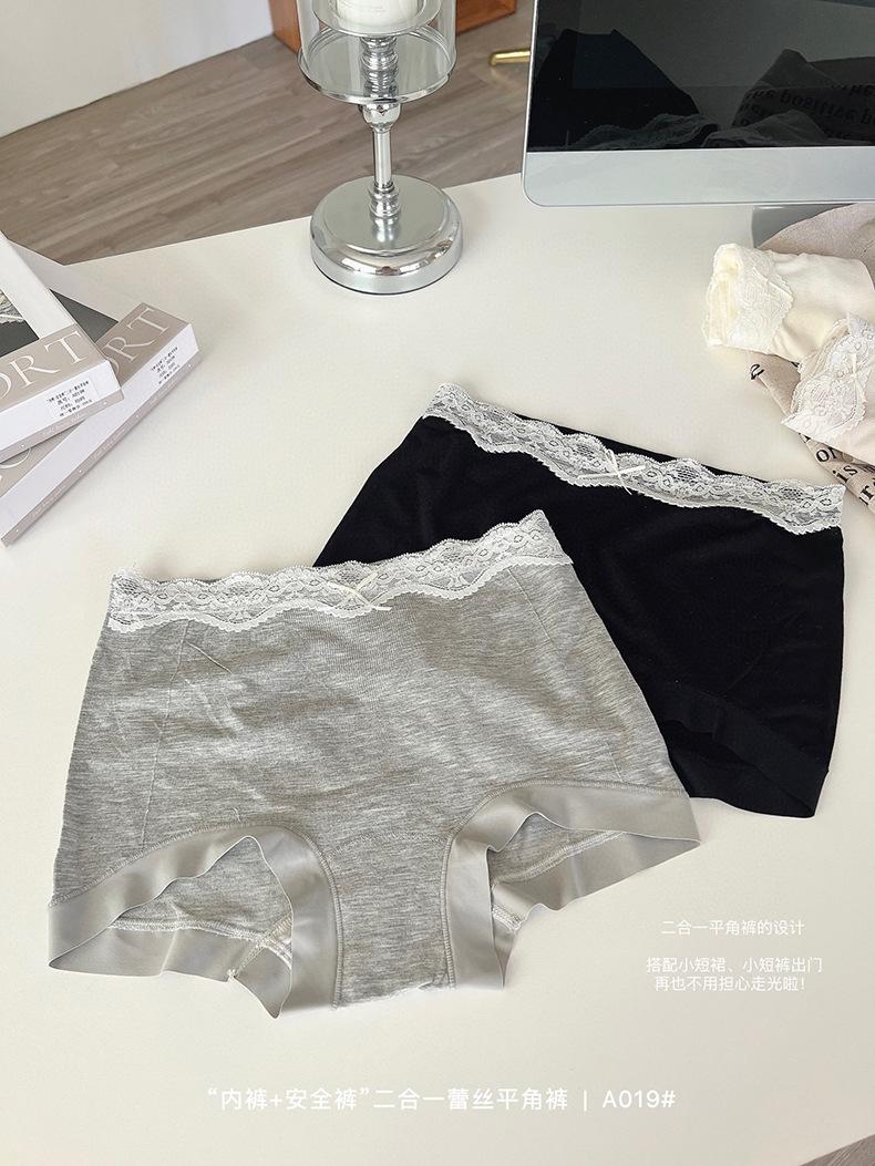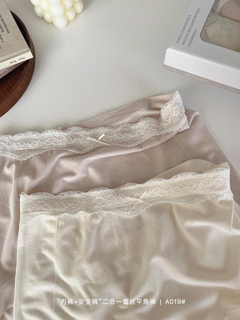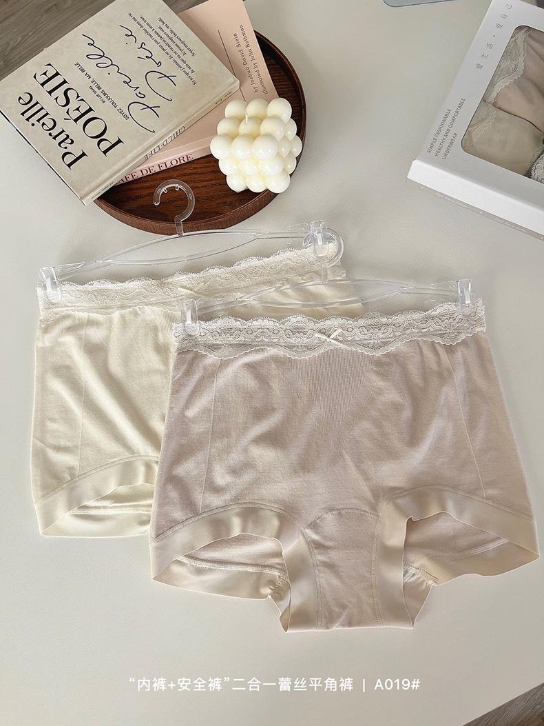 Paquete de 4 A019 Bóxers de Encaje Sin Costuras que Abrazan la Cadera para Verano para Niñas Leggings Dos en Uno para Mujer