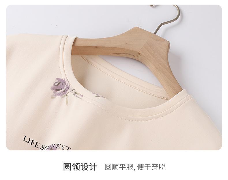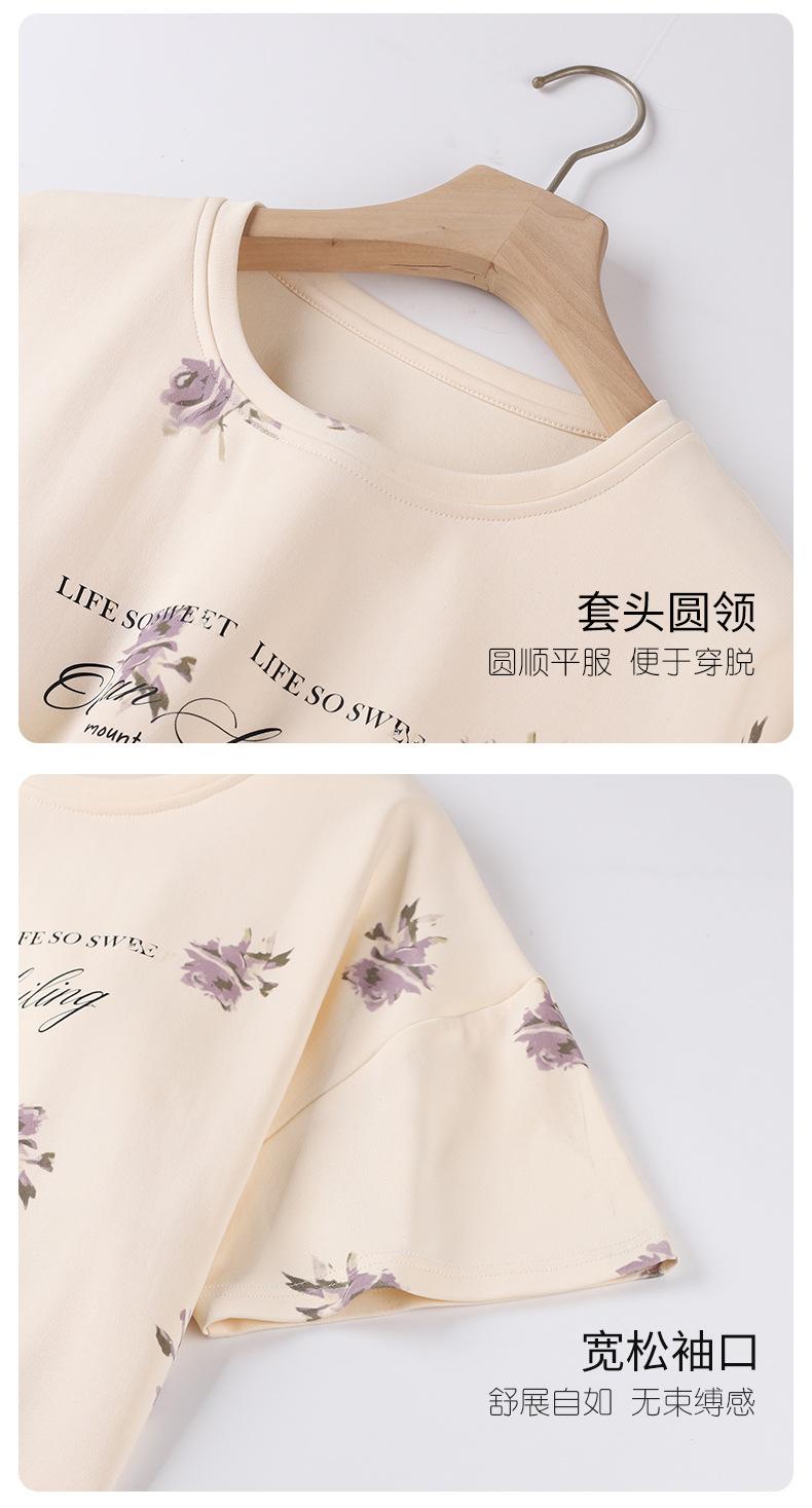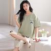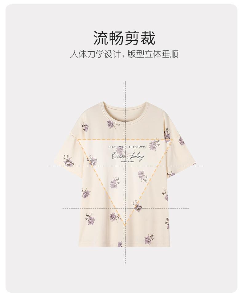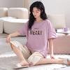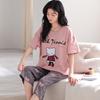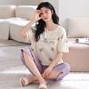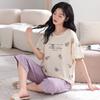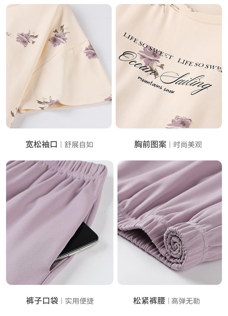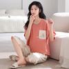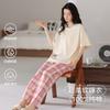 Pijama para Mujer con Almohadillas en el Pecho, Pantalón Capri, Verano Algodón Puro Manga Corta Fino Casual Cuello Redondo Conjunto para Estar en Casa Que se Puede Usar Afuera