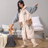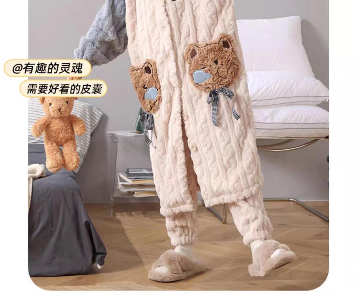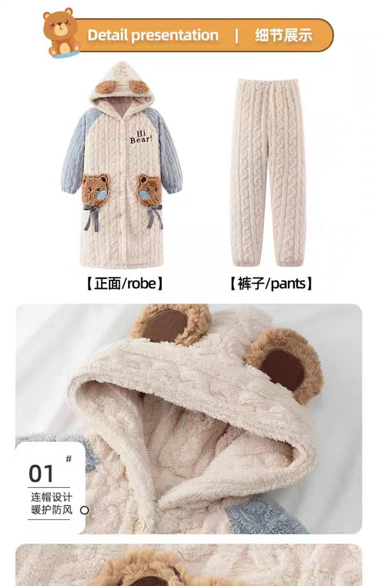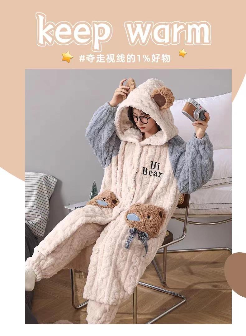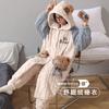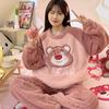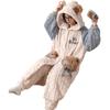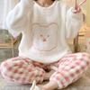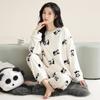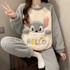 Pijamas de Terciopelo Coral para Mujer en Otoño e Invierno Pijamas de Terciopelo Engrosado de Longitud Media de Dibujos Animados Lindo Set de Ropa para el Hogar de Franela
