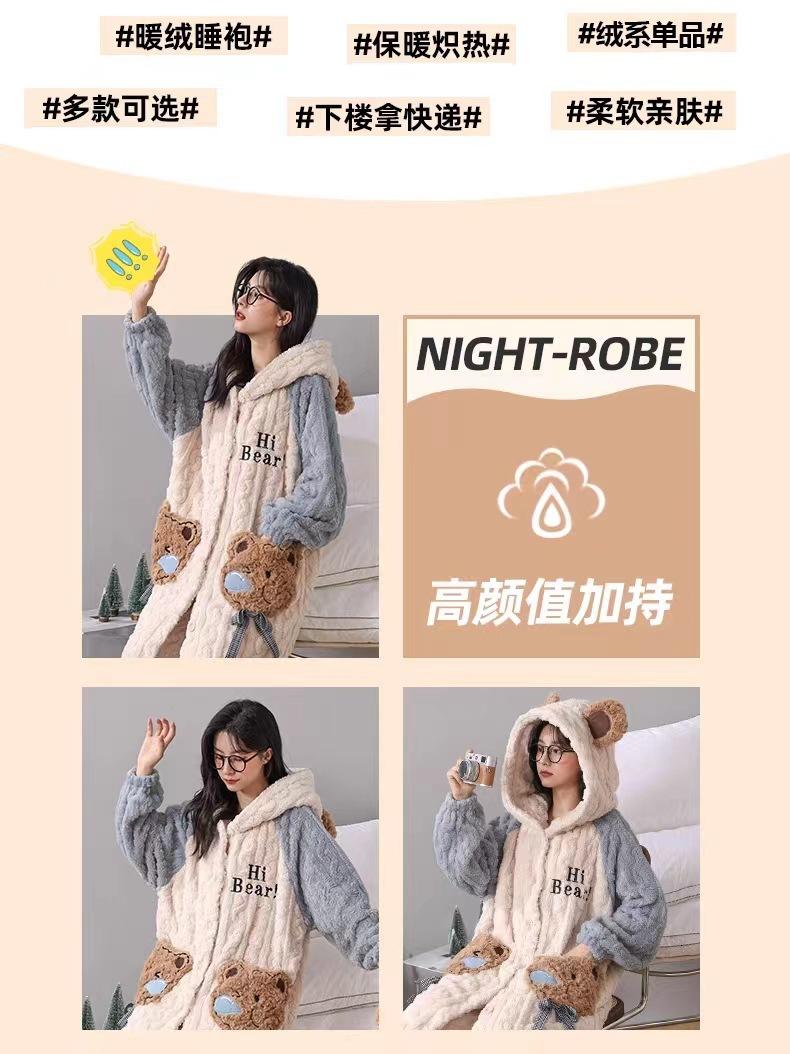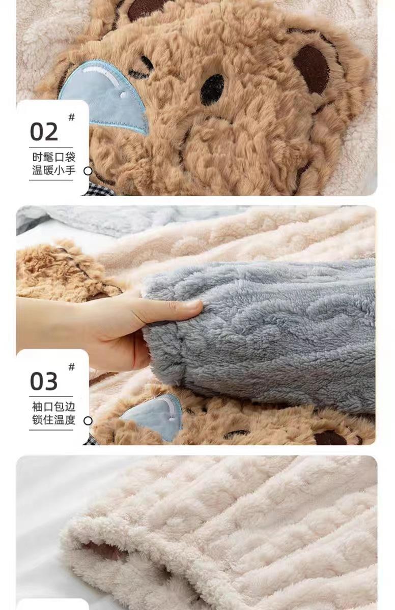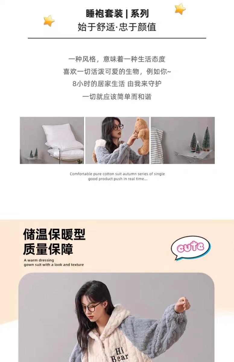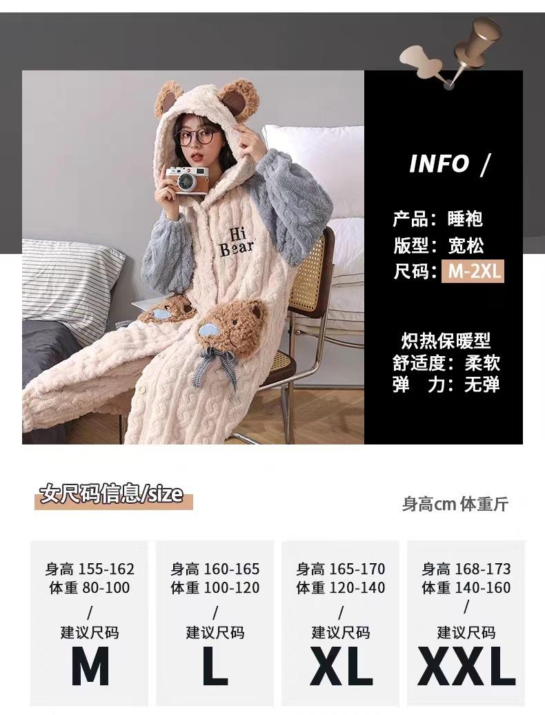 Pijamas de Terciopelo Coral para Mujer en Otoño e Invierno Pijamas de Terciopelo Engrosado de Longitud Media de Dibujos Animados Lindo Set de Ropa para el Hogar de Franela