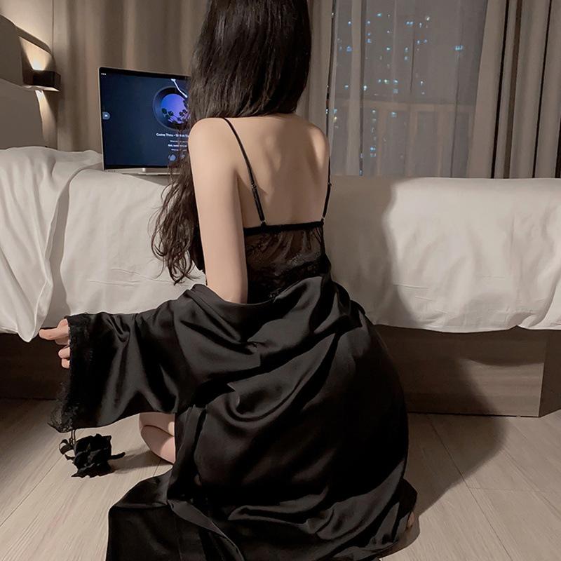 Pijamas para Mujer Verano Seda de Hielo Encaje Sexy Tirantes Almohadilla para el Busto Camisón Delgado Primavera y Verano Ropa para el Hogar