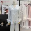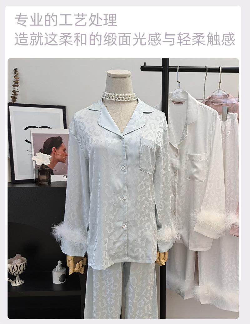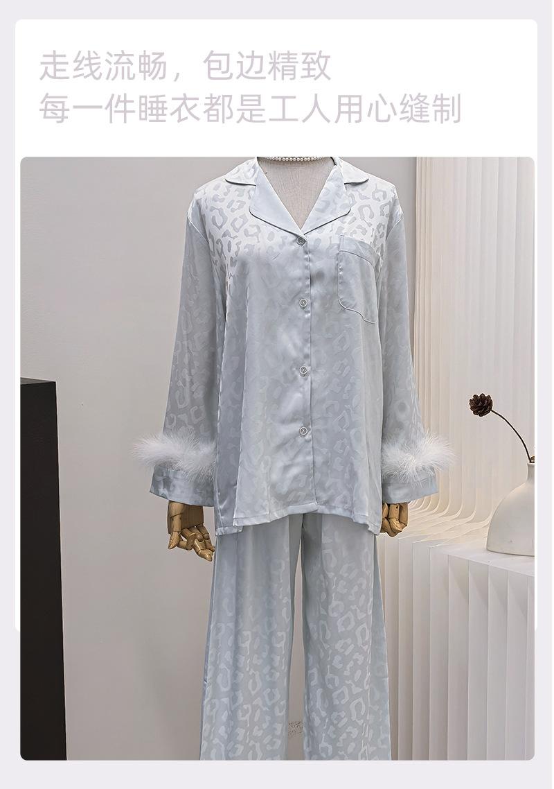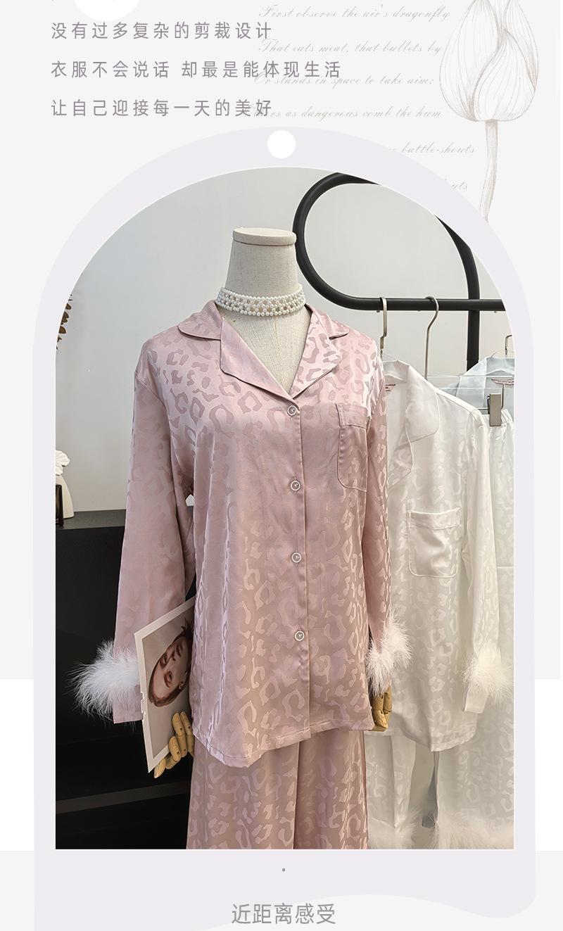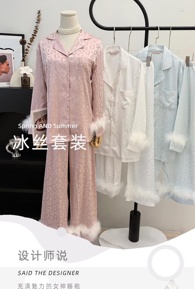 Traje de ropa para el hogar de seda de hielo de plumas de manga larga transfronterizo, solapa simple, ropa exterior para mujer, ropa para el hogar, pijama fino