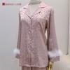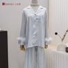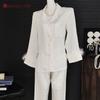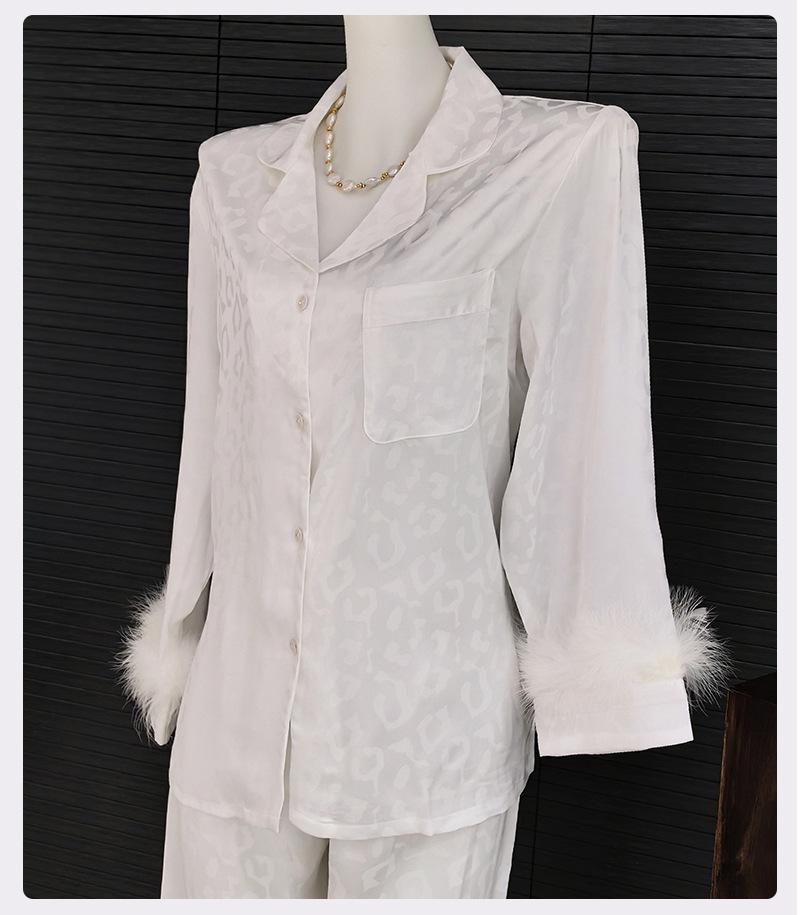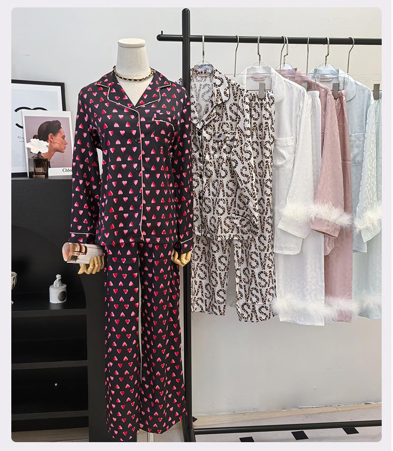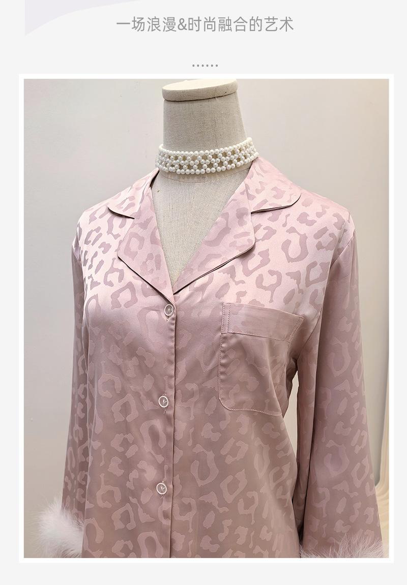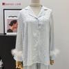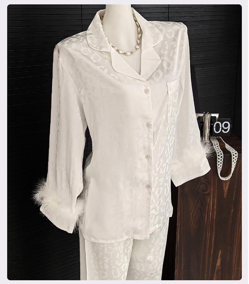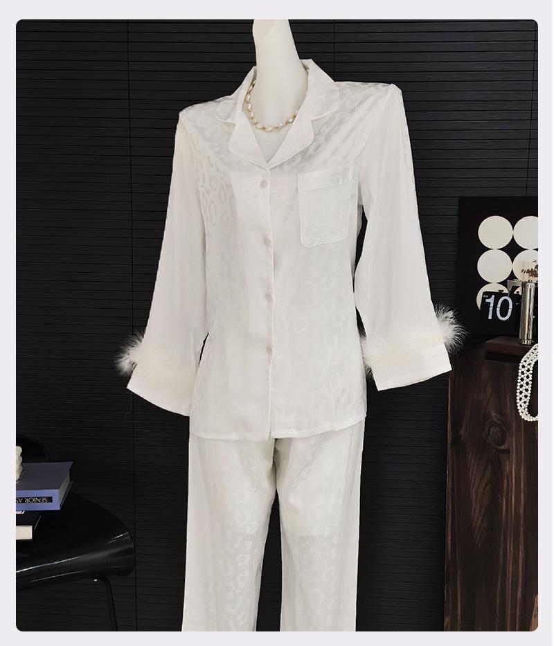 Traje de ropa para el hogar de seda de hielo de plumas de manga larga transfronterizo, solapa simple, ropa exterior para mujer, ropa para el hogar, pijama fino