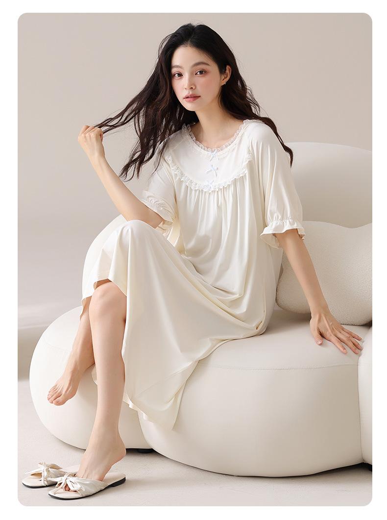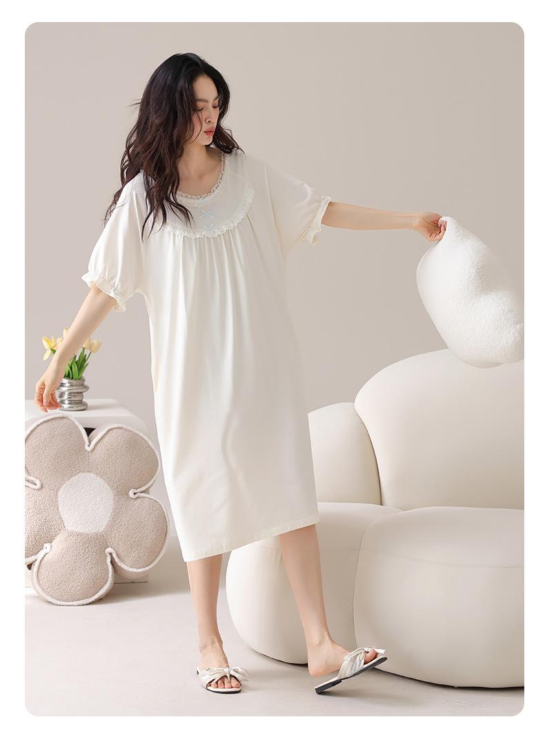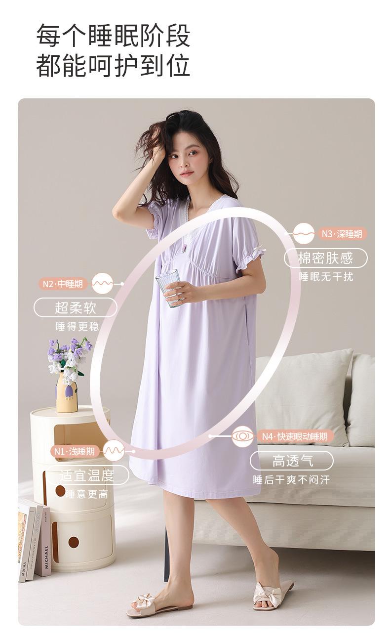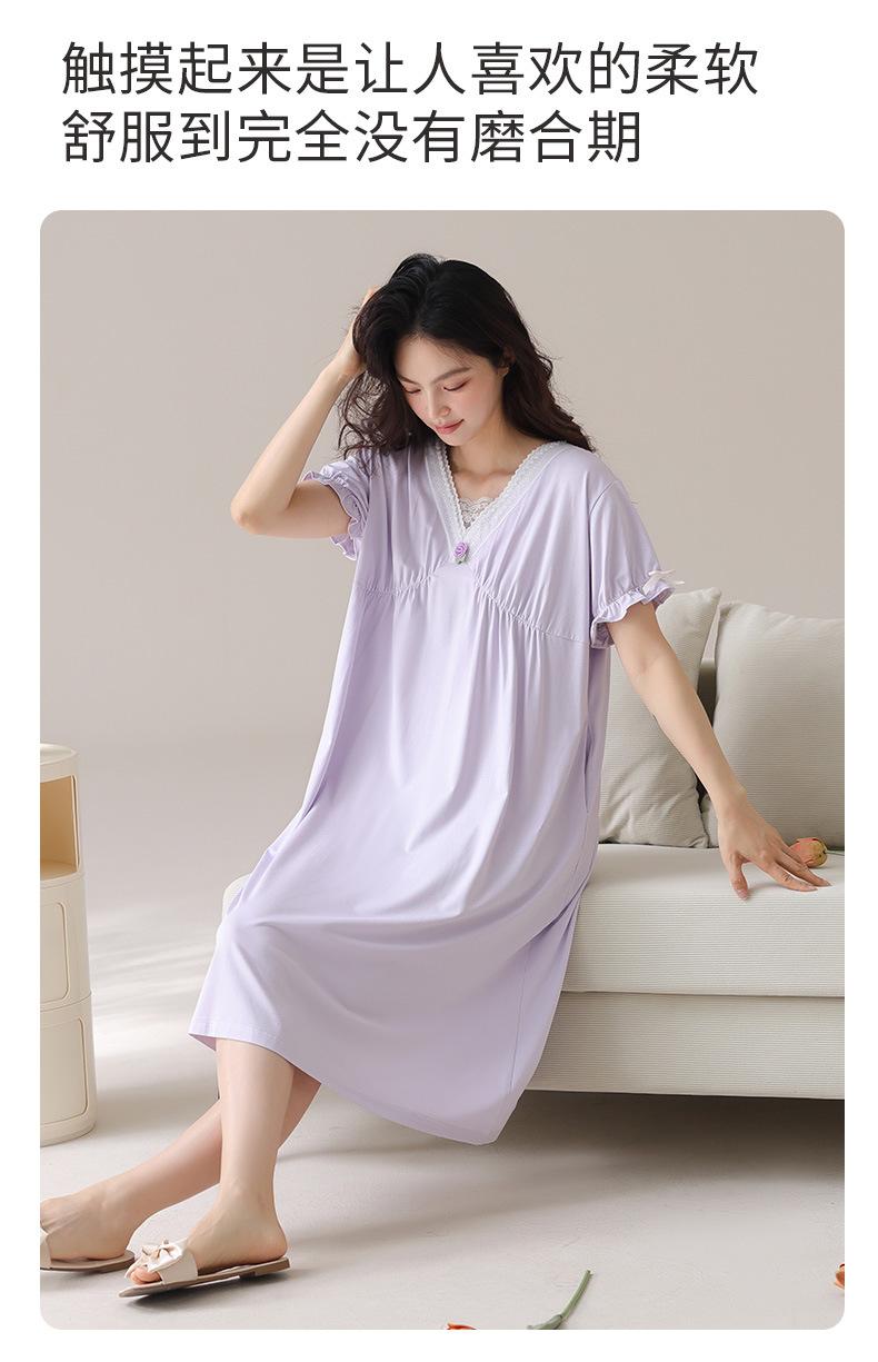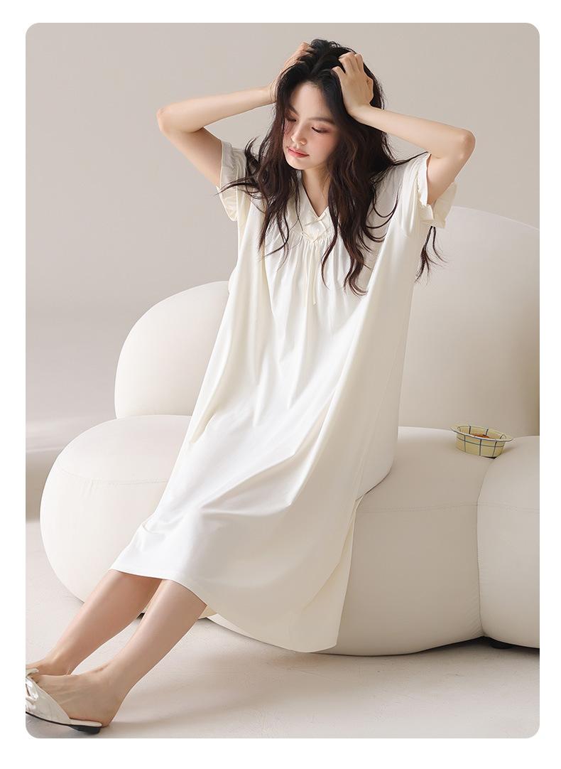 Camisón para Mujer Verano Modal Manga Corta Falda Midi Pijama Fresco de Alta Gama Suelto Talla Grande Se Puede Usar Fuera Ropa para el Hogar
