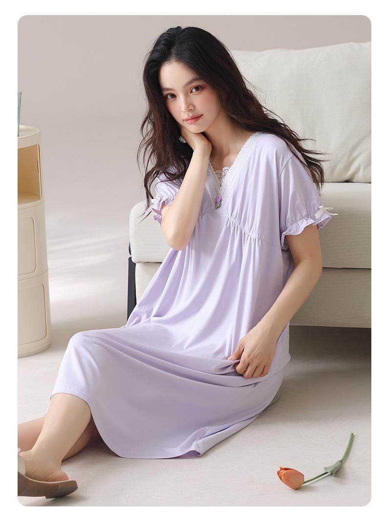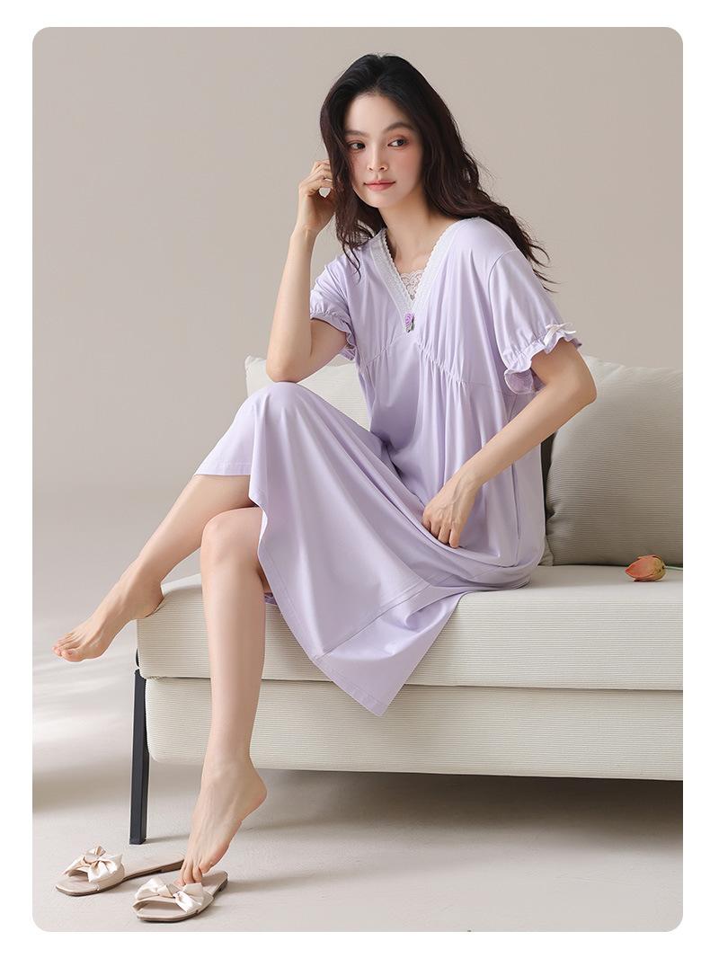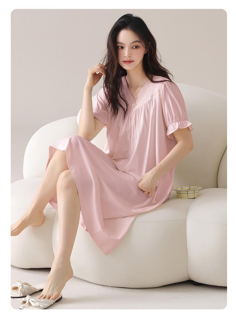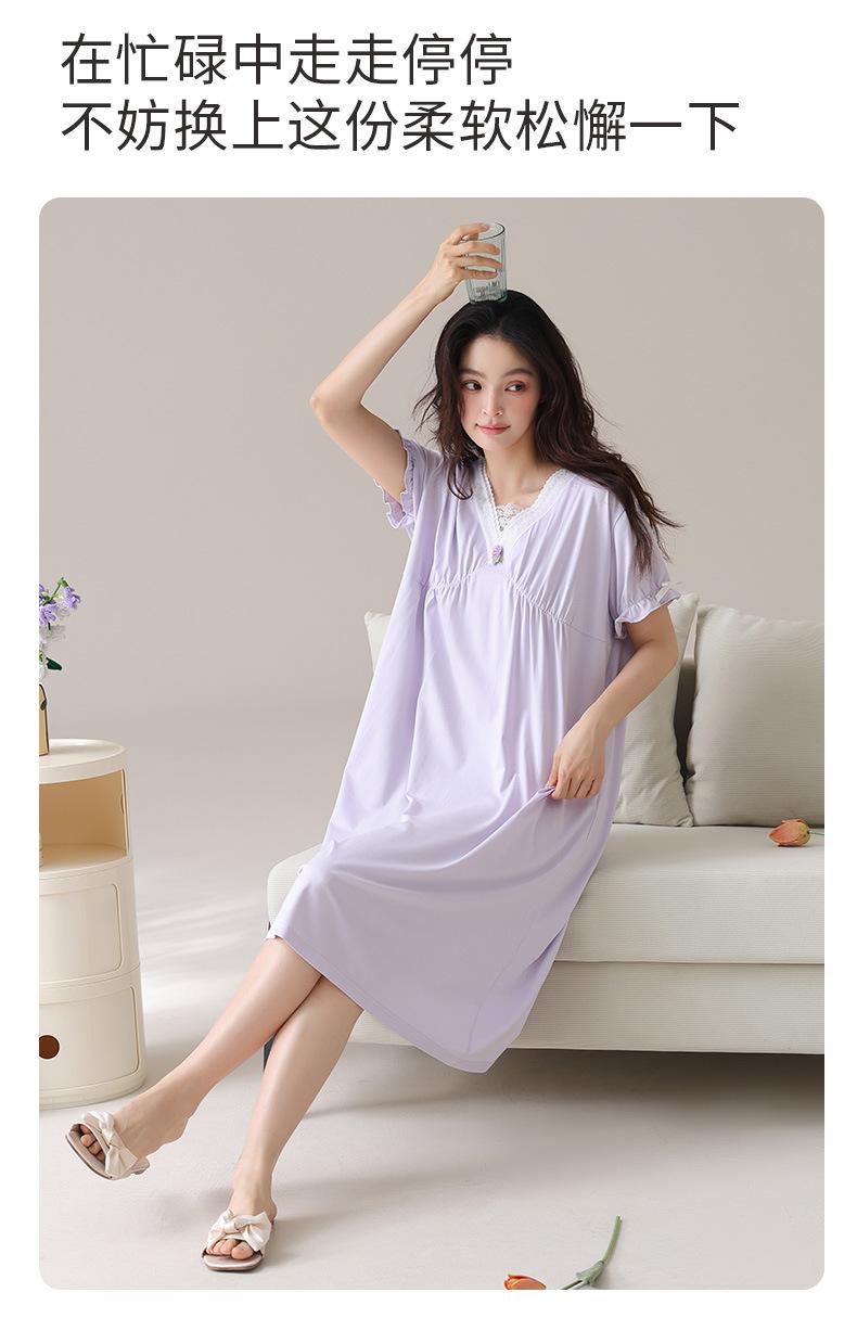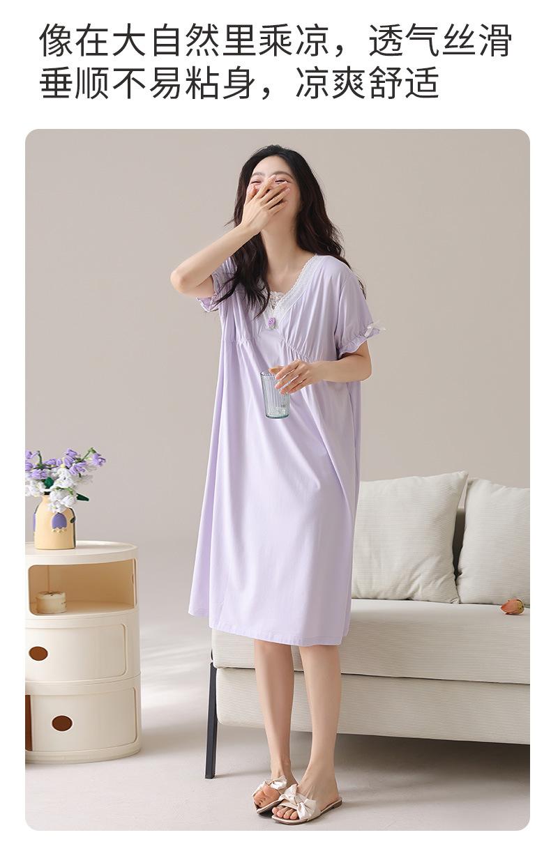 Camisón para Mujer Verano Modal Manga Corta Falda Midi Pijama Fresco de Alta Gama Suelto Talla Grande Se Puede Usar Fuera Ropa para el Hogar