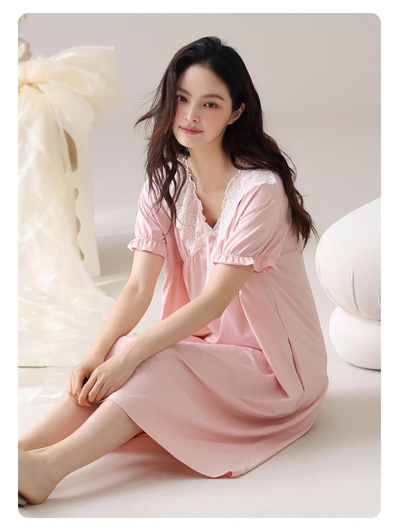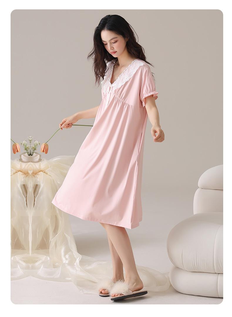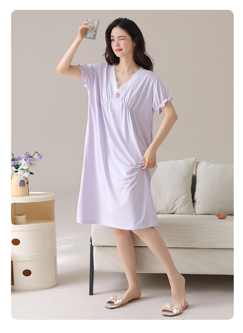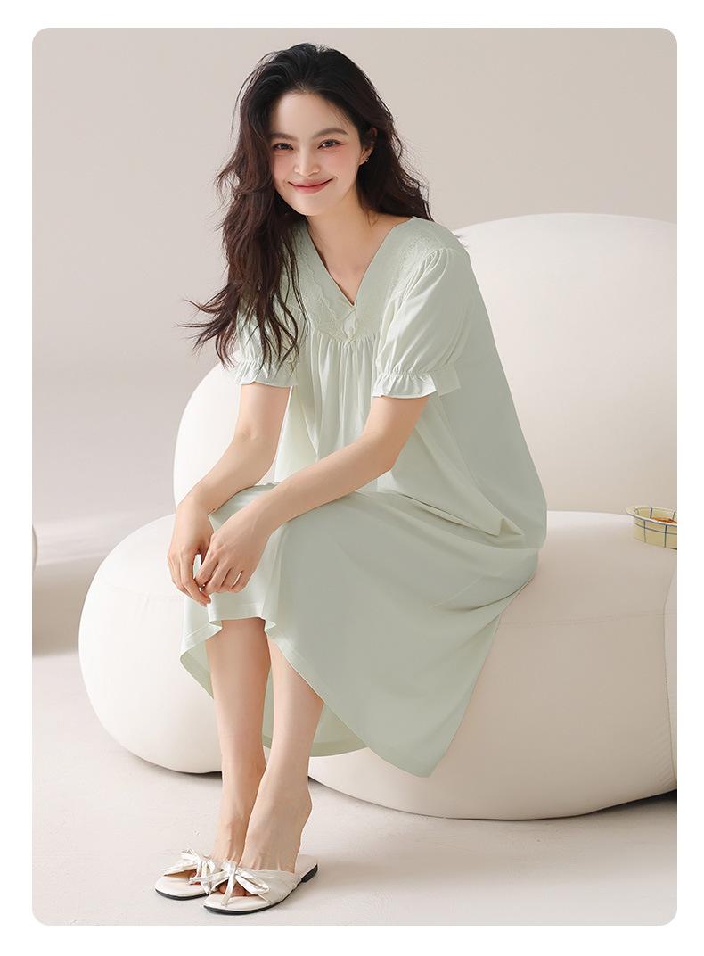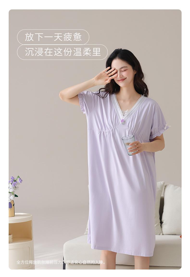 Camisón para Mujer Verano Modal Manga Corta Falda Midi Pijama Fresco de Alta Gama Suelto Talla Grande Se Puede Usar Fuera Ropa para el Hogar