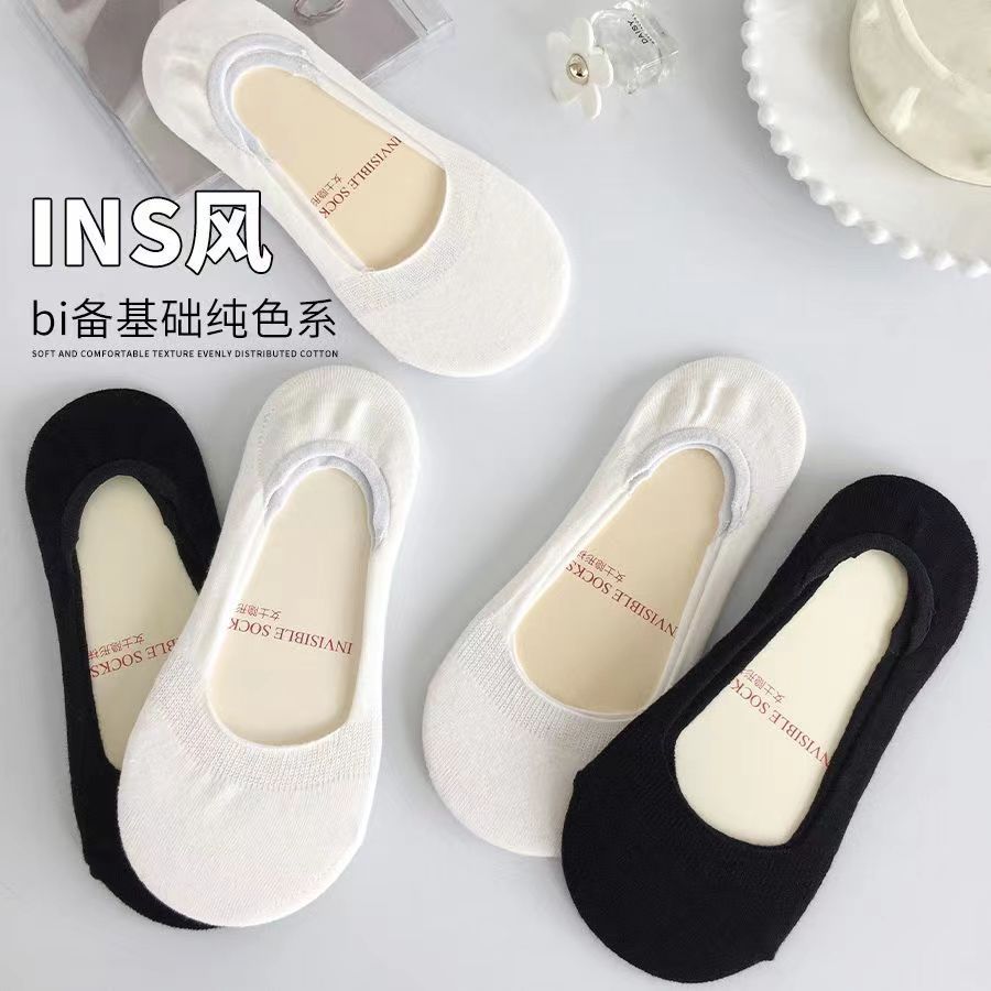 Calcetines de Barco Finos de Verano para Mujer, Antideslizantes, Invisibles, Calcetines Invisibles, Transpirables Versátiles de Algodón de Corte Bajo en Blanco y Negro