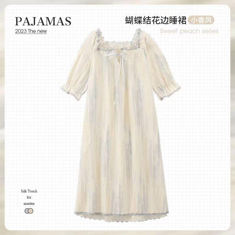 Gran Venta Pijamas de Manga Corta para Mujer Verano Camisón de Largo Medio Suelto Talla Grande Estilo Palacio Francés Vestido de Verano