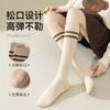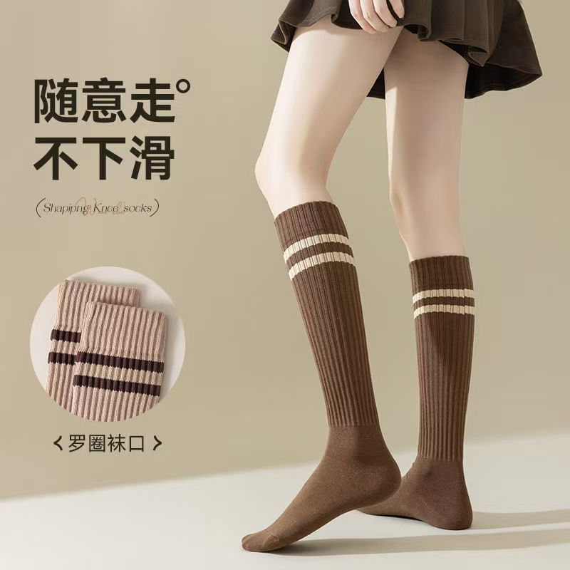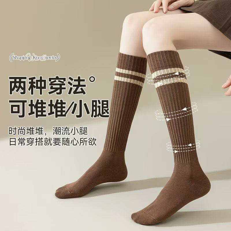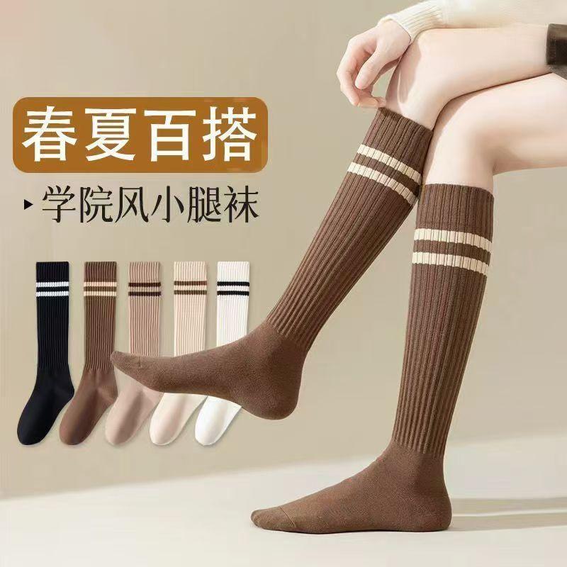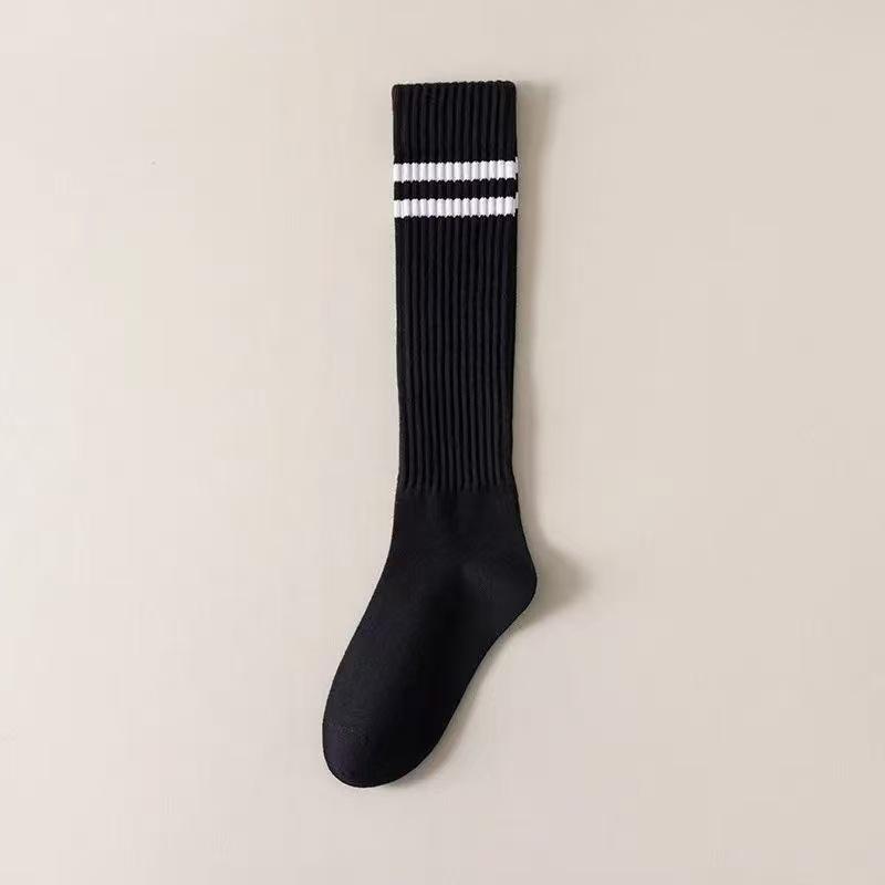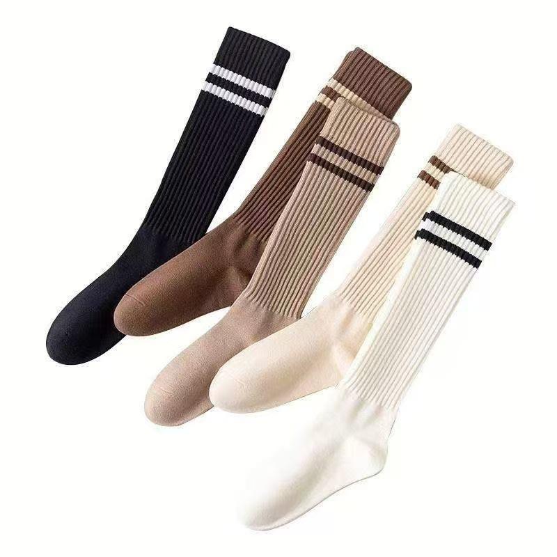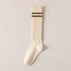 Calcetines de Media Caña para Mujer, Calcetines Largos de Media Caña, Estilo Universitario Moderno, Color Sólido, Dos Barras, Calcetines Altos Simples Versátiles, Calcetines Holgados de Algodón