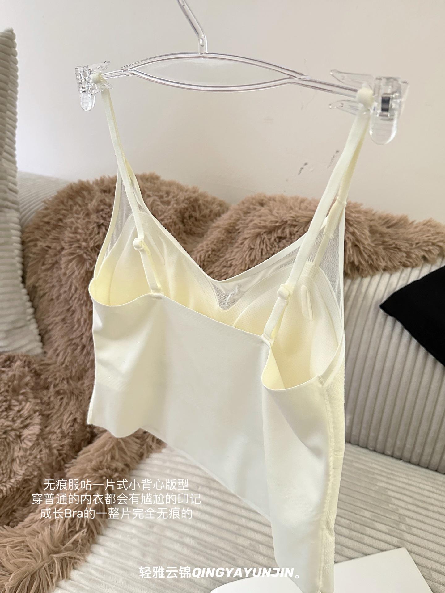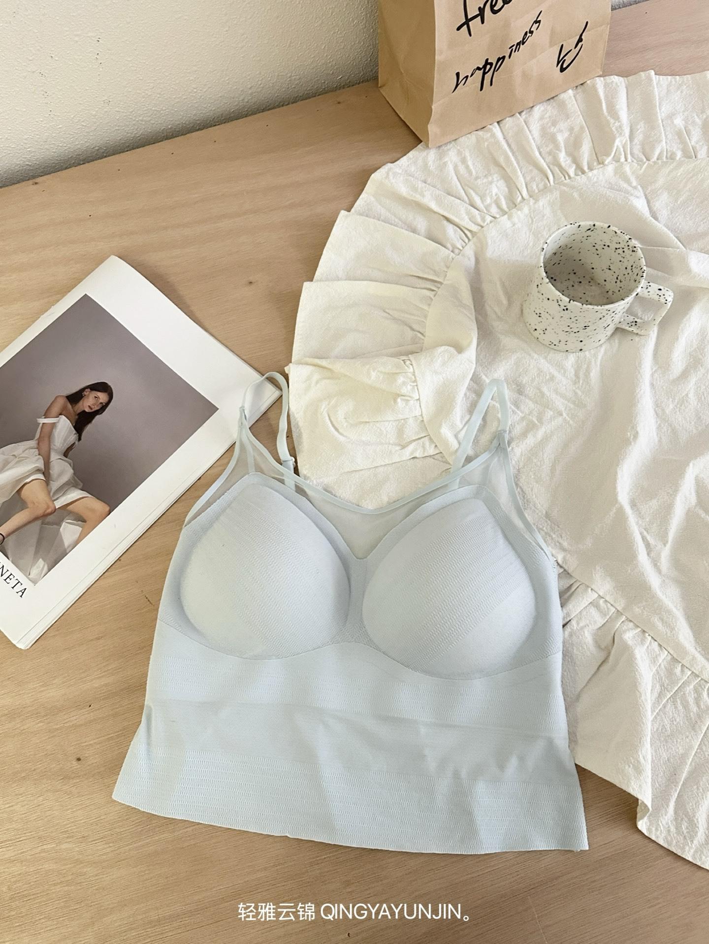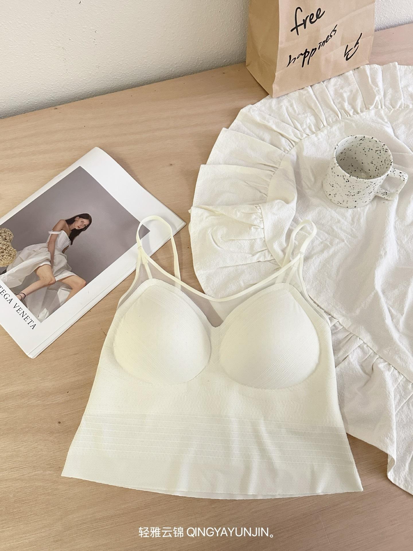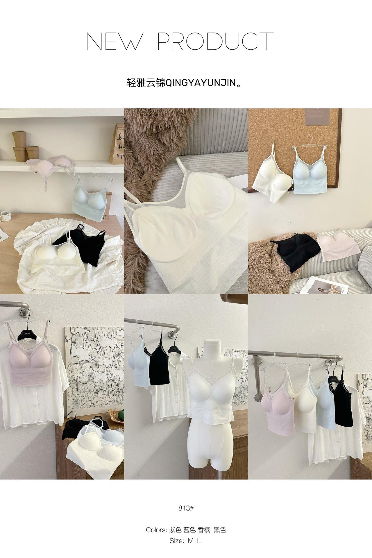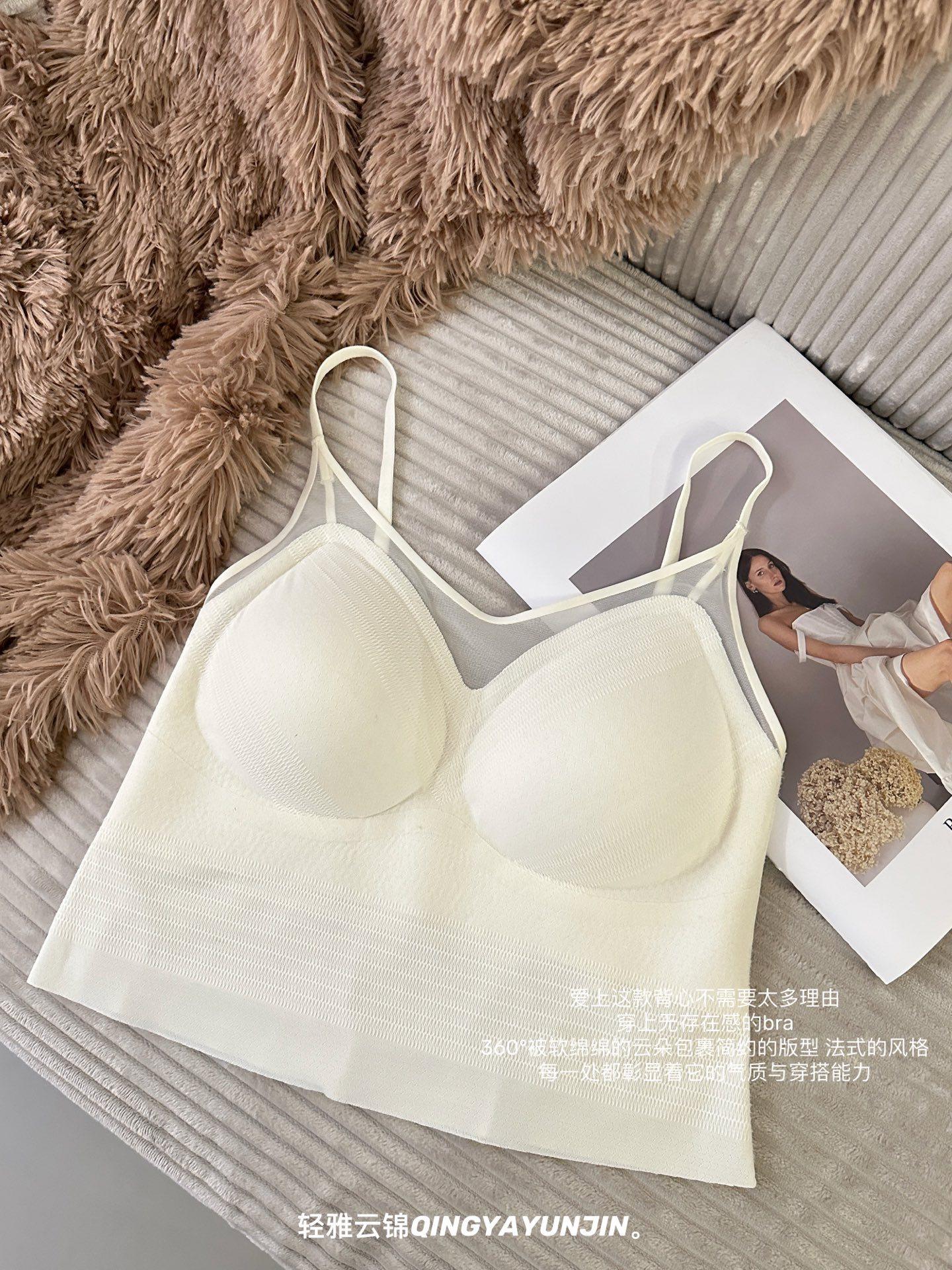 813# ligero elegante brocado nube verano sin costuras chaleco ropa interior minimalista profundo V malla copa de una pieza fija tirantes
