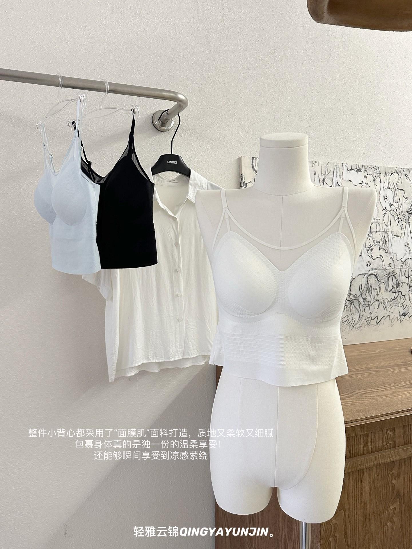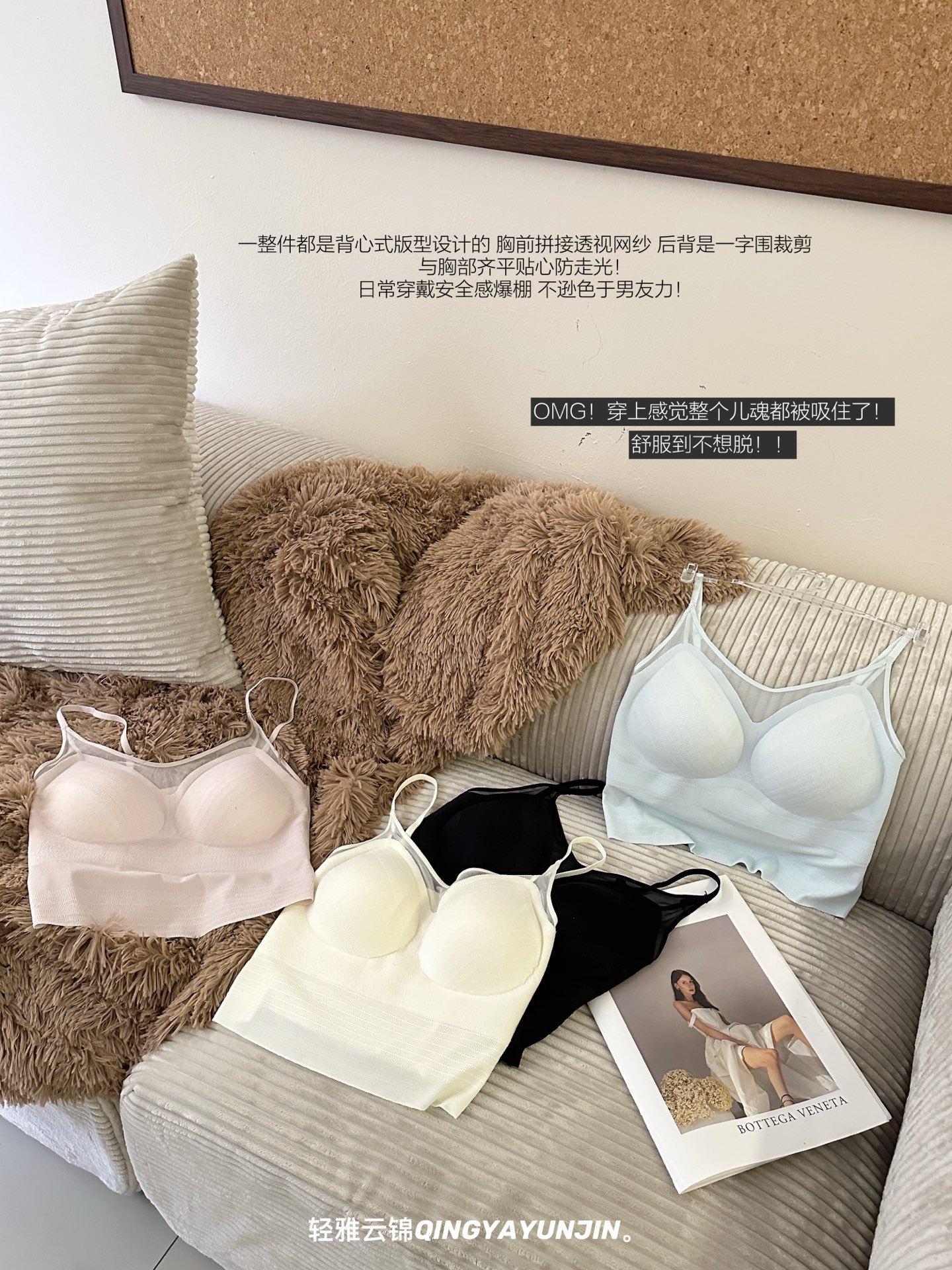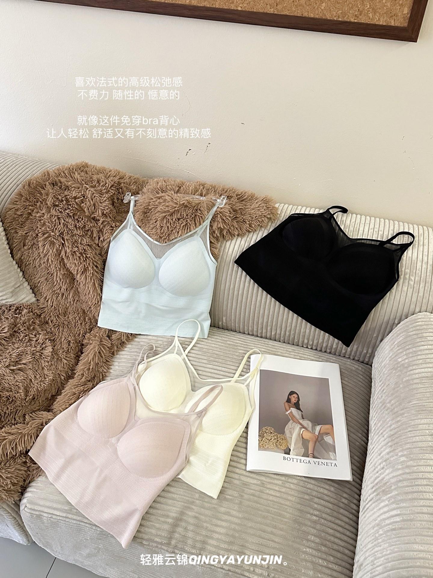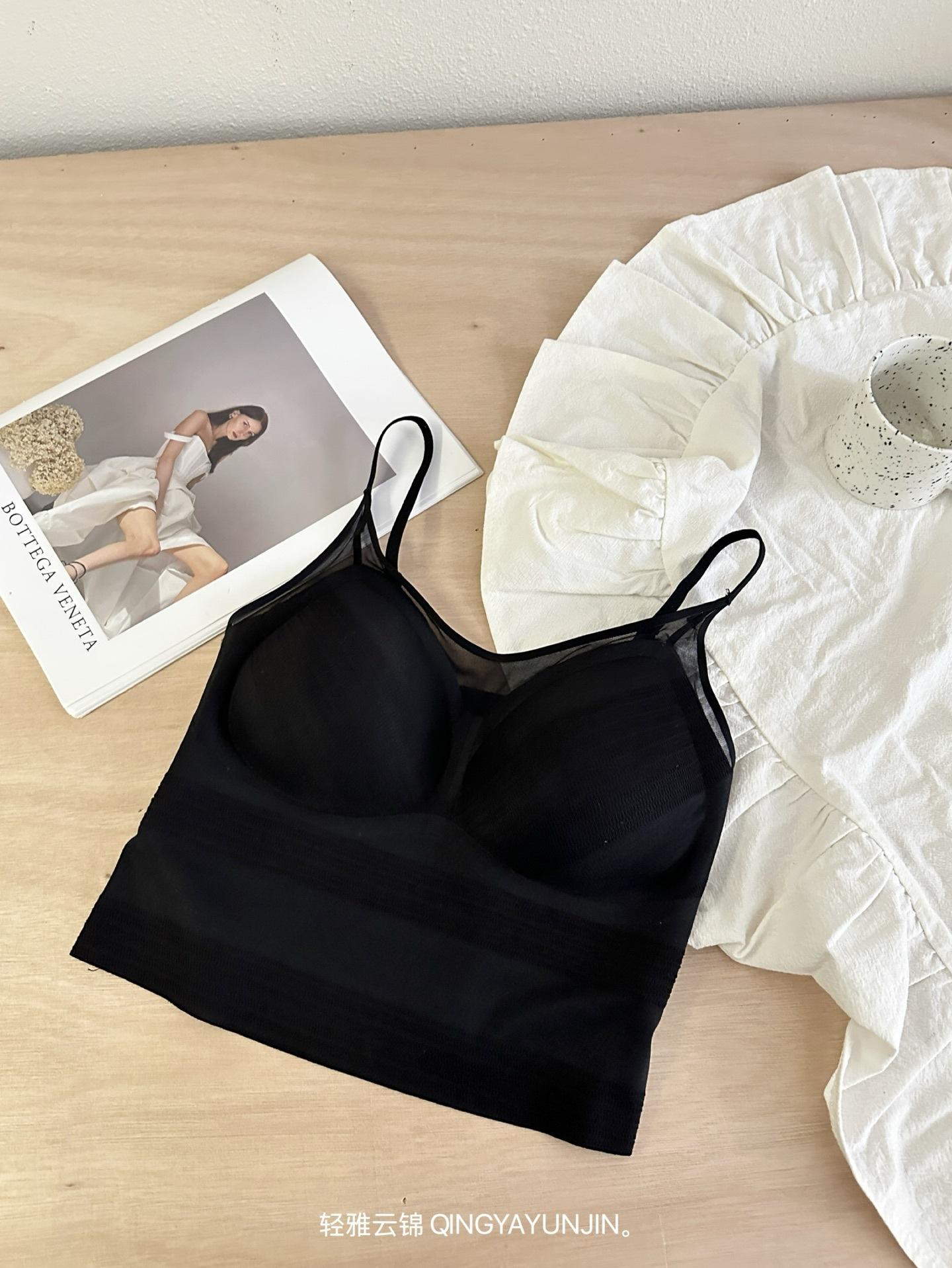 813# ligero elegante brocado nube verano sin costuras chaleco ropa interior minimalista profundo V malla copa de una pieza fija tirantes