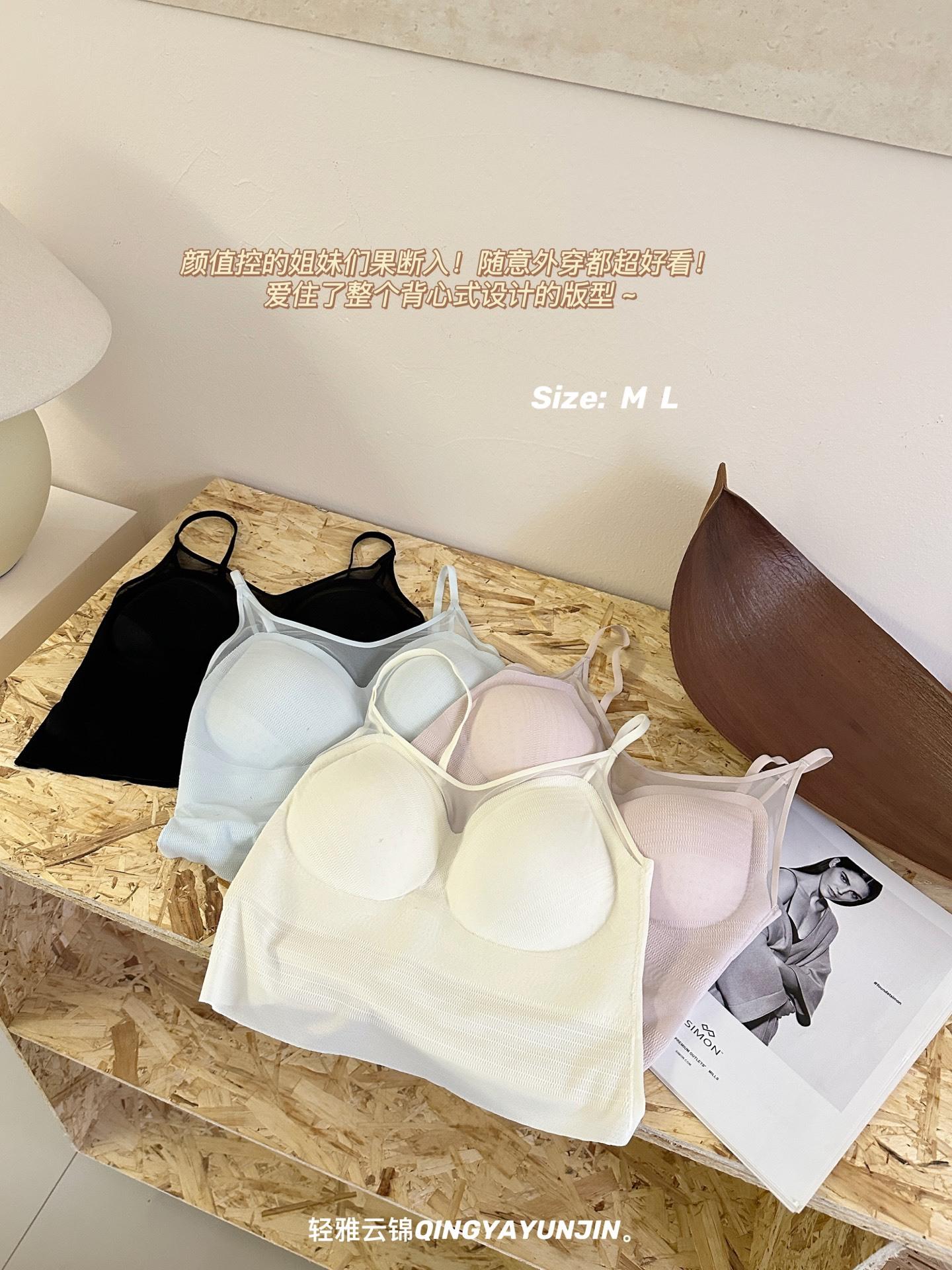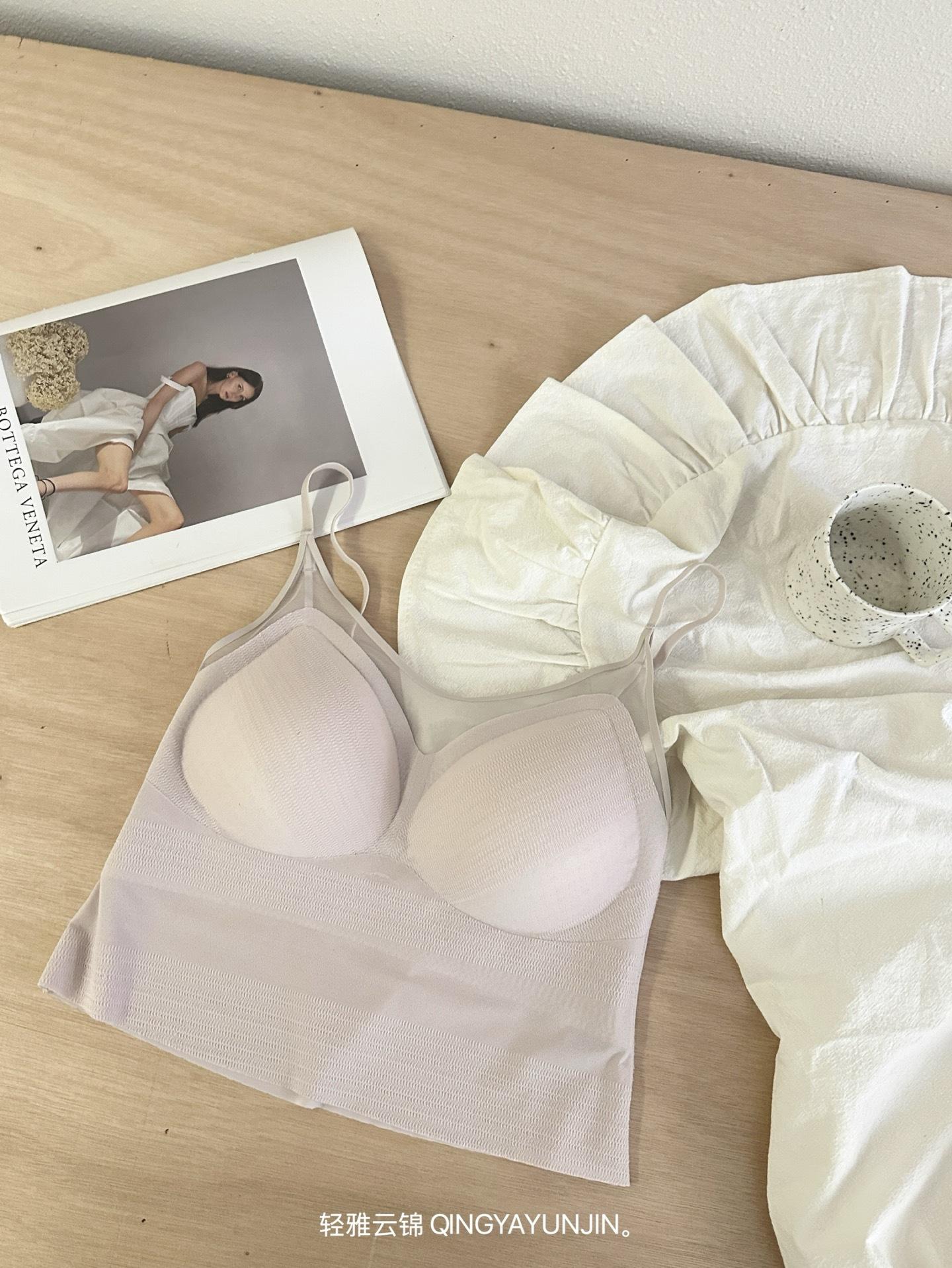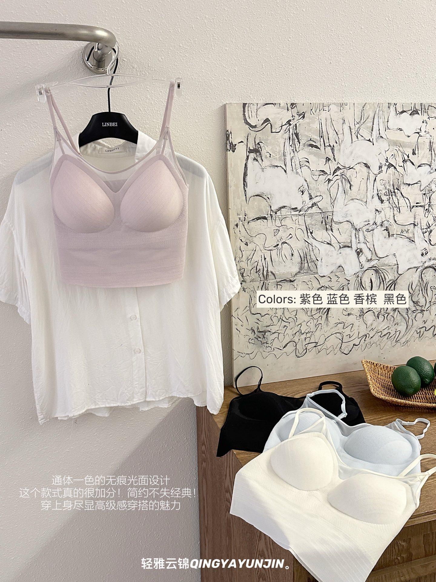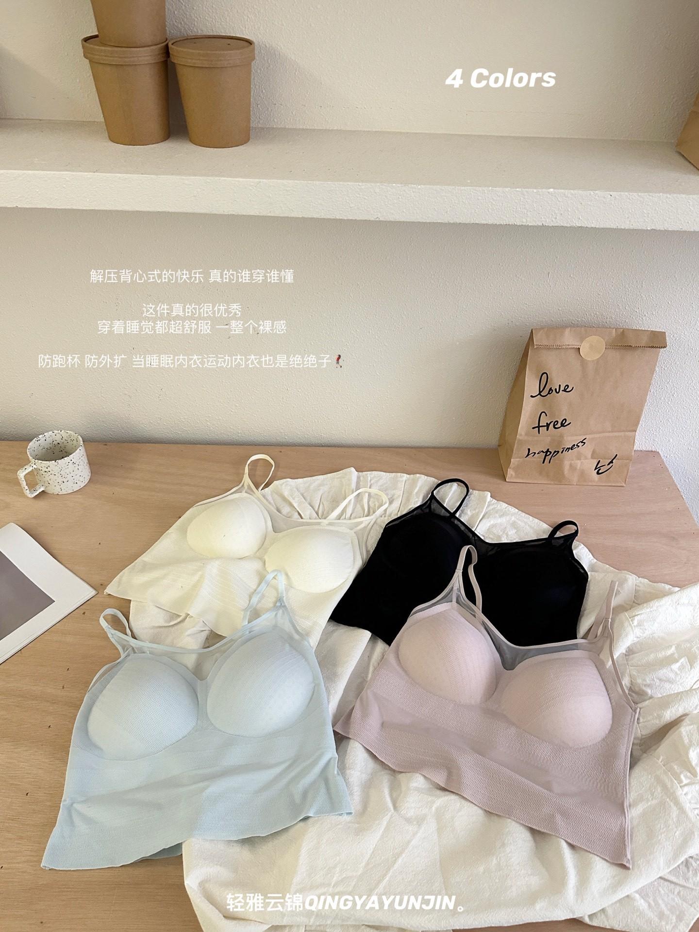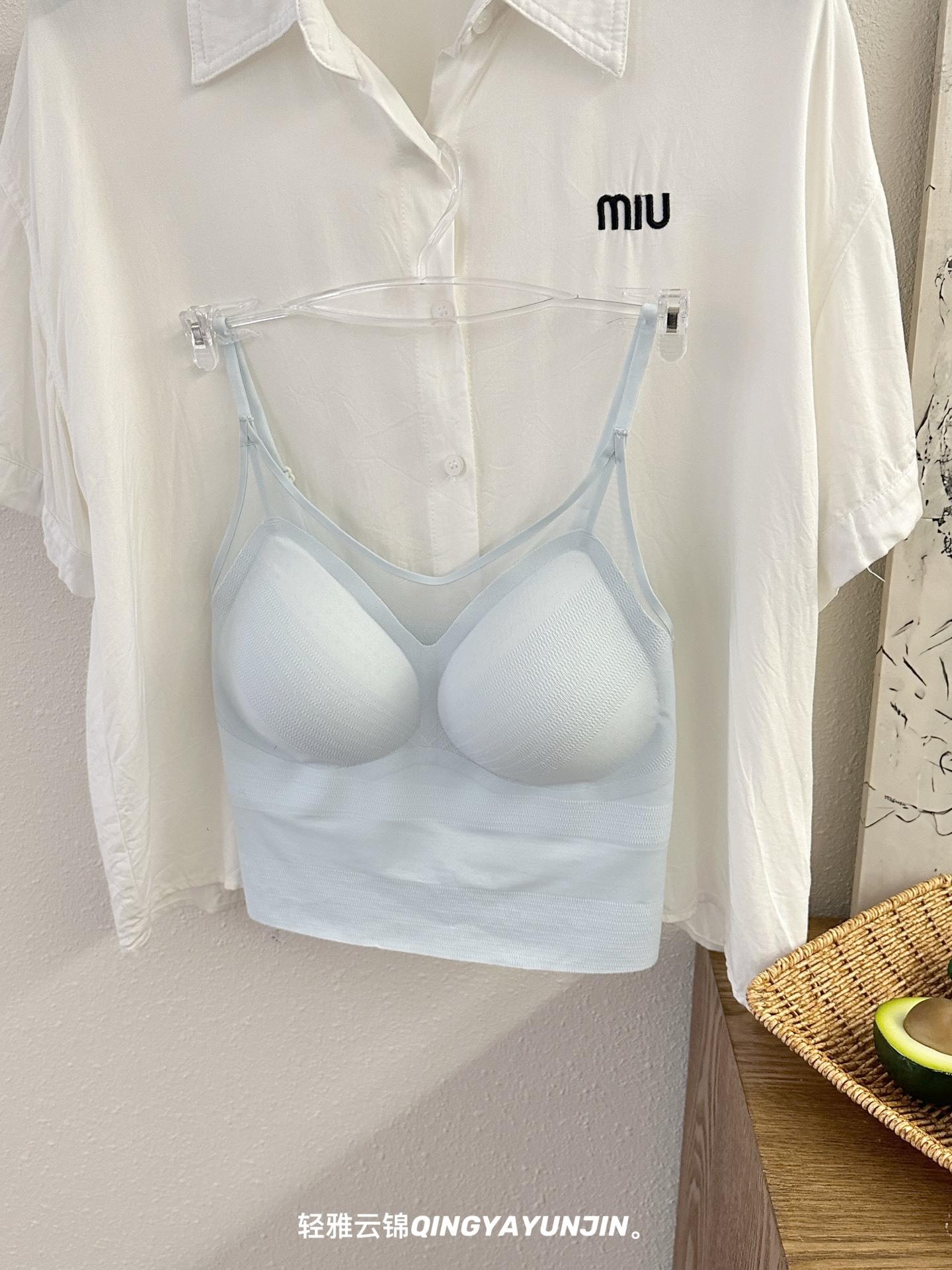 813# ligero elegante brocado nube verano sin costuras chaleco ropa interior minimalista profundo V malla copa de una pieza fija tirantes