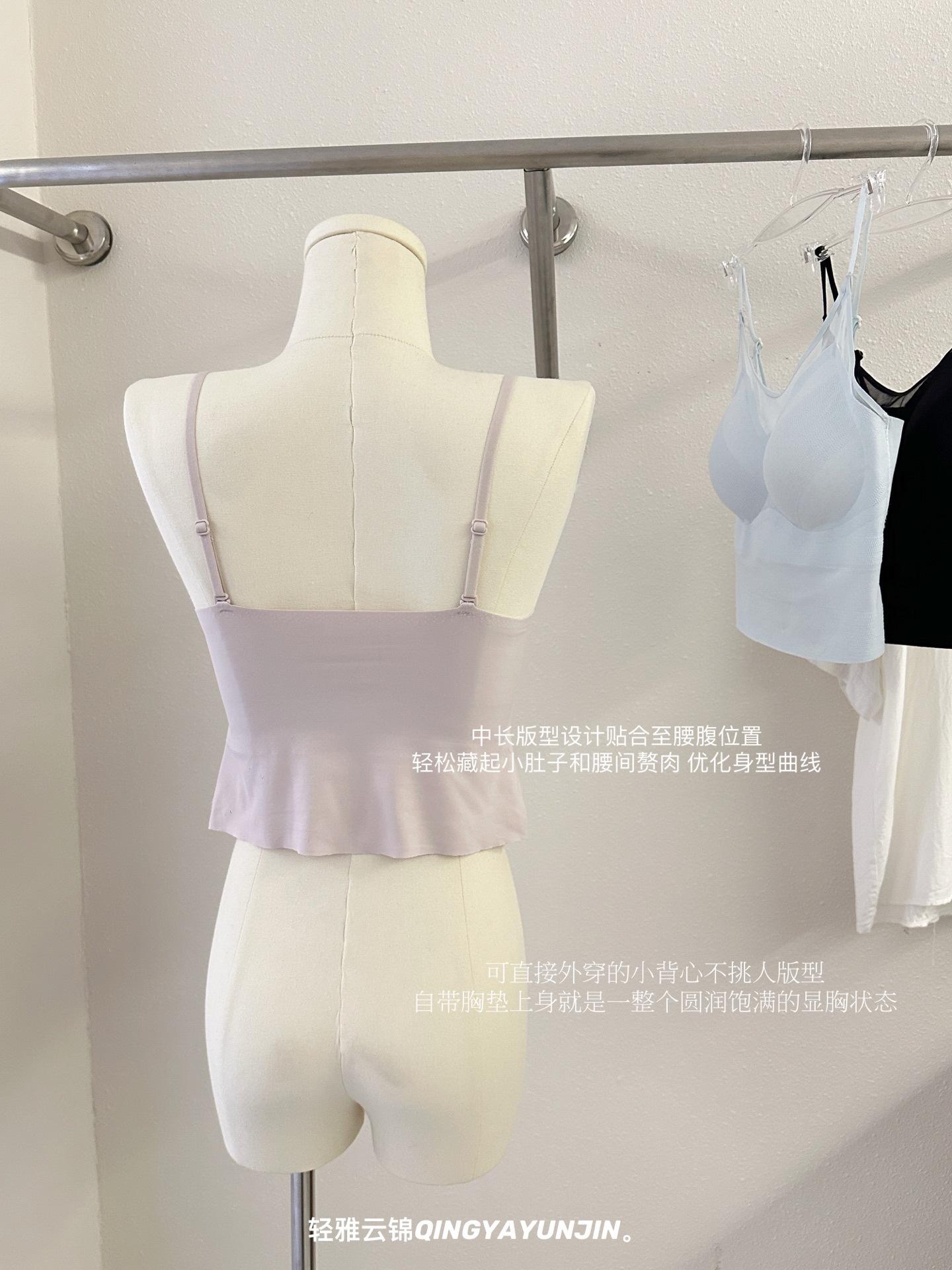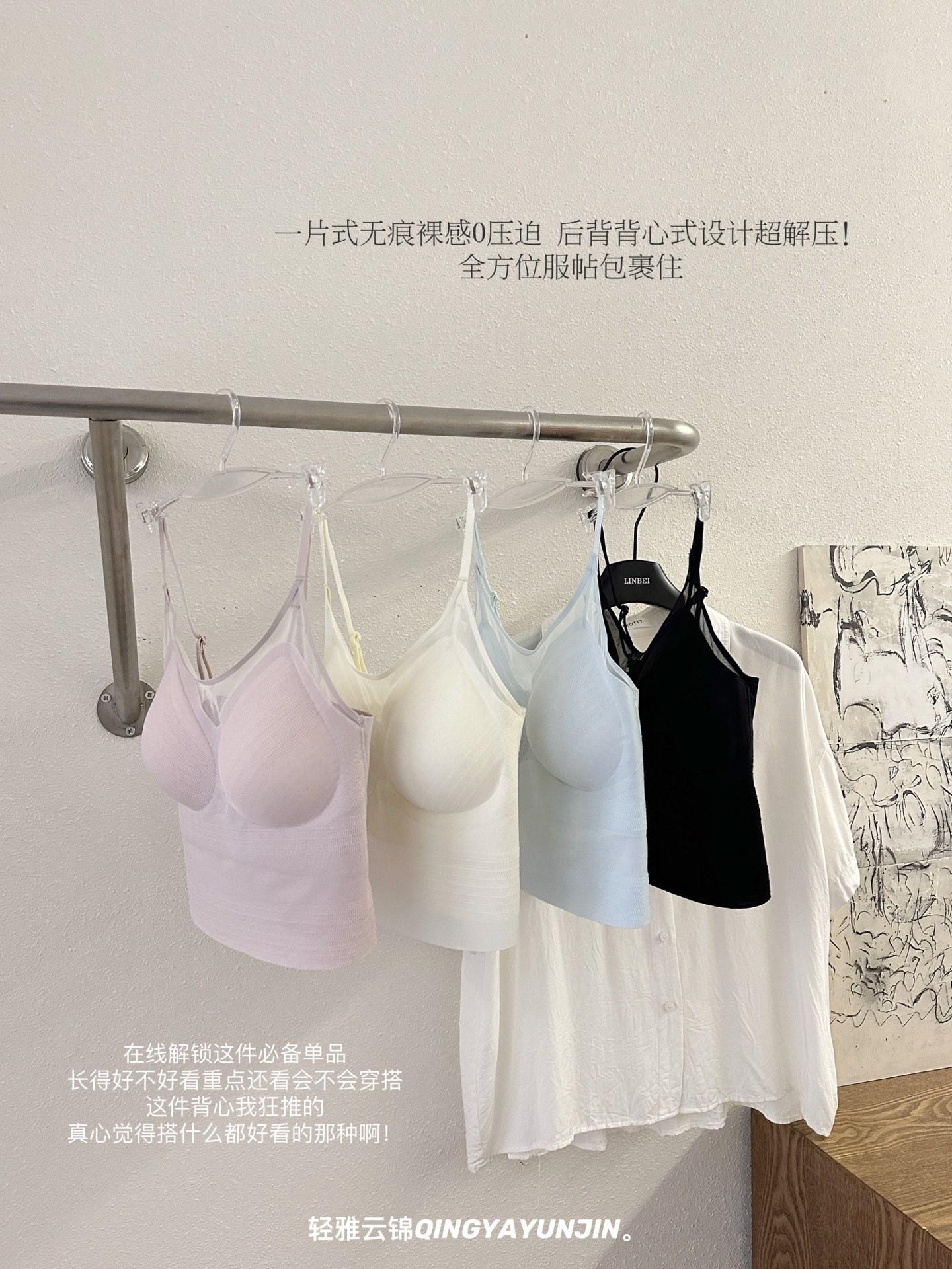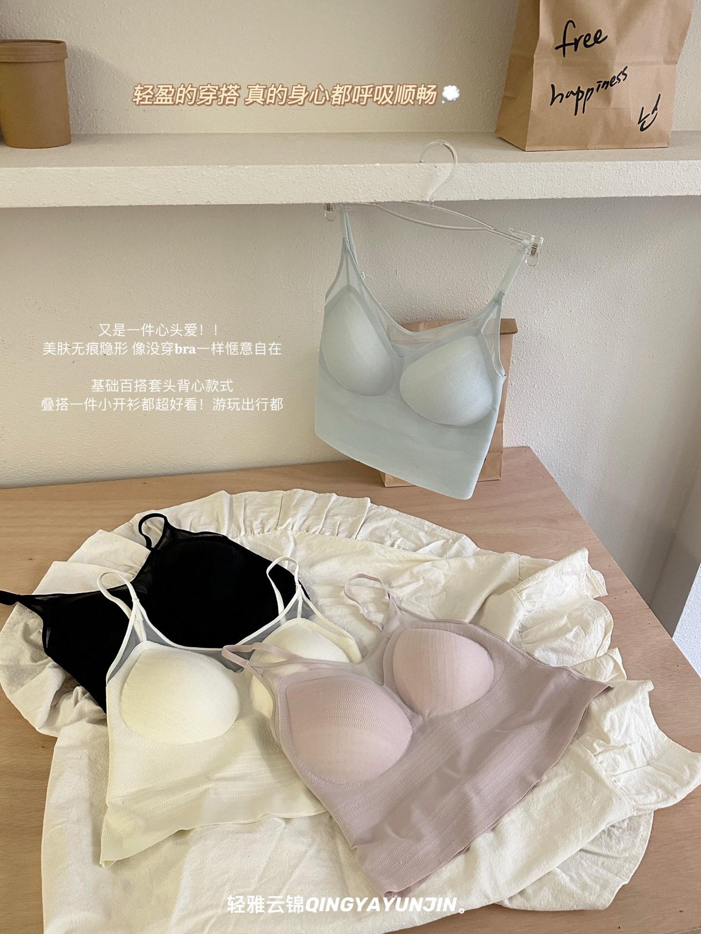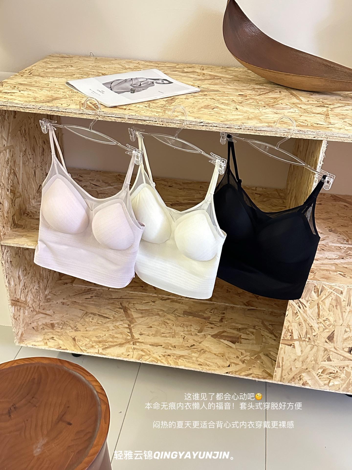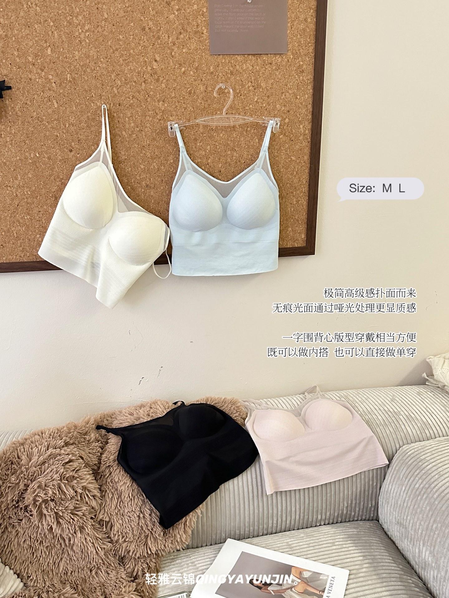 813# ligero elegante brocado nube verano sin costuras chaleco ropa interior minimalista profundo V malla copa de una pieza fija tirantes