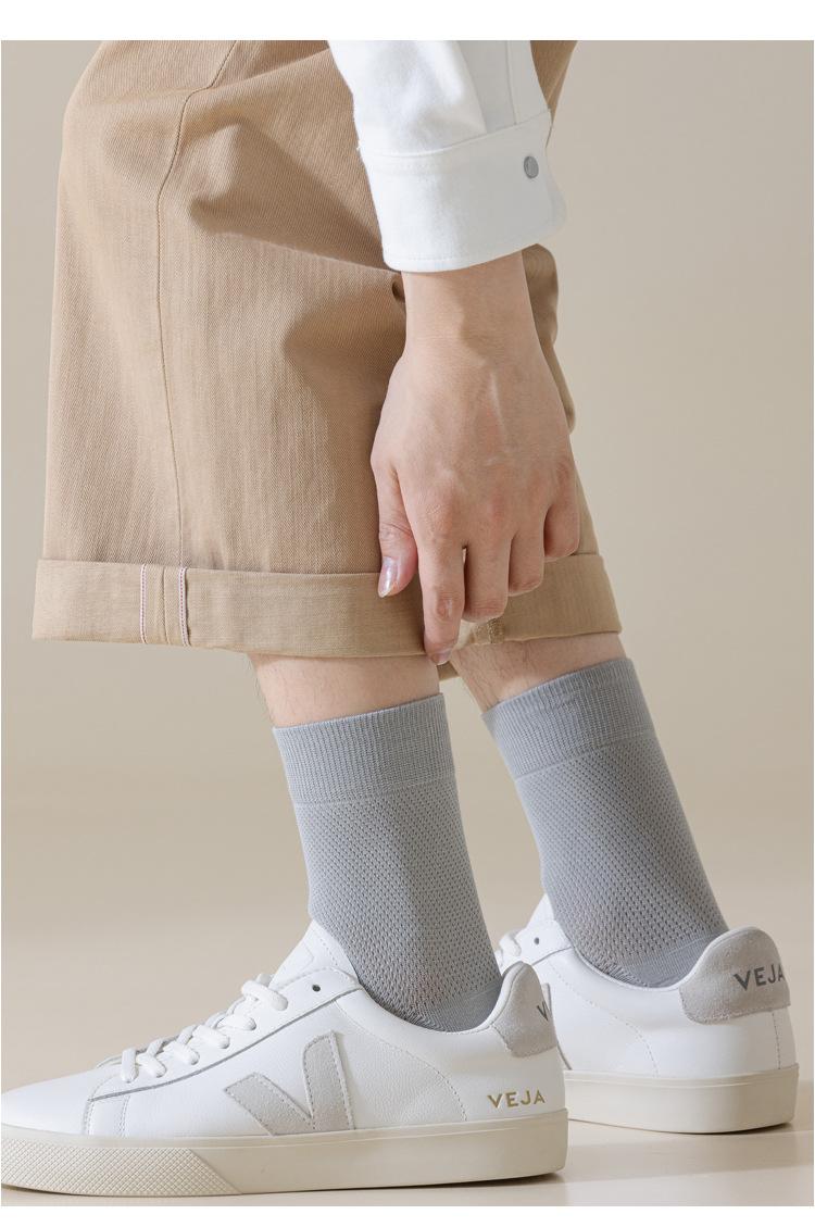 Calcetines Zhuji para hombre de media caña de verano de malla ultradelgados antibacterianos absorbe-sudor desodorantes transpirables casual de negocios calcetines para hombre marea