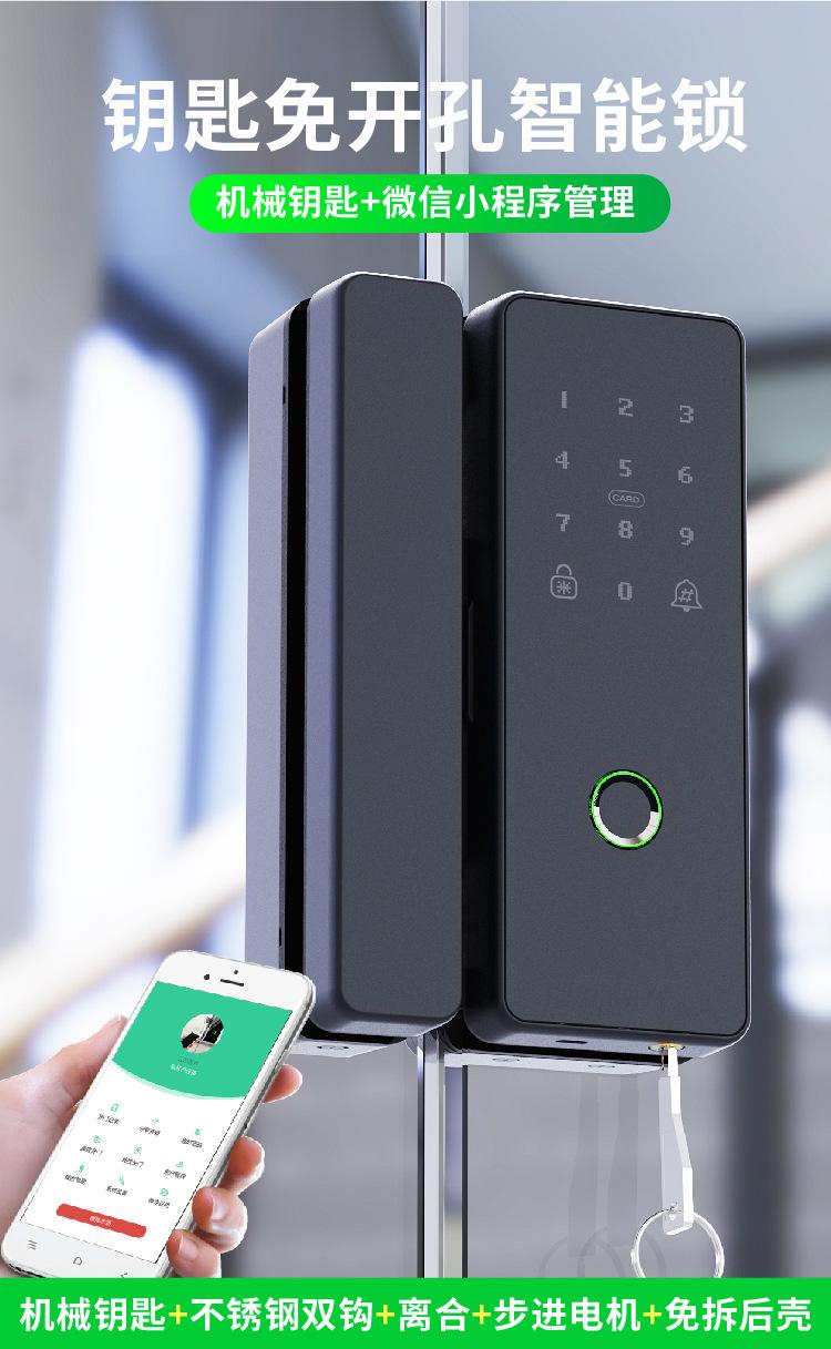Cerradura de huella digital para puerta de vidrio oficina cerradura inteligente con contraseña apertura libre con llave mecánica asistencia cerradura electrónica para puerta al por mayor