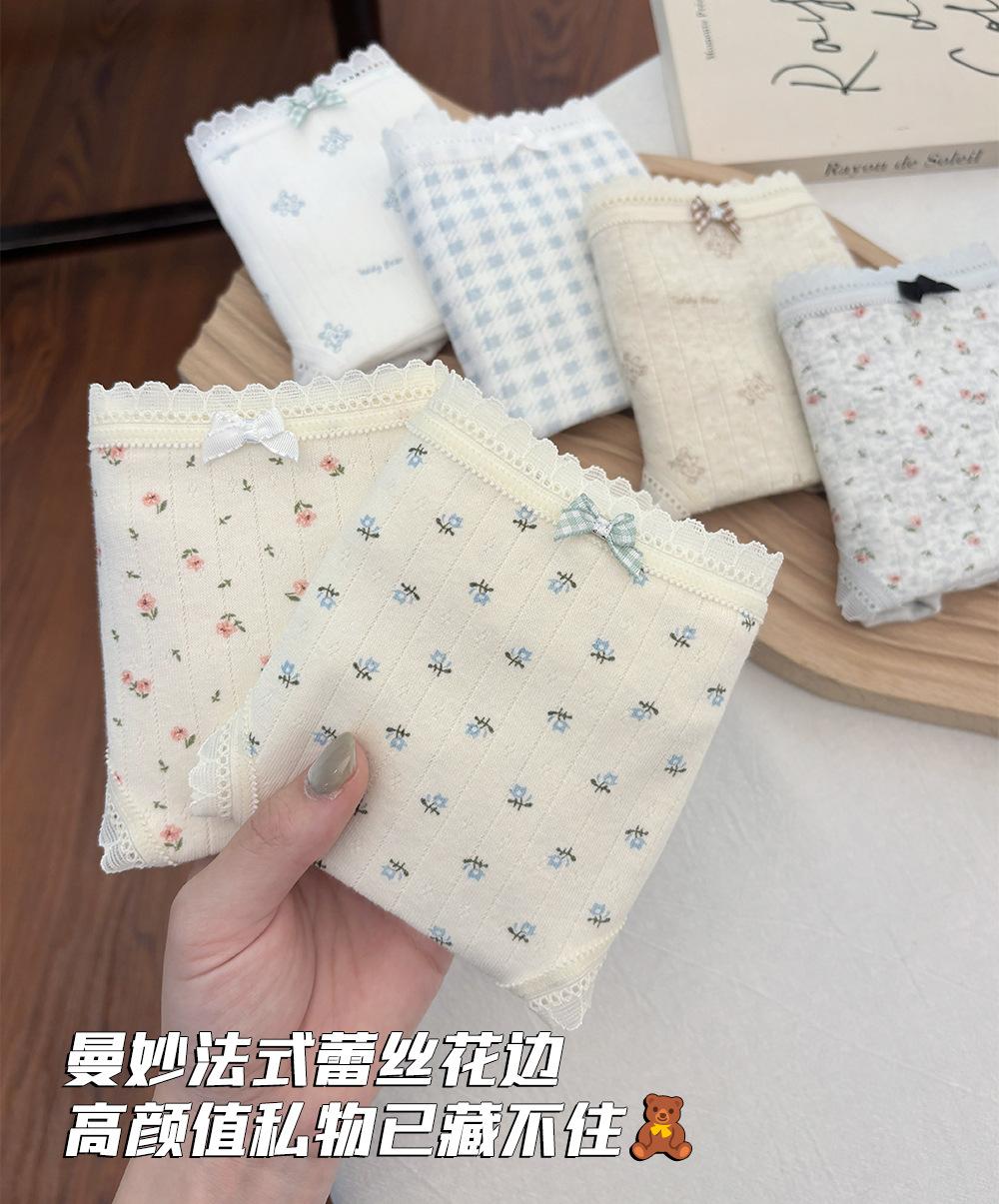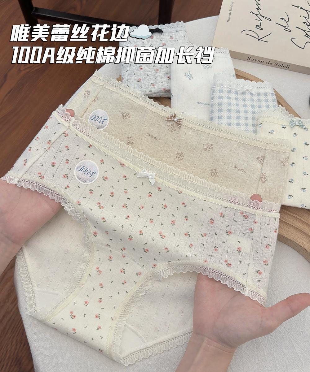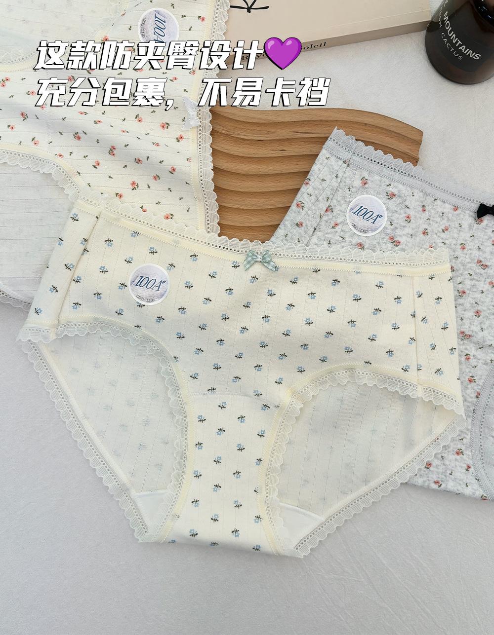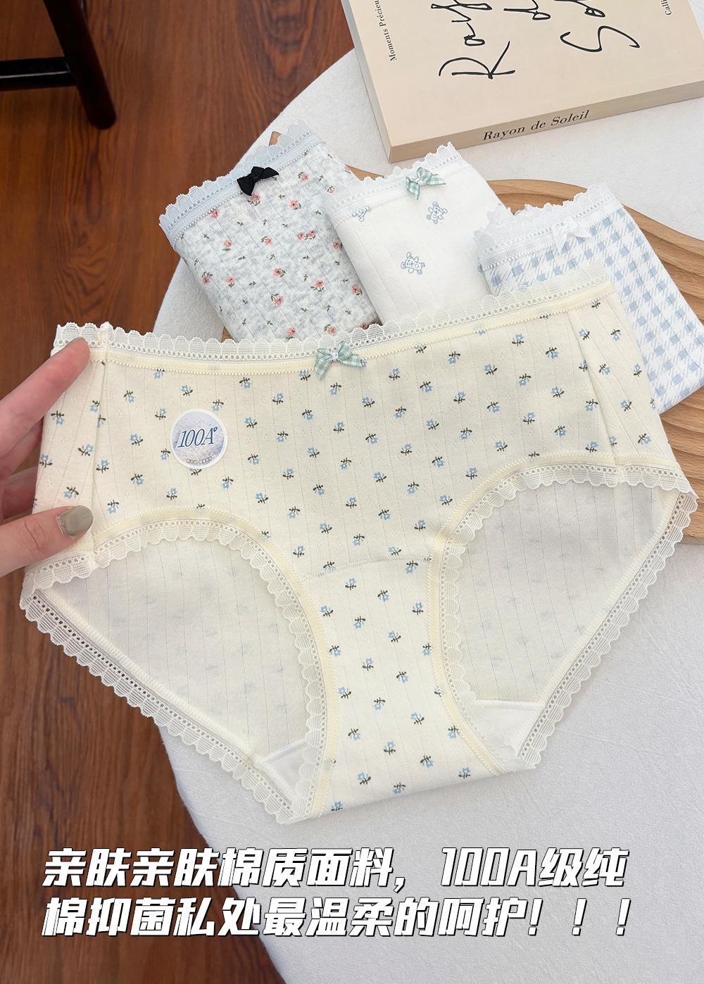 Nueva Ropa Interior Antibacterial de Algodón Extendido de 100A para Niñas Verano Encaje Cintura Media Algodón Shorts Triángulo Transpirable