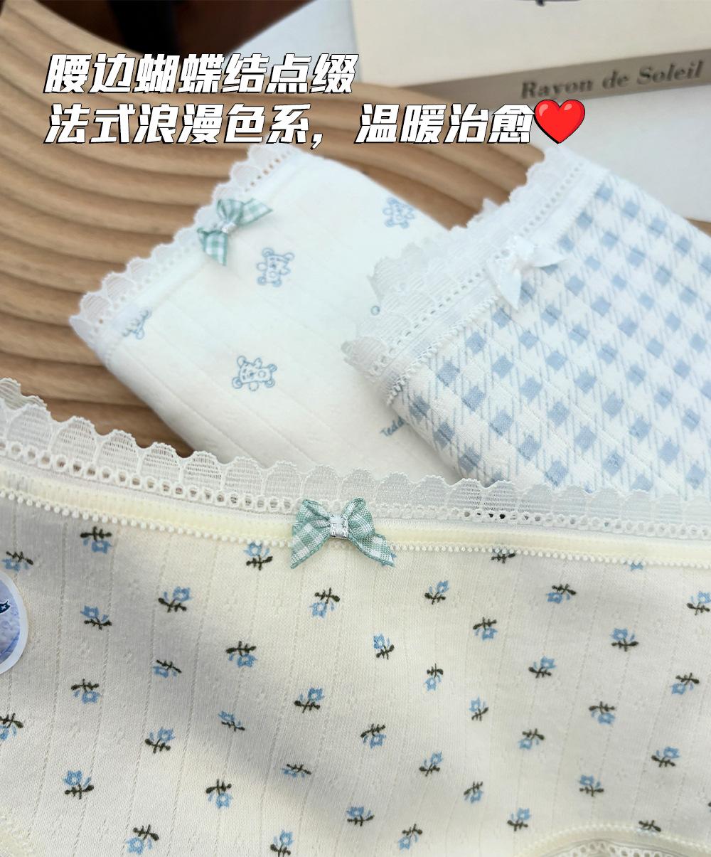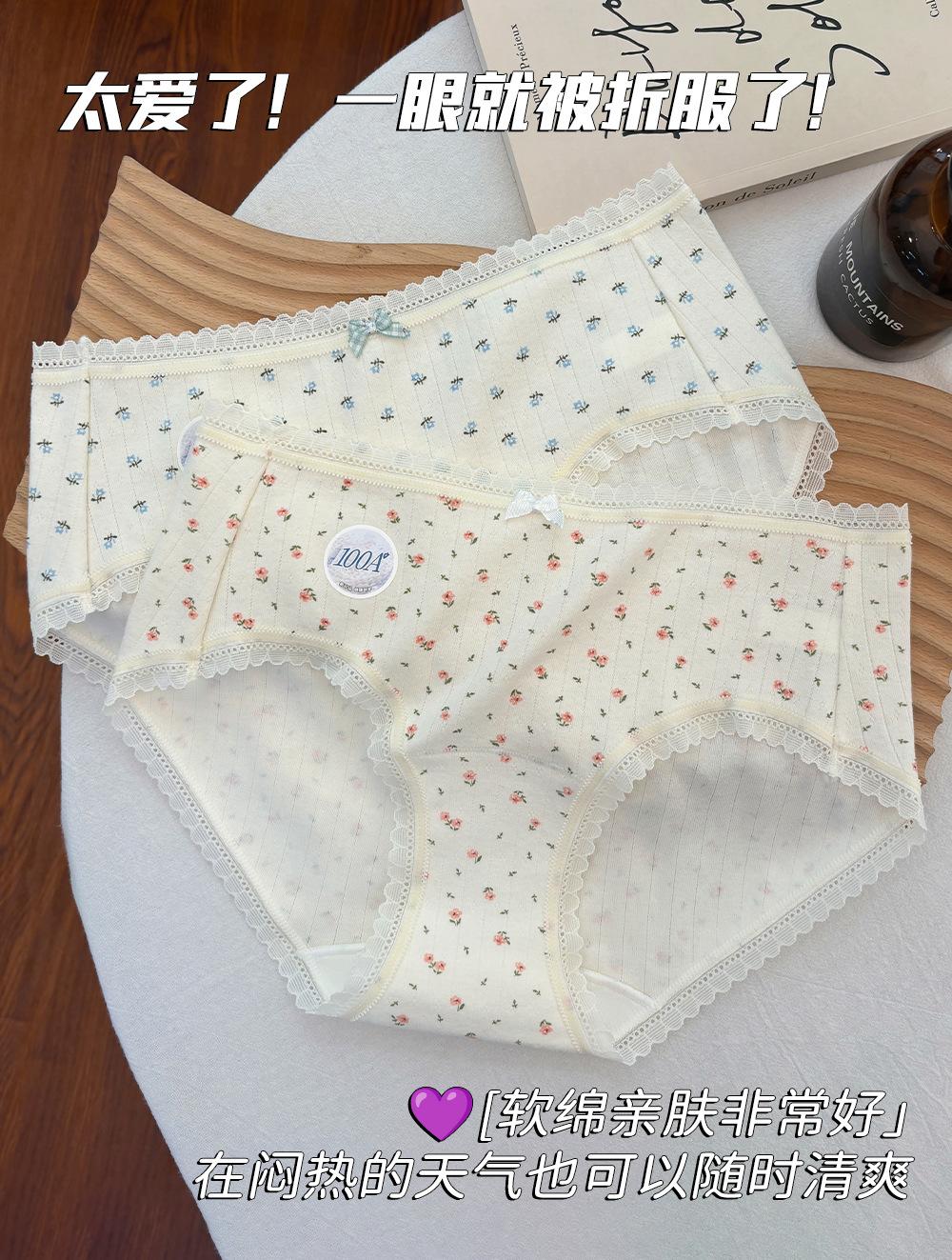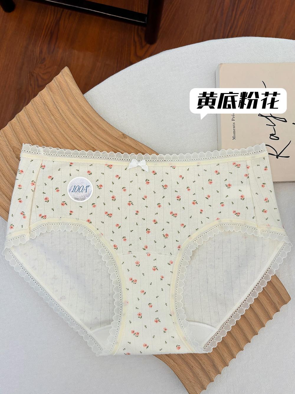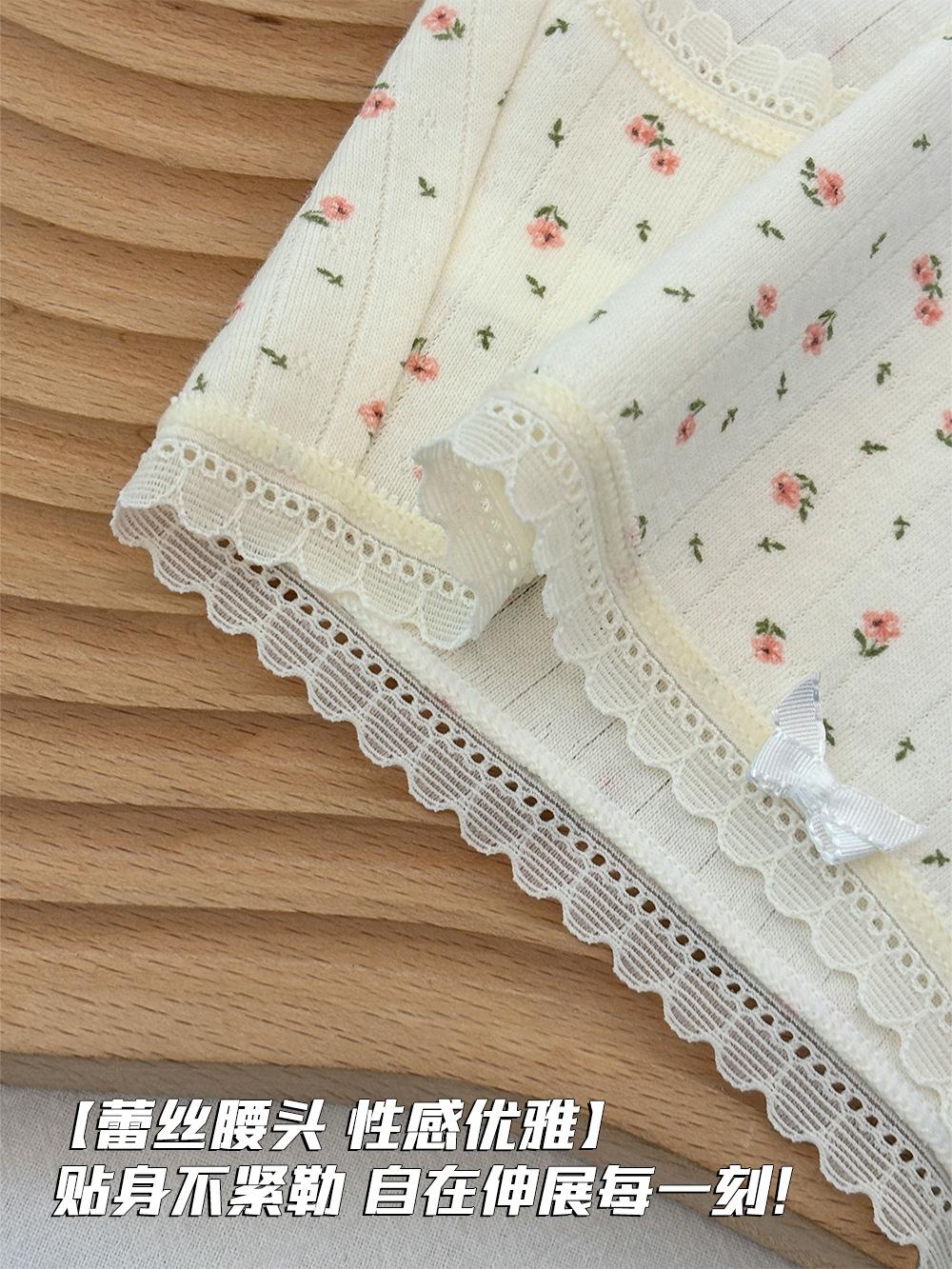 Nueva Ropa Interior Antibacterial de Algodón Extendido de 100A para Niñas Verano Encaje Cintura Media Algodón Shorts Triángulo Transpirable