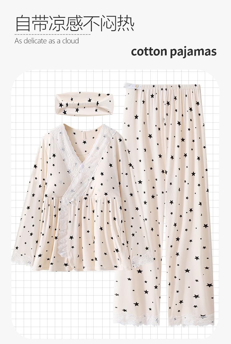 Pijama de Maternidad con Almohadillas para el Busto, Pijama de Maternidad Fino y Fresco de Verano, Set de Lactancia, Lactancia Postparto, Diadema para el Cabello, Período de Embarazo