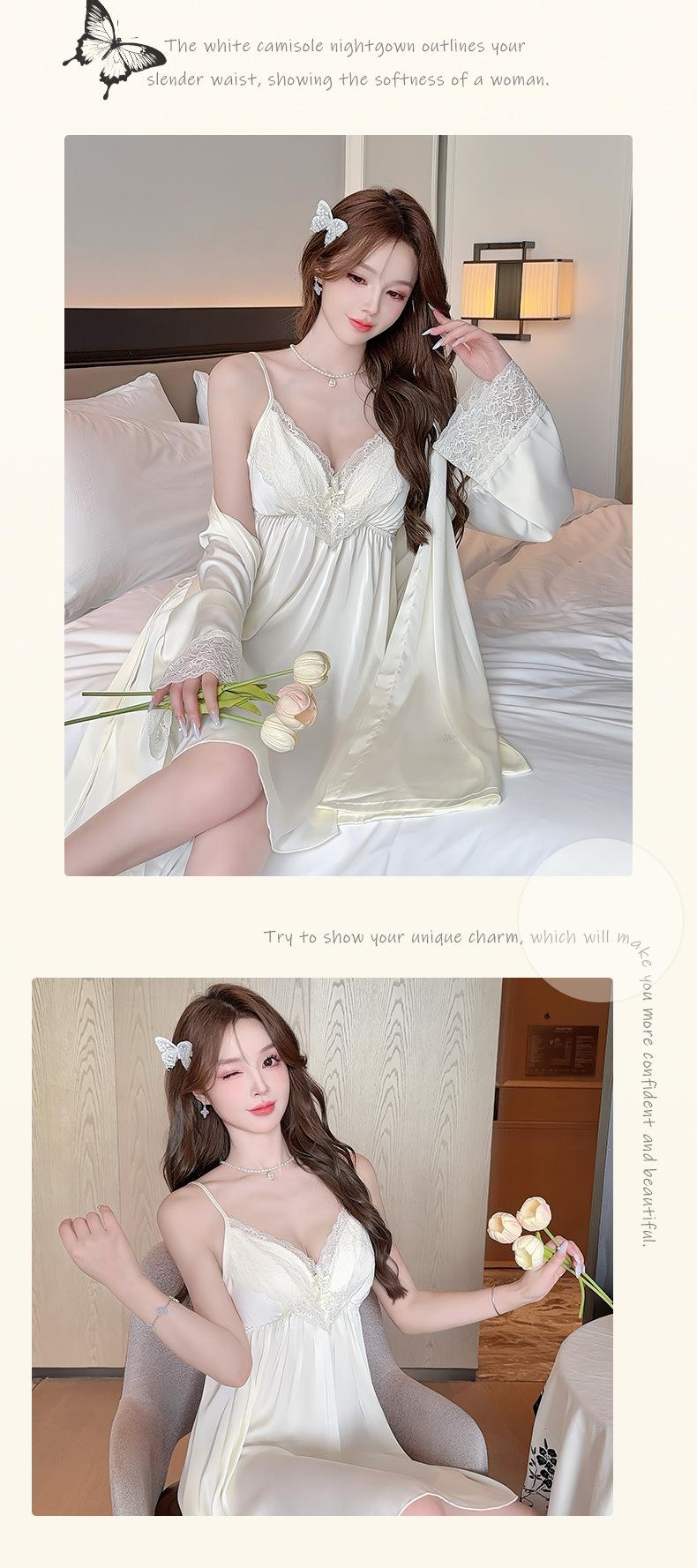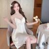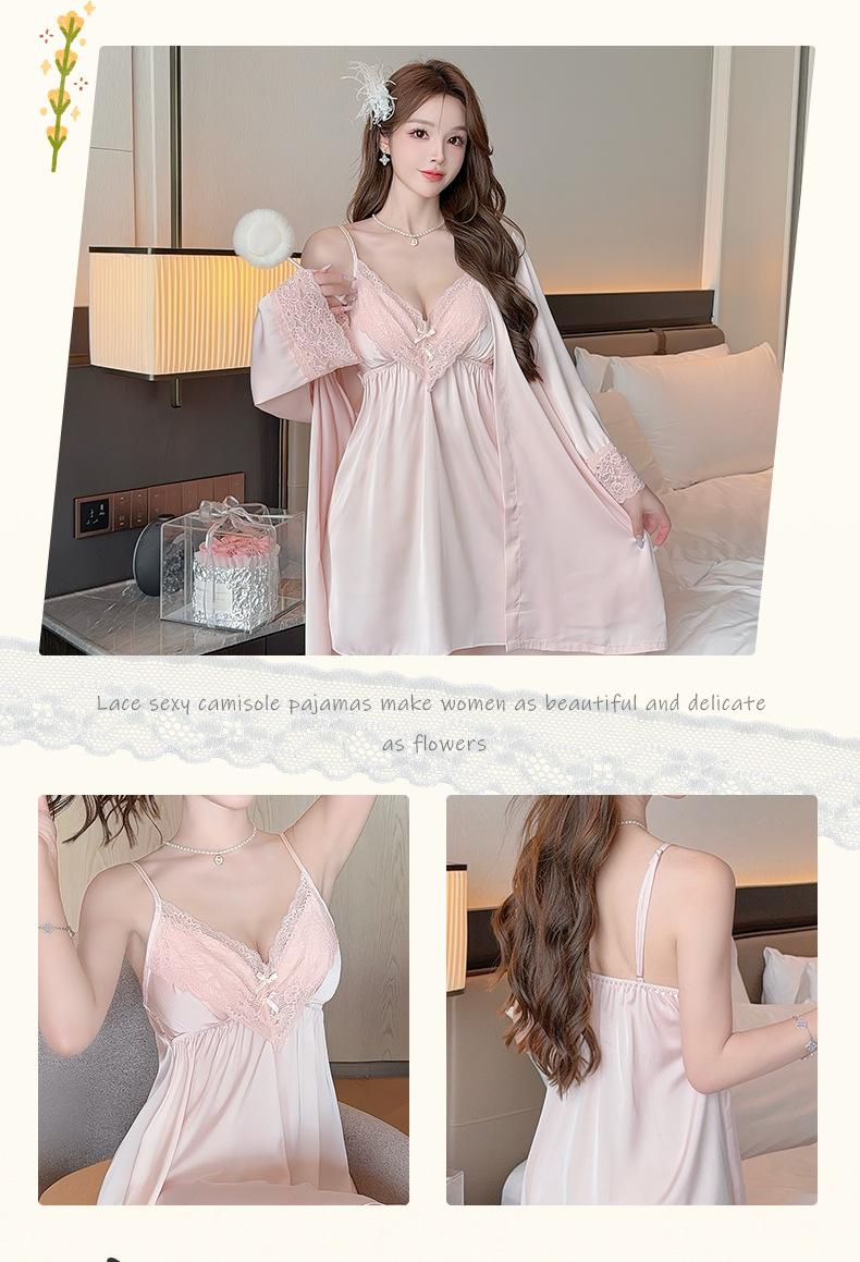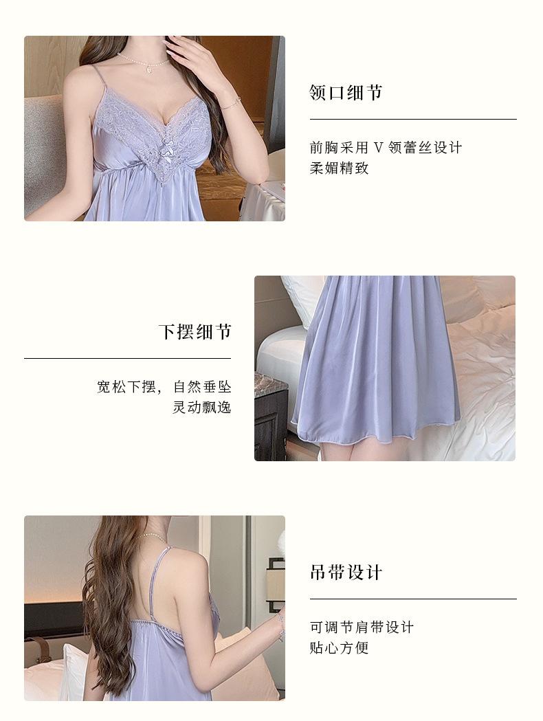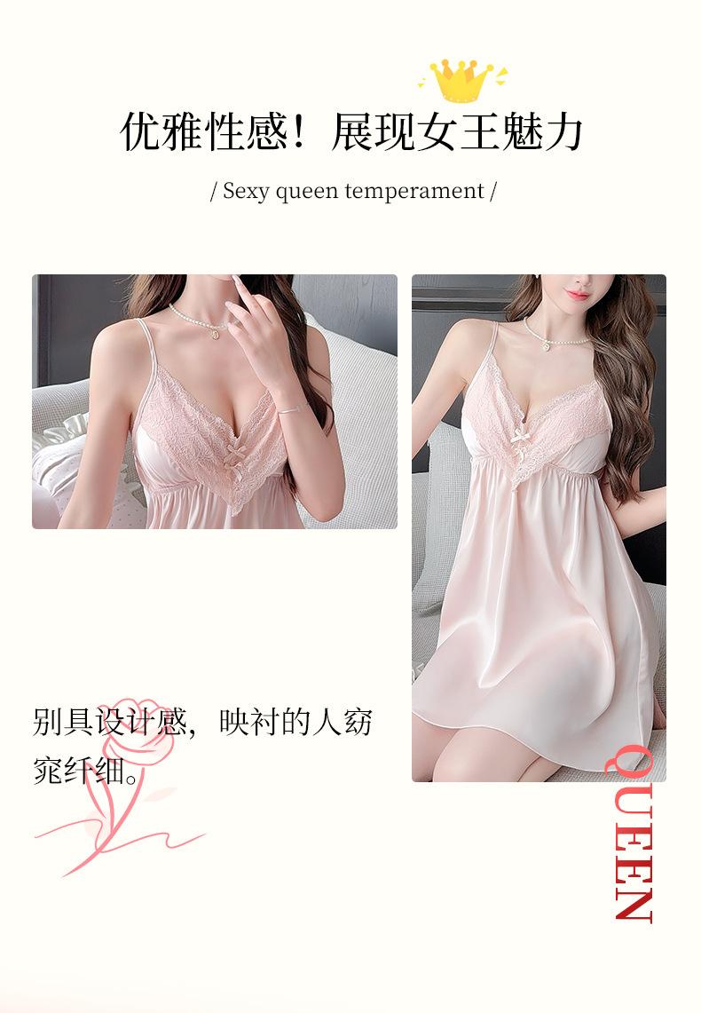 Pijama Sexy de Verano para Mujer Camisón de Tirantes Nuevo Seda de Hielo Deseo Puro Tirantes Pijama Francés con Almohadilla para el Busto Ropa para el Hogar