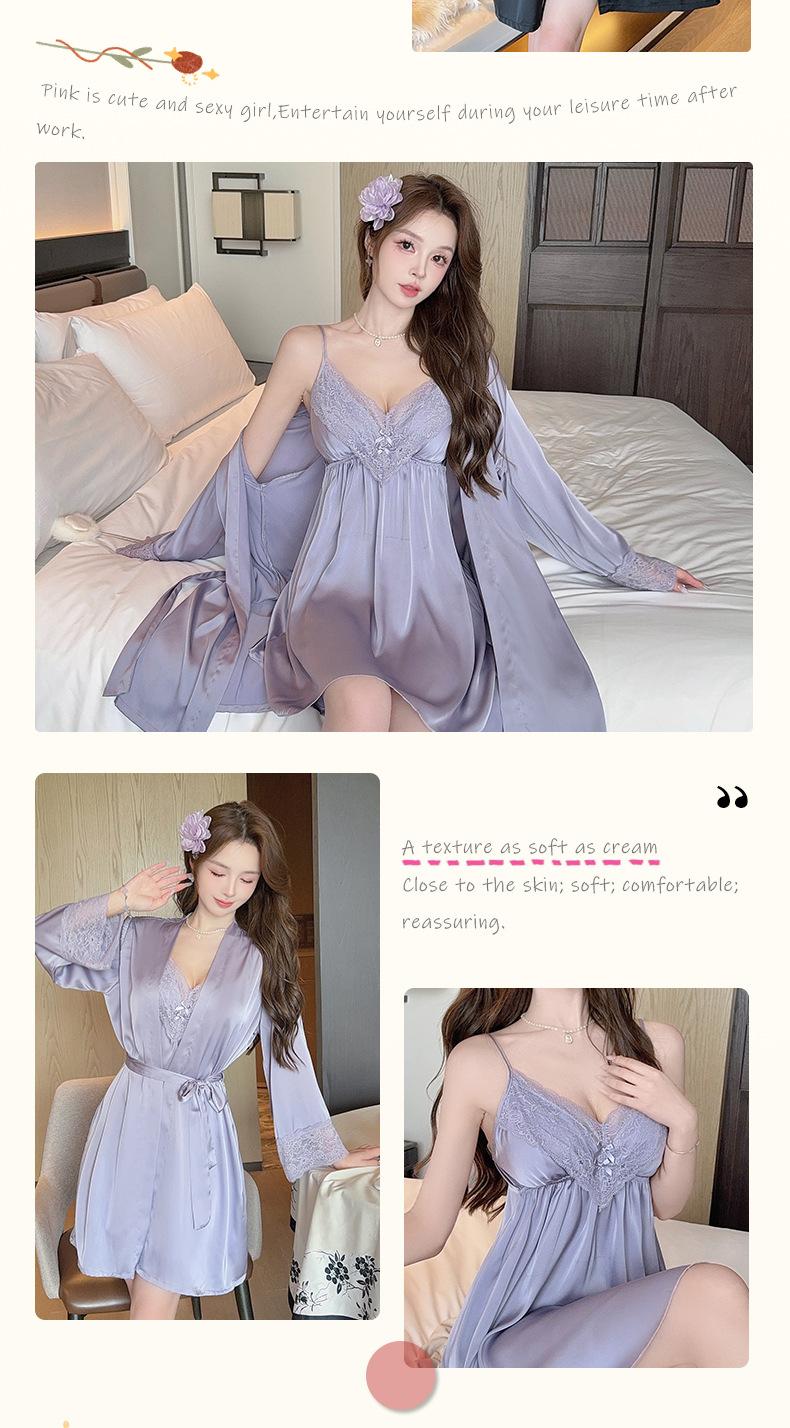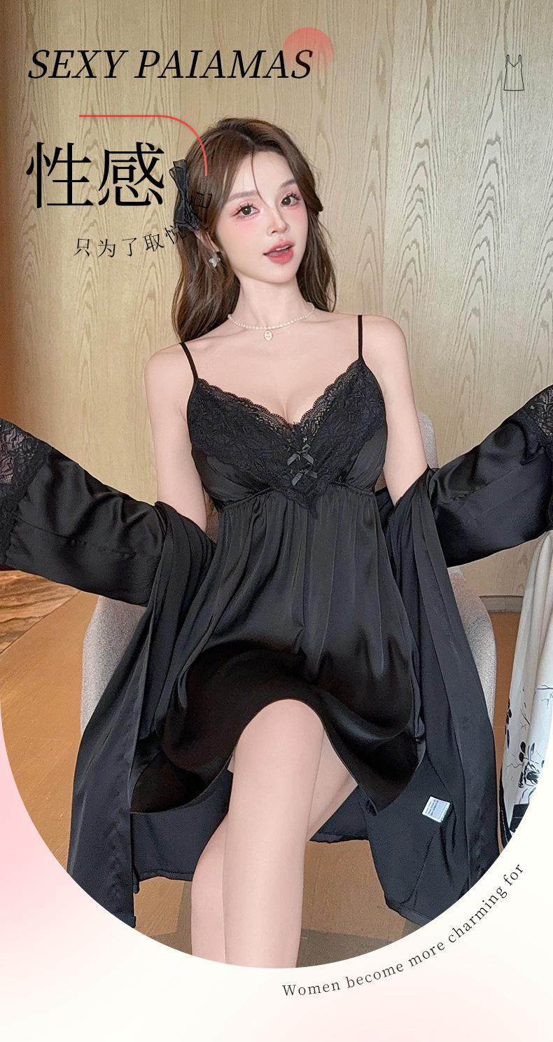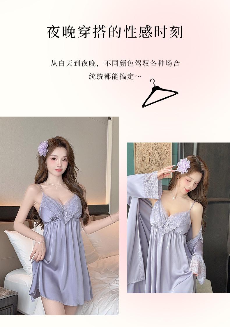 Pijama Sexy de Verano para Mujer Camisón de Tirantes Nuevo Seda de Hielo Deseo Puro Tirantes Pijama Francés con Almohadilla para el Busto Ropa para el Hogar