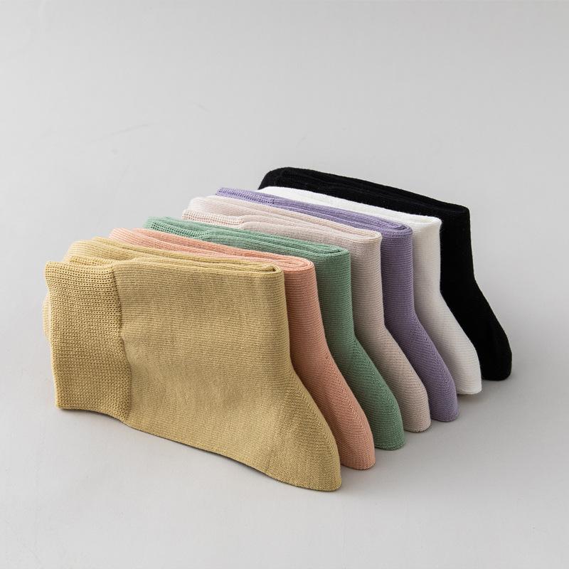 Calcetines Personalizados Cuatro Estaciones Color Puro Calcetines de Media Caña para Dama Color Caramelo Cómodos Suaves de Algodón Versátiles Calcetines de Negocios