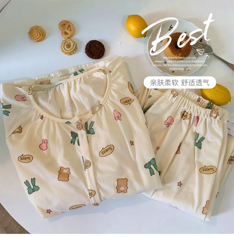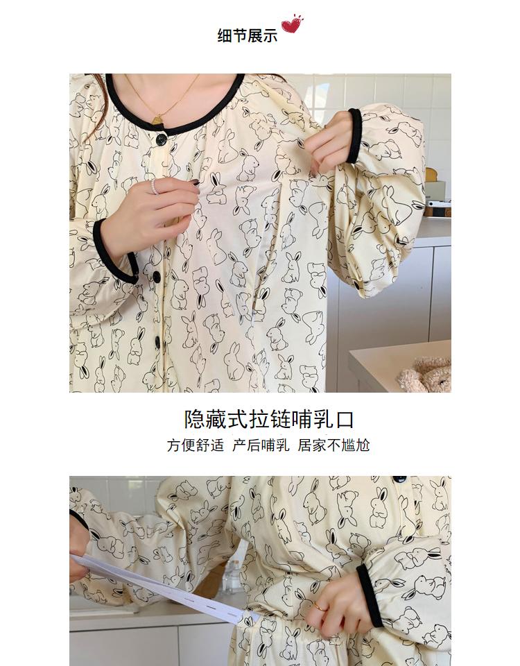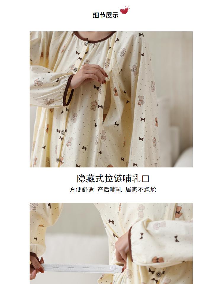 Ropa de Algodón para Confinamiento, Pijama de Maternidad para Lactancia Postparto de Primavera y Otoño, Conjunto de Dos Piezas de Algodón Fino Transpirable Absorbente de Sudor para Lactancia de Verano