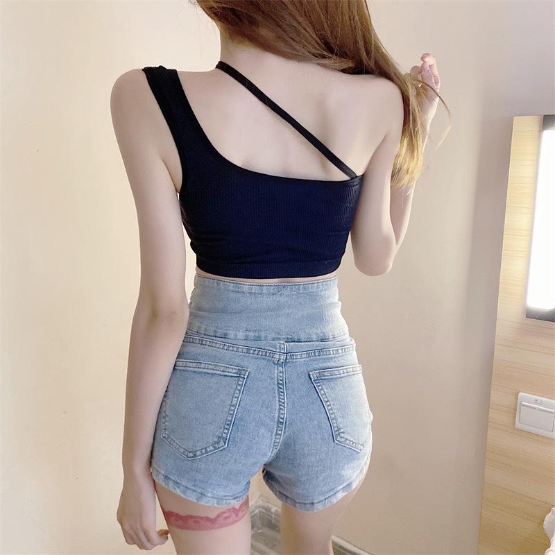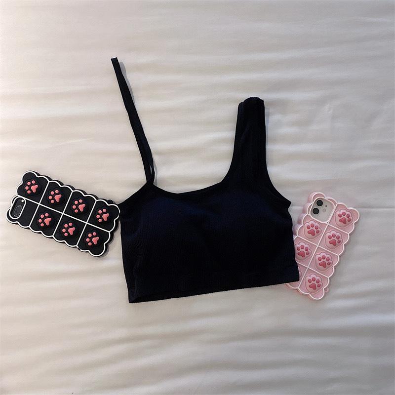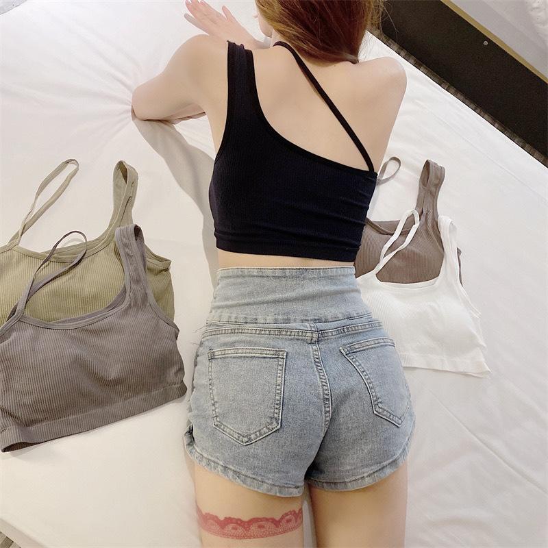 [Procesamiento Personalizado] Hombros Descubiertos Hermoso Espalda Envolvente Sin Tirantes con Almohadilla para el Pecho Elástico con Hilo Tirante Oblicuo Camisola