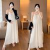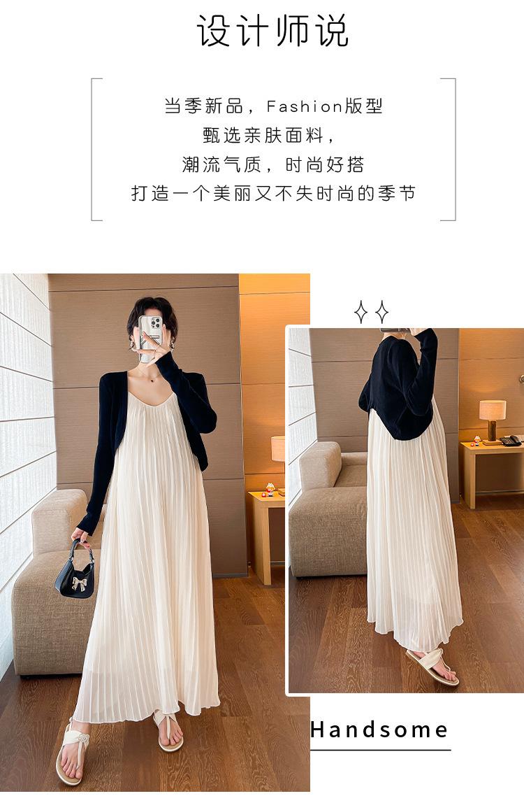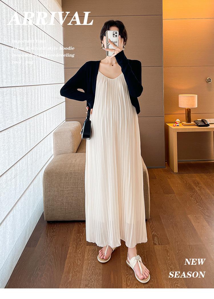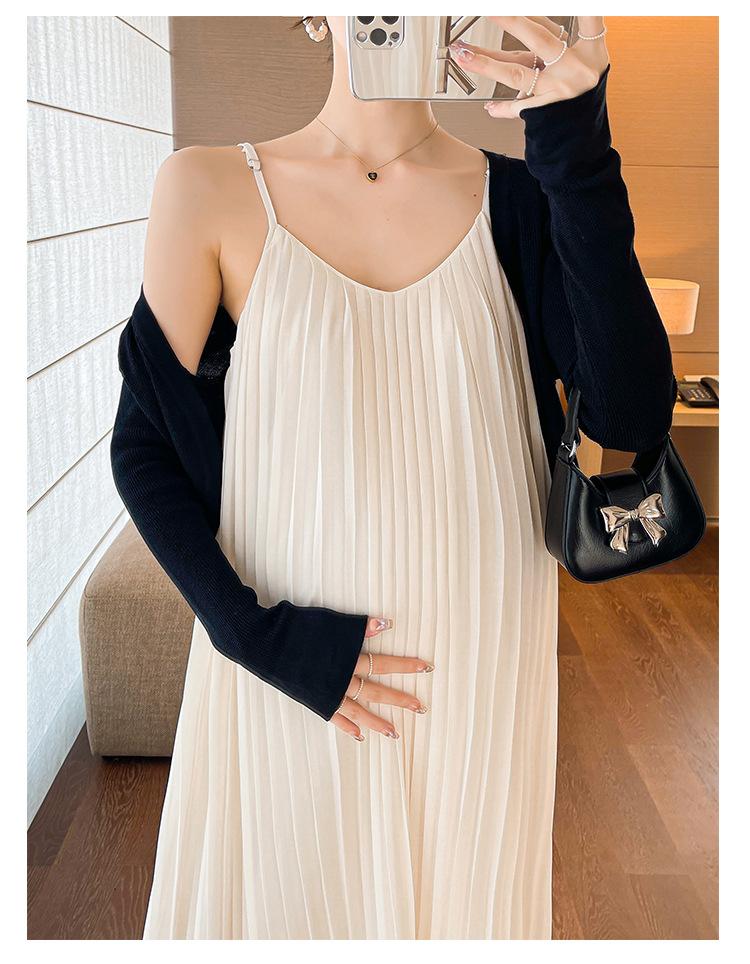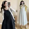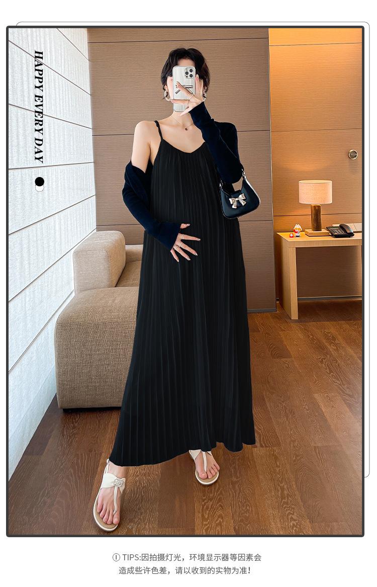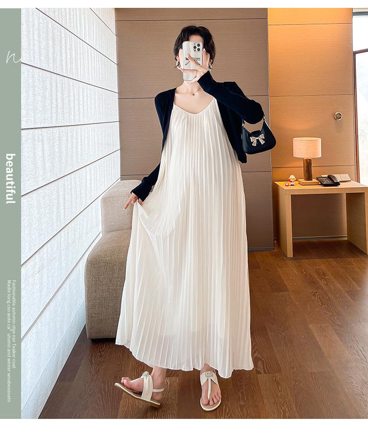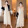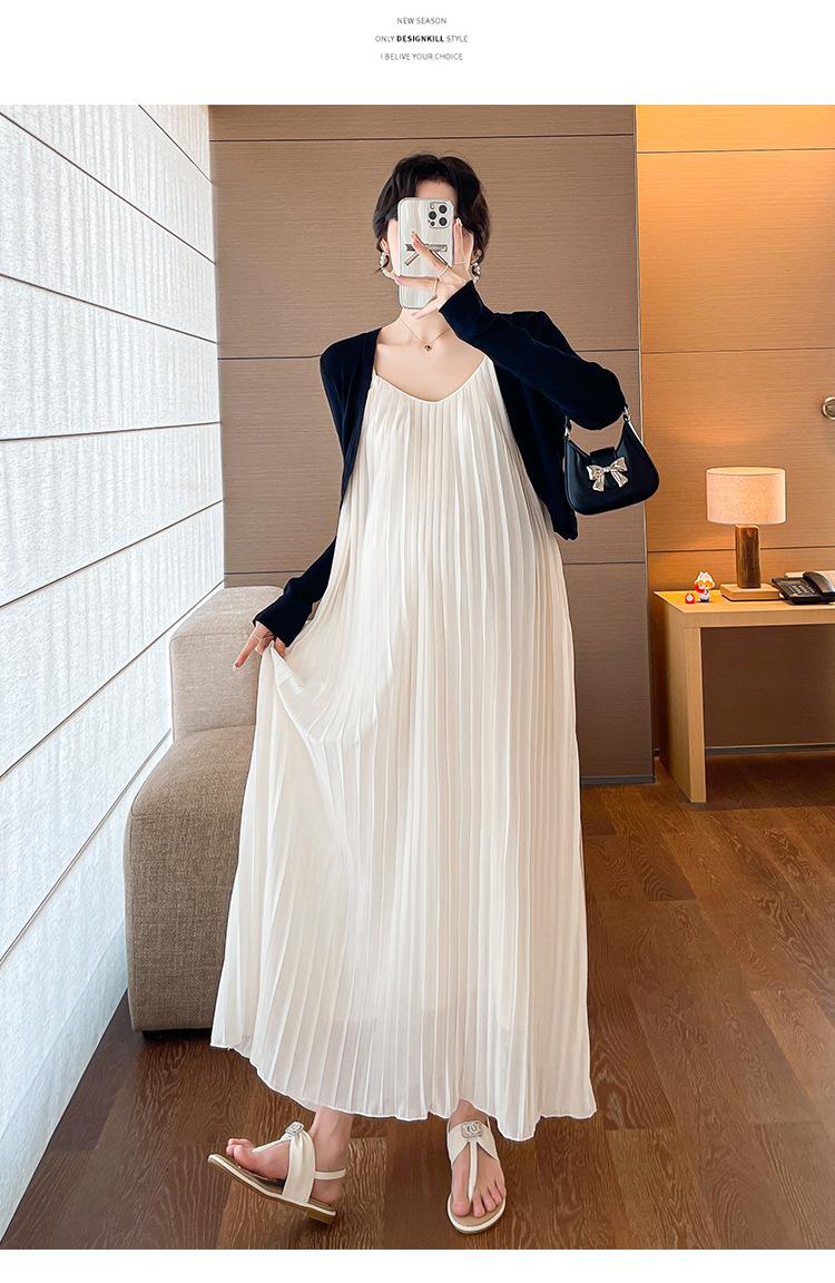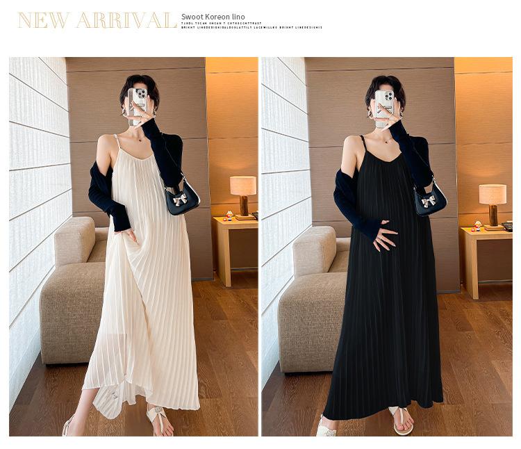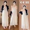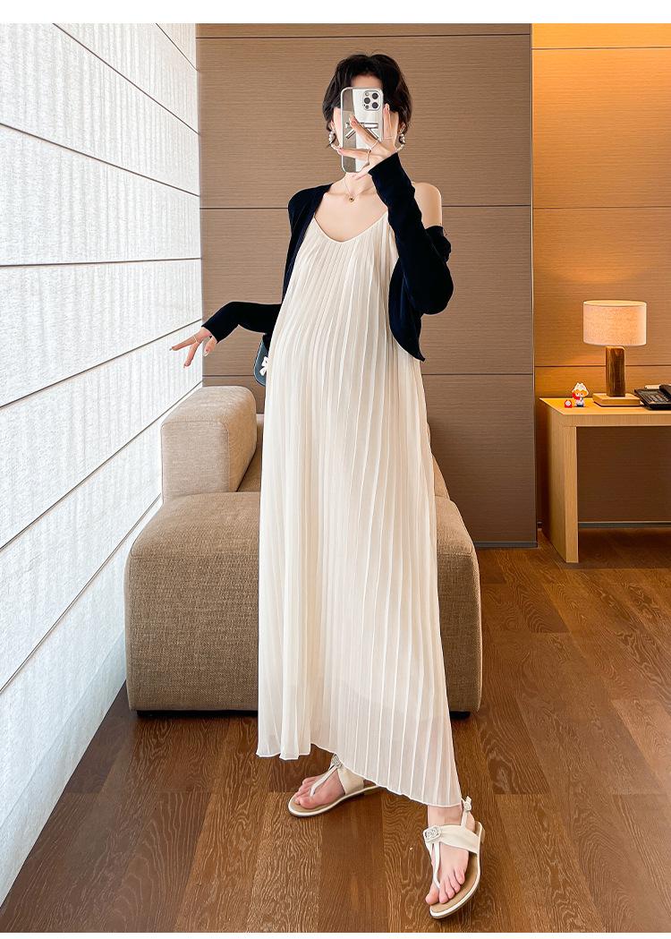 Ropa de Maternidad 2025 Nuevo Estilo de Verano 100% de descuento Falda Larga con Tirantes de Gasa + Cárdigan Vestido de Maternidad de Dos Piezas